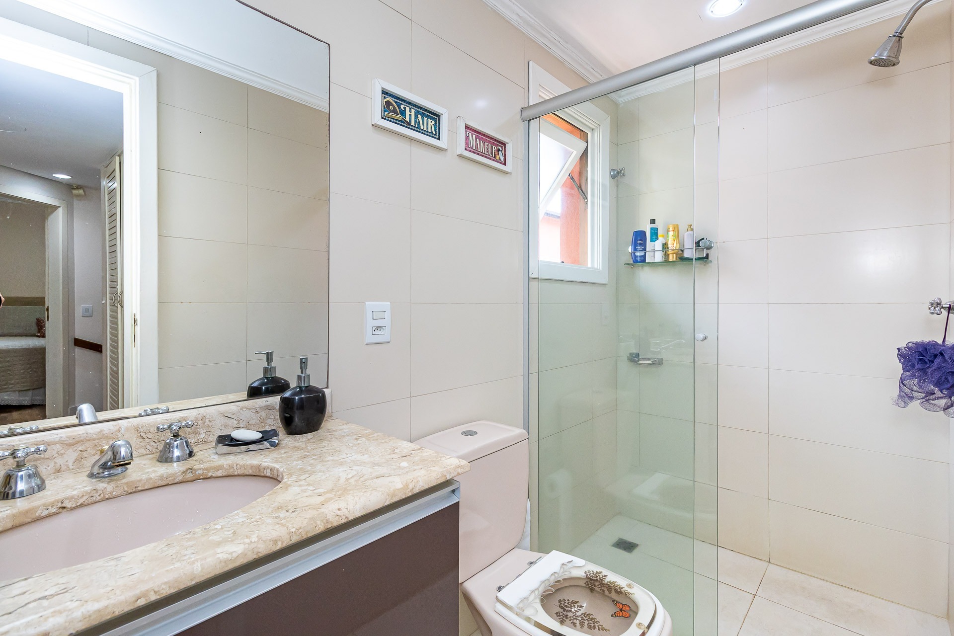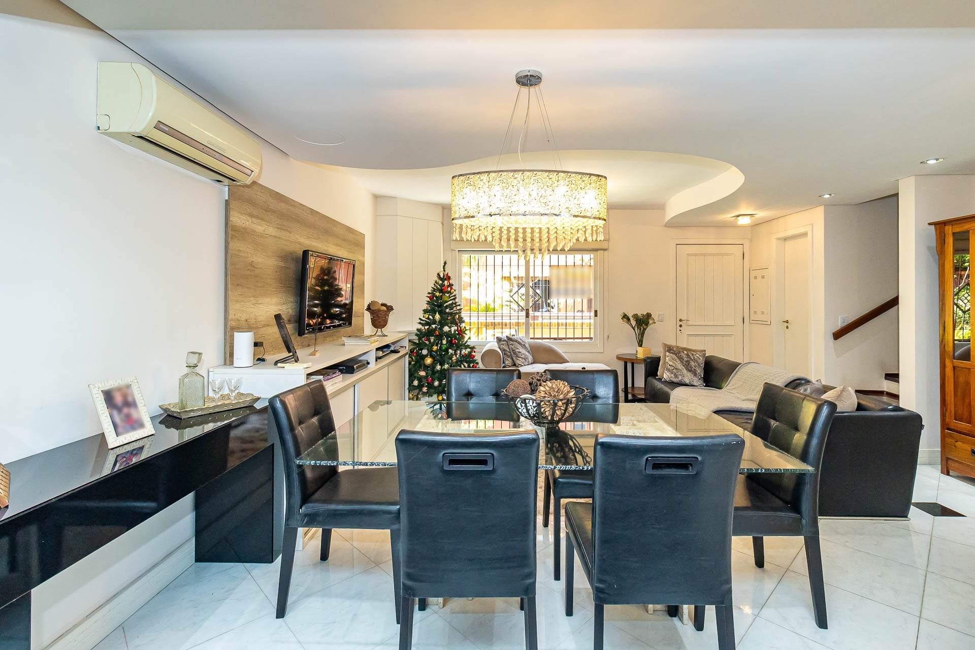 Esta residência, recentemente reformada com materiais de primeira linha, oferece o máximo em conforto e sofisticação. Localizada em um condomínio fechado, a casa dispõe de uma sala de estar aconchegante com lareira, grandes janelas que se abrem para o terraço, sala de jantar, lavabo, sala de TV e uma copa-cozinha equipada com lareira a gás. A área de serviço inclui lavanderia, suíte para caseiro c...