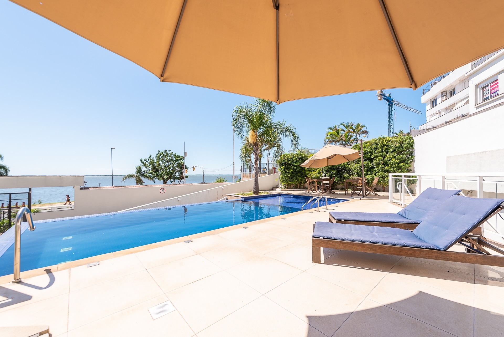 387 m²Apartamento com 4 quartos, Hidromassagem e Lareira com uma linda piscina azul da cor do mar