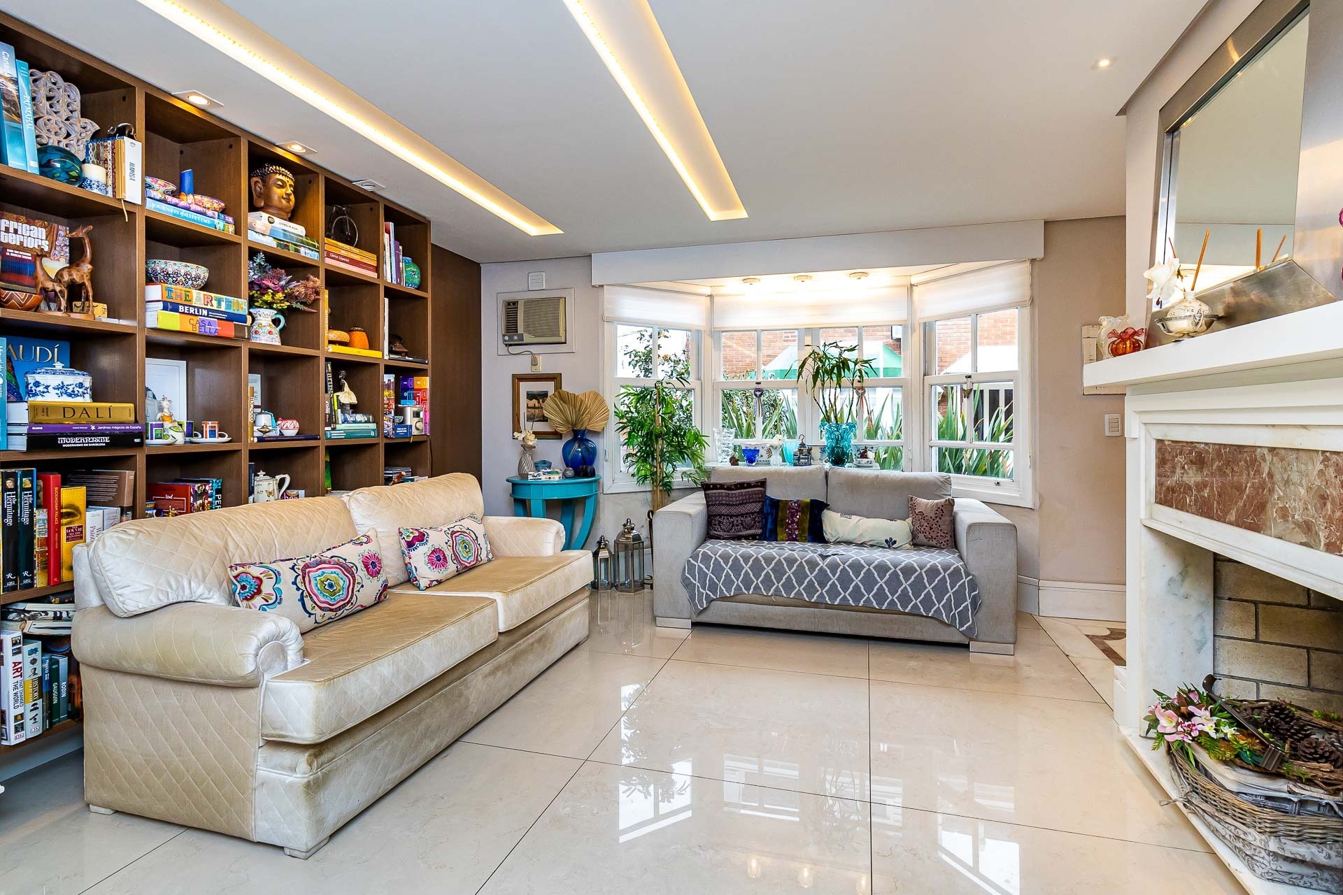 Casa em condomínio com 600 m² privativos, localizada nos Altos de Santa Tereza. São 4 suítes confortáveis e ensolaradas, sala de estar e jantar amplas com janelas abertas para o horizonte, lareira, churrasqueira, lavabo, espaço gourmet, adega, lavanderia e dependência completa. Vista indevassável para o Guaíba, totalmente reformada e impecável, sendo todos os móveis, equipamentos e decoração de ...