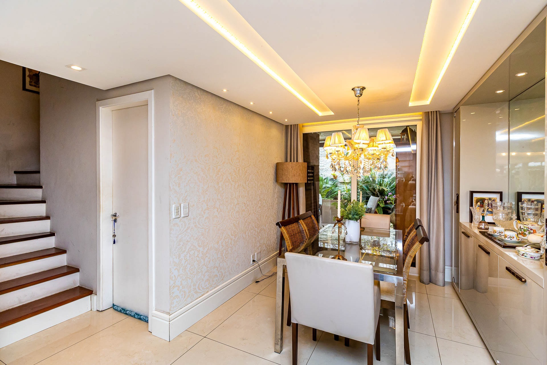 Esta residência, recentemente reformada com materiais de primeira linha, oferece o máximo em conforto e sofisticação. Localizada em um condomínio fechado, a casa dispõe de uma sala de estar aconchegante com lareira, grandes janelas que se abrem para o terraço, sala de jantar, lavabo, sala de TV e uma copa-cozinha equipada com lareira a gás. A área de serviço inclui lavanderia, suíte para caseiro c...