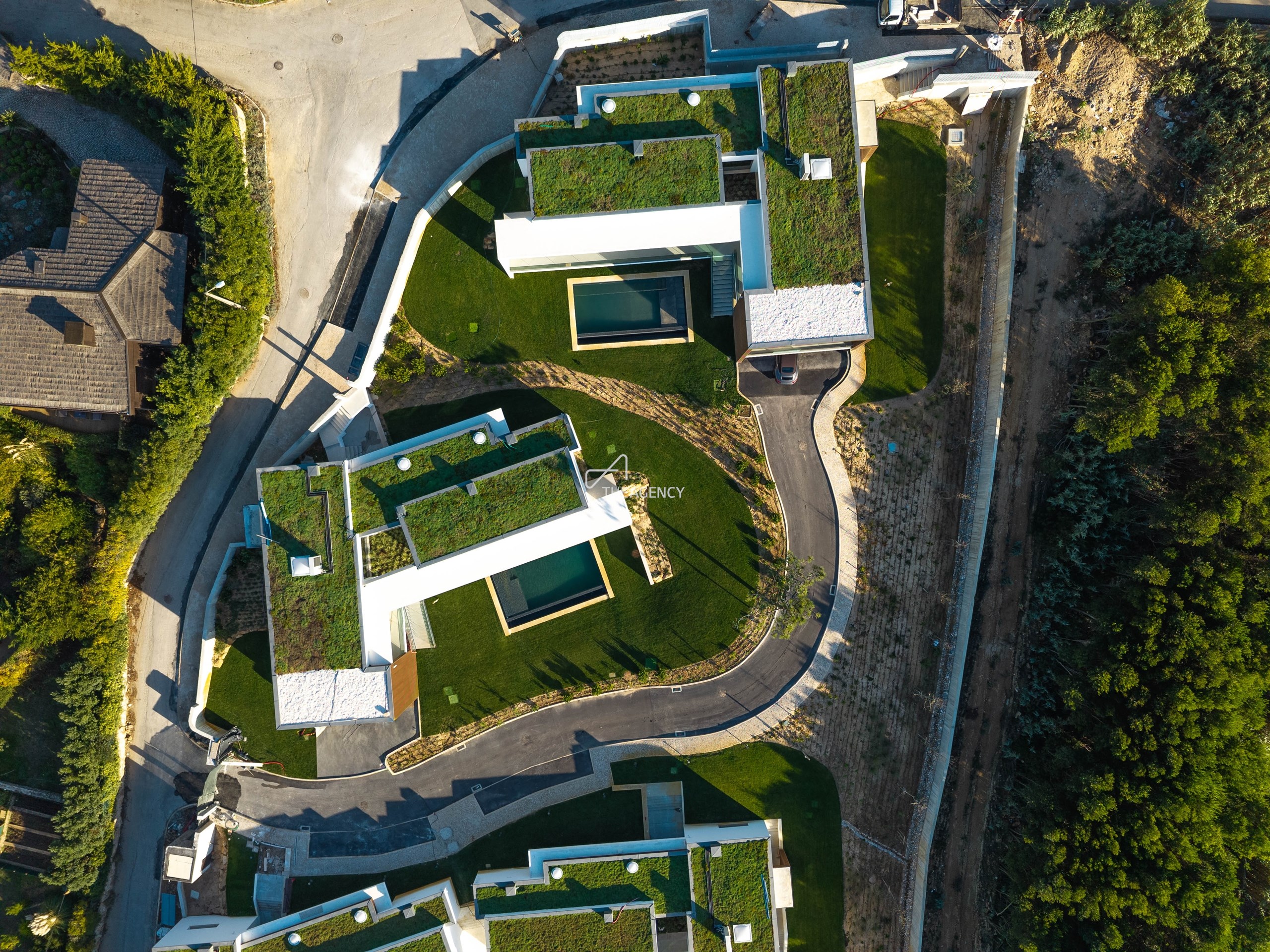 As vilas incluem aquecimento por piso radiante, ar condicionado por conduta, automação inteligente e certificação energética A+, garantindo conforto e sustentabilidade durante todo o ano.