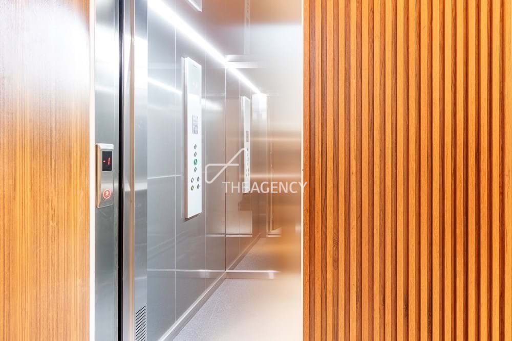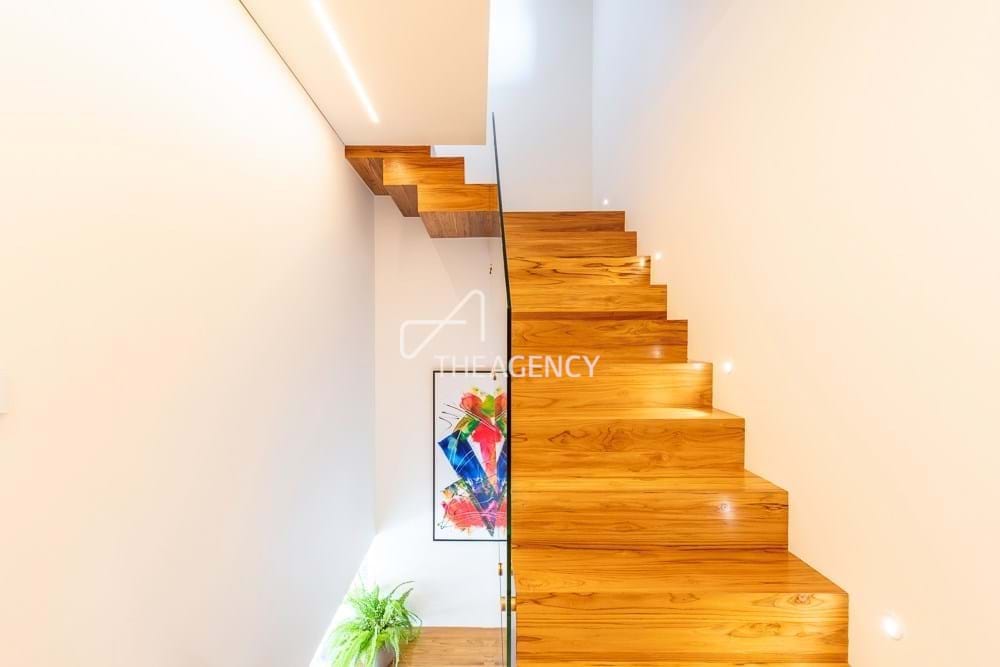 Para conforto dos proprietários e convidados a moradia dispõe de elevador que foi integrado na decoração de modo a ser invisível.