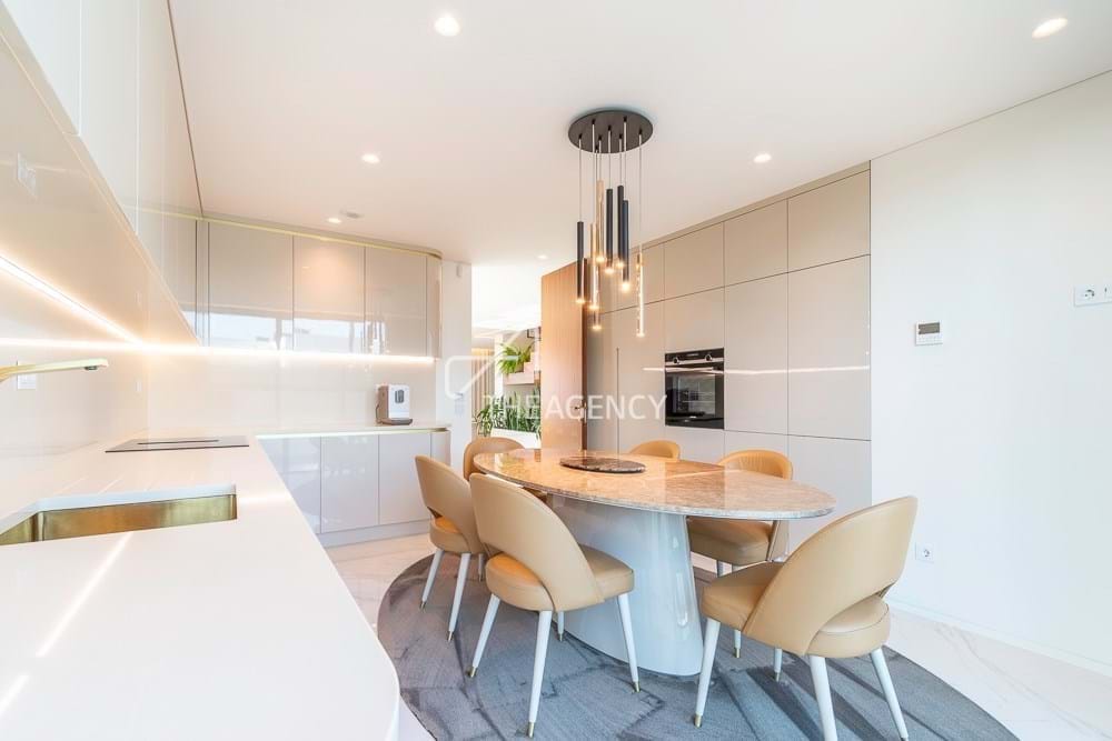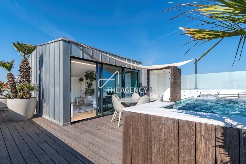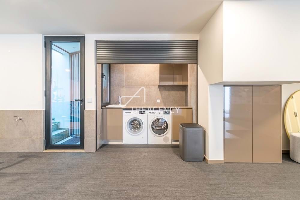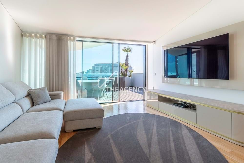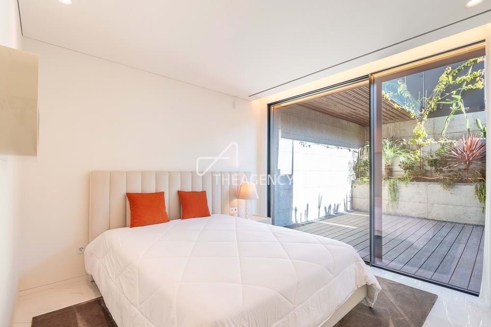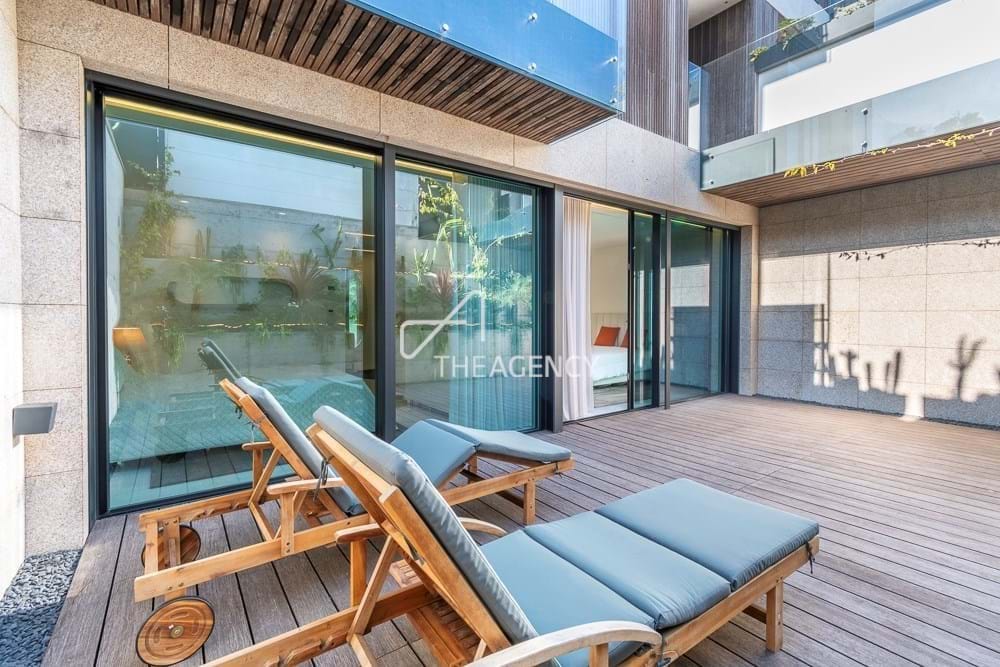 Neste piso pode ainda usufruir-se de um espaço exterior que conta com uma zona de convívio mobilada e uma piscina aquecida envolta por um jardim de baixa manutenção e de sustentabilidade elevada.