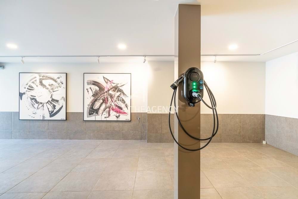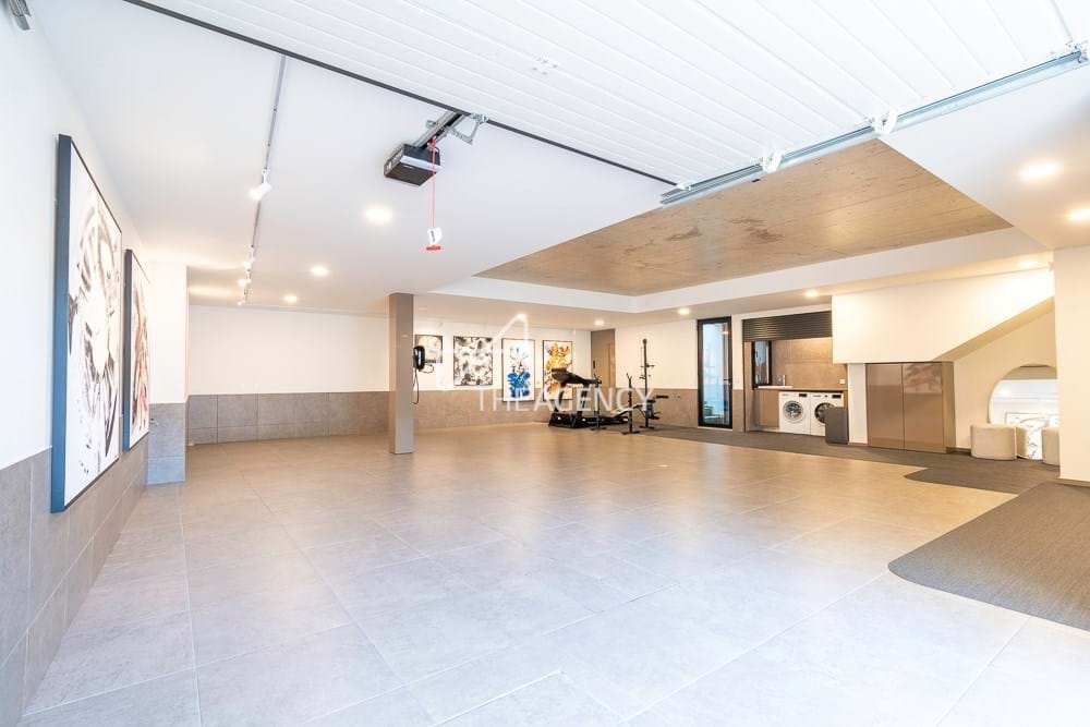 Para comodidade dos convidados a moradia oferece no piso -1 dois quartos completos com um generoso saguão que lhes permite ter um espaço exterior de leitura ou fruição com total privacidade. Estes quartos contam com um Wc completo de apoio. À semelhança do primeiro piso, também este é protegido por porta blindada. Ainda neste piso, encontramos uma espaçosa garagem para três viaturas, ginásio e lavandaria. Por ser o primeiro espaço de acolhimento mais frequente, esta garagem foi concebida para ser um local utilitário, mas também de requinte tendo espaço para a exposição de algumas obras de arte e um pré-hall com uma zona de estar de apoio ao closet de calçado existente.