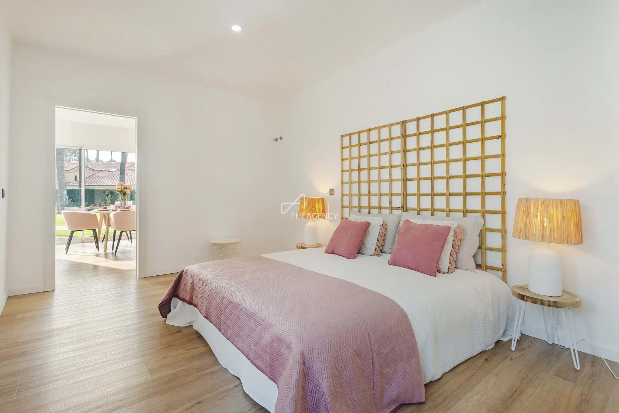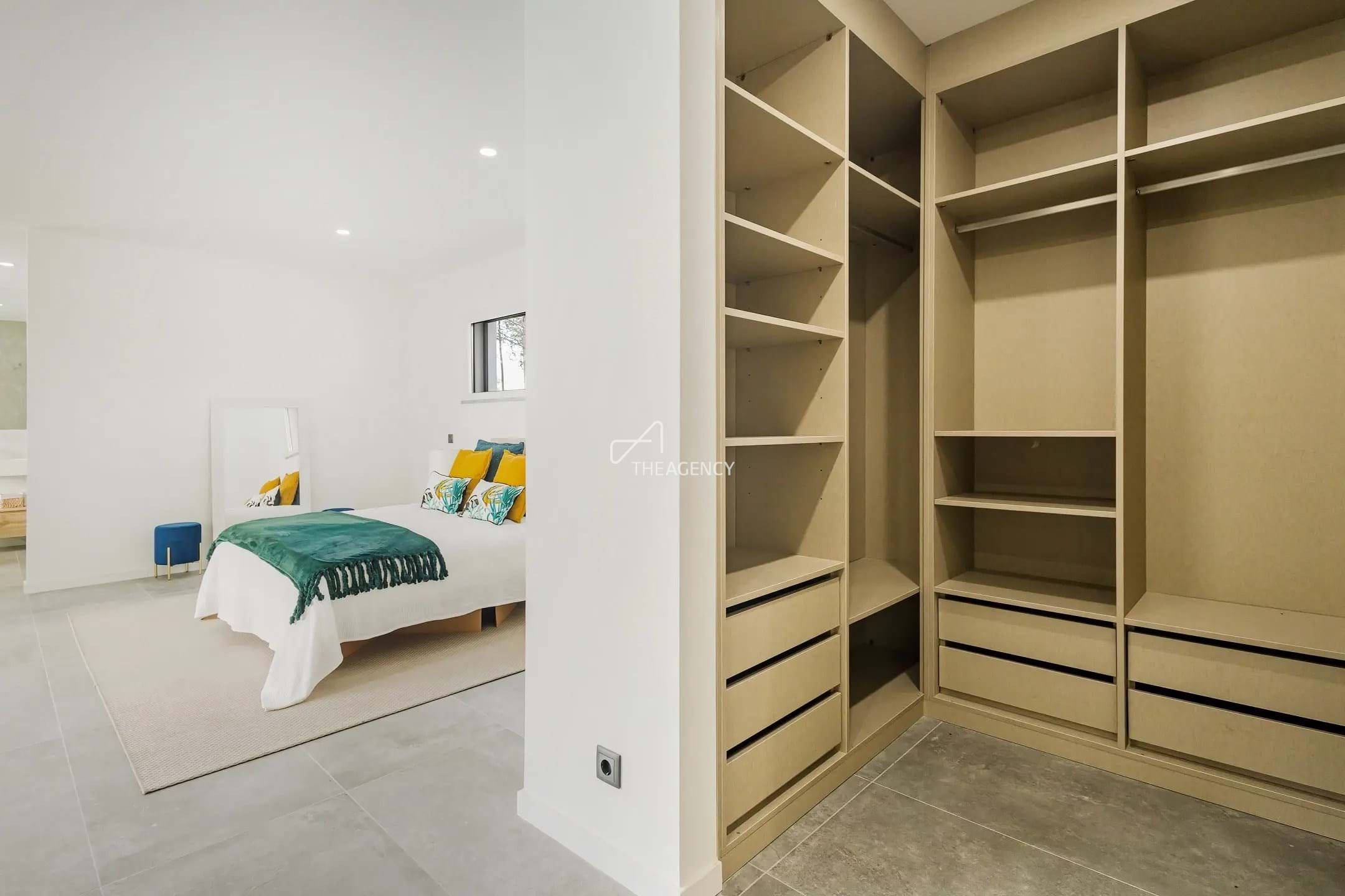 Master suite com closet, casa de banho espaçosa e acesso direto ao jardim;