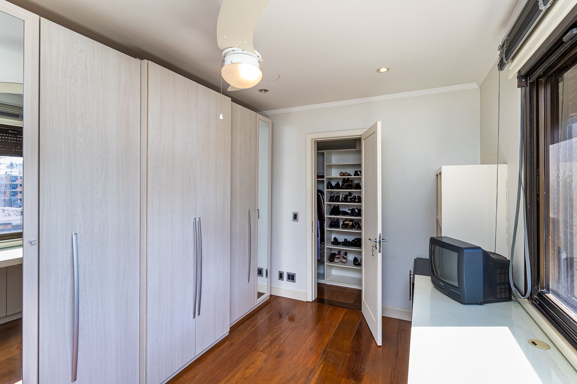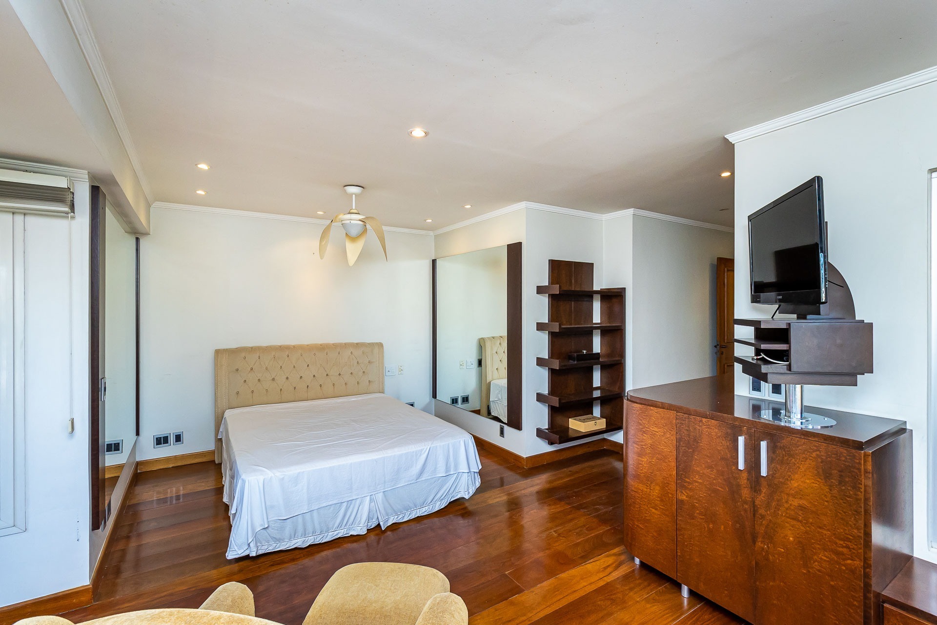Apartamento para alugar mobiliado com 4 dormitórios, sendo 2 suítes, 179m de área privativa, living com ar condicionado, sacada fechada e ampla com churrasqueira, escrivaninha, cômodas, ventiladores de teto e cortinas, banheiro social com armários, cozinha completa com armários, fogão, geladeira, micro-ondas e coifa e área de serviço.