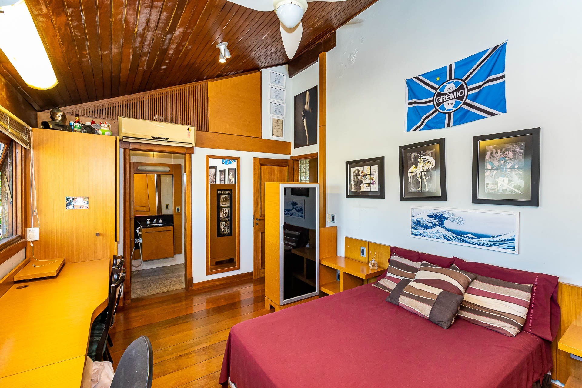 Amplo living com lareira, detalhe extraordinário para os dias mais frios. O primeiro pavimento possui hall, lavabo, 5 dormitórios, 3 deles suítes, todas com vista e ensolaradas, além de banheiro social.