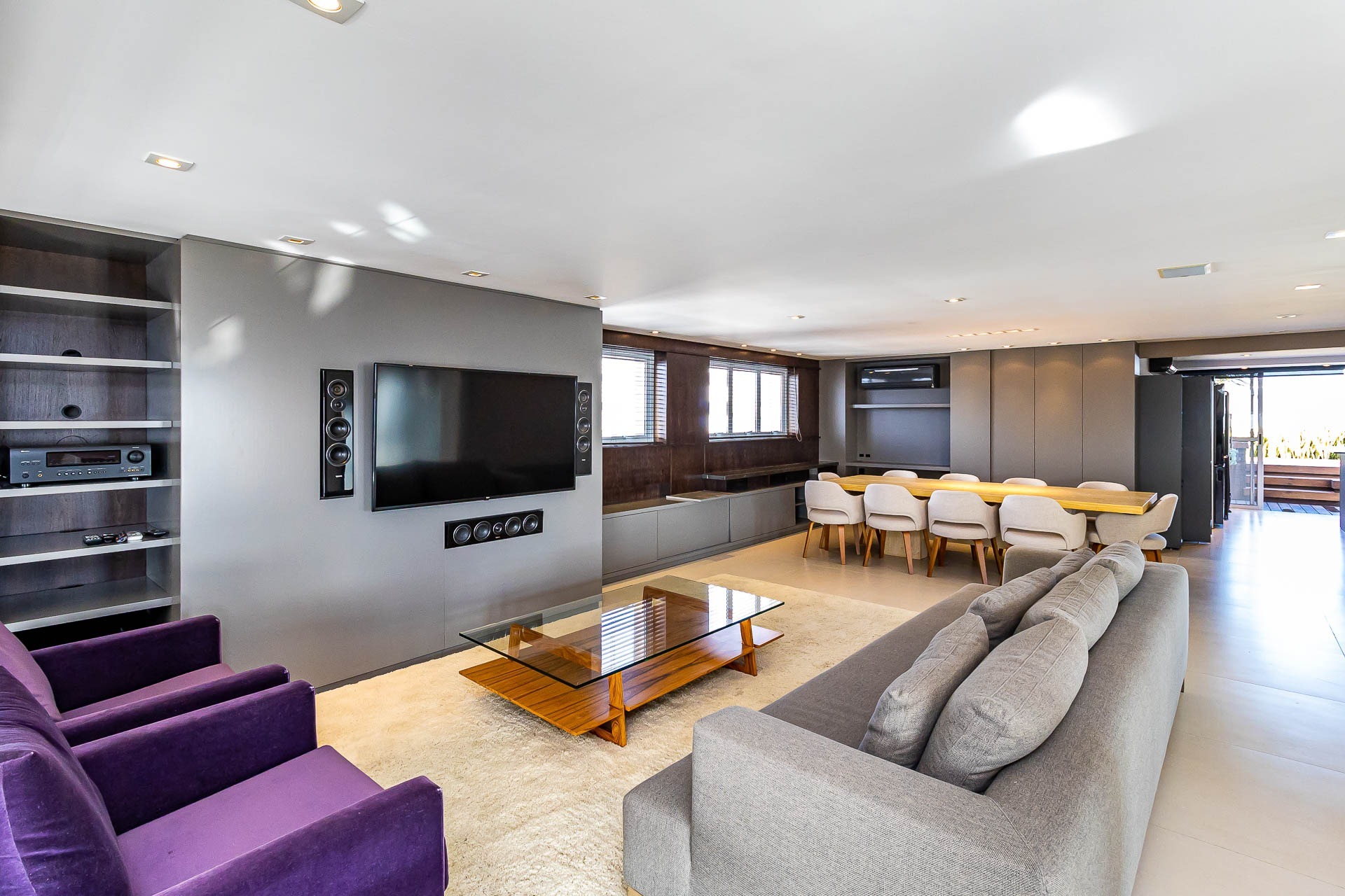 Maravilhosa cobertura de 353 m² de área privativa , vista definida, composta de 4 dormitórios sendo 3 suítes com móveis sob medida, dependência de empregada, cozinha com móveis planejados, ar condicionado central. Terraço com piscina, churrasqueira e lareira. 4 vagas de garagens , o prédio conta com portaria 24 hs, salão de festas, piscina, brinquedoteca, gerador de emergência, fitness.