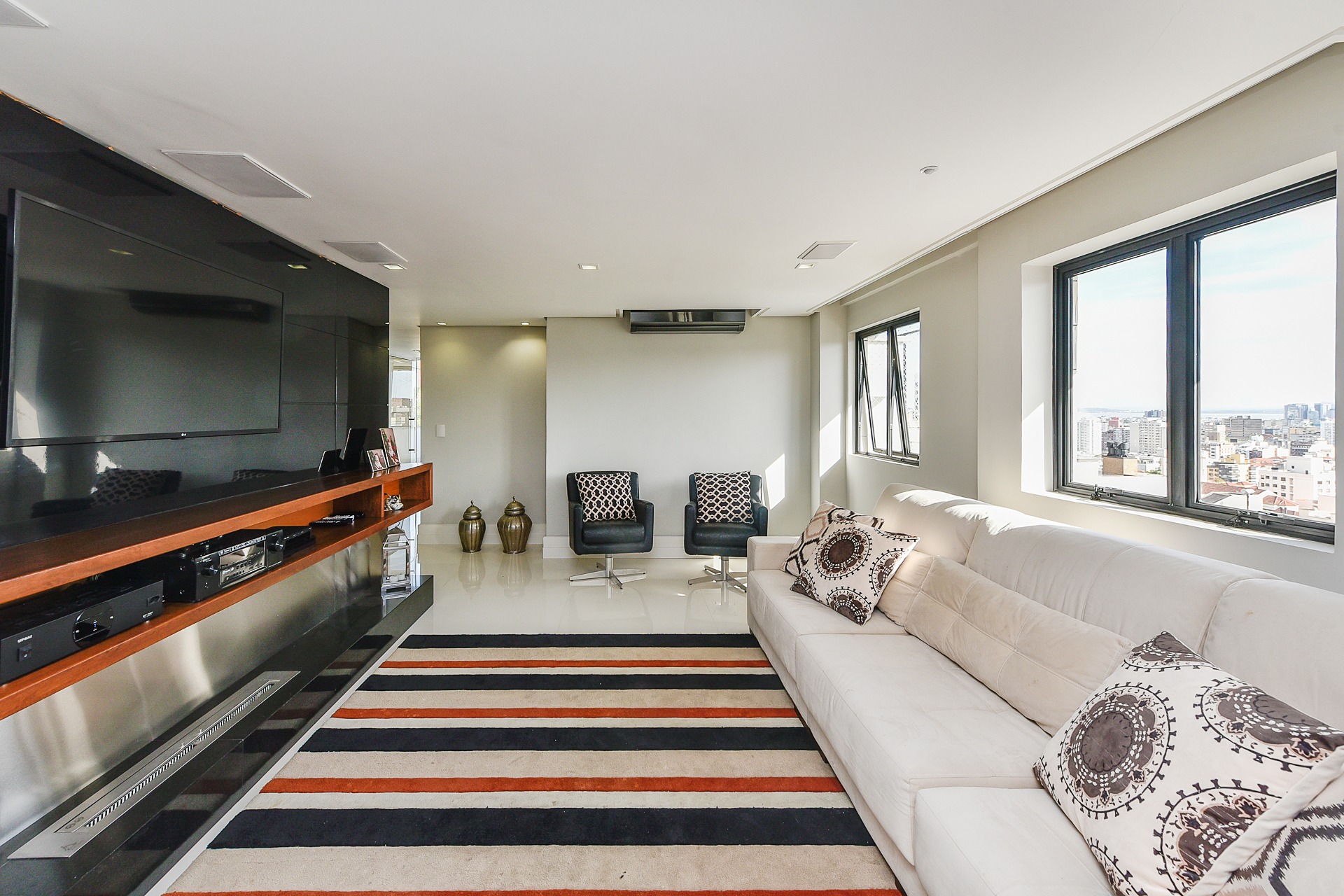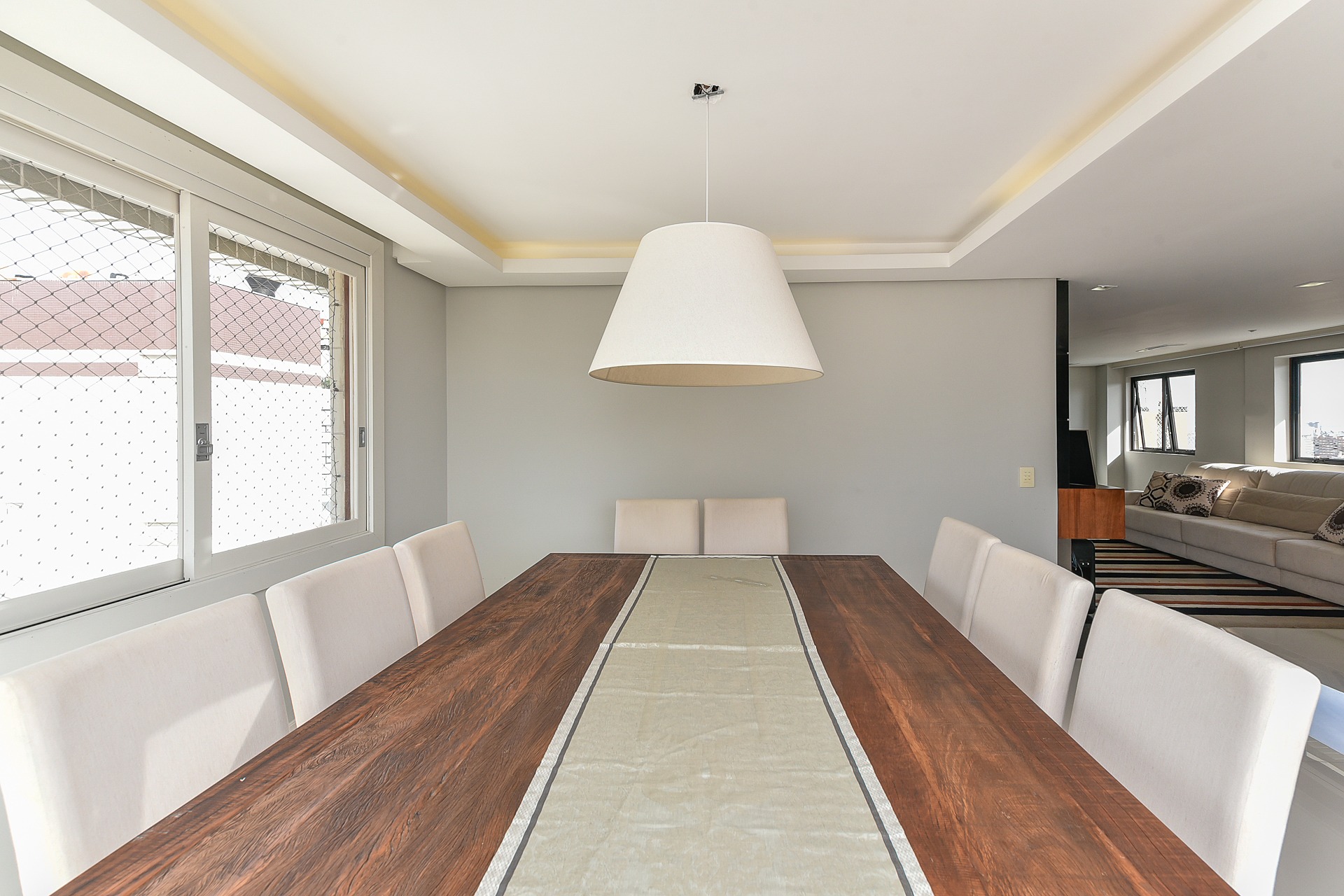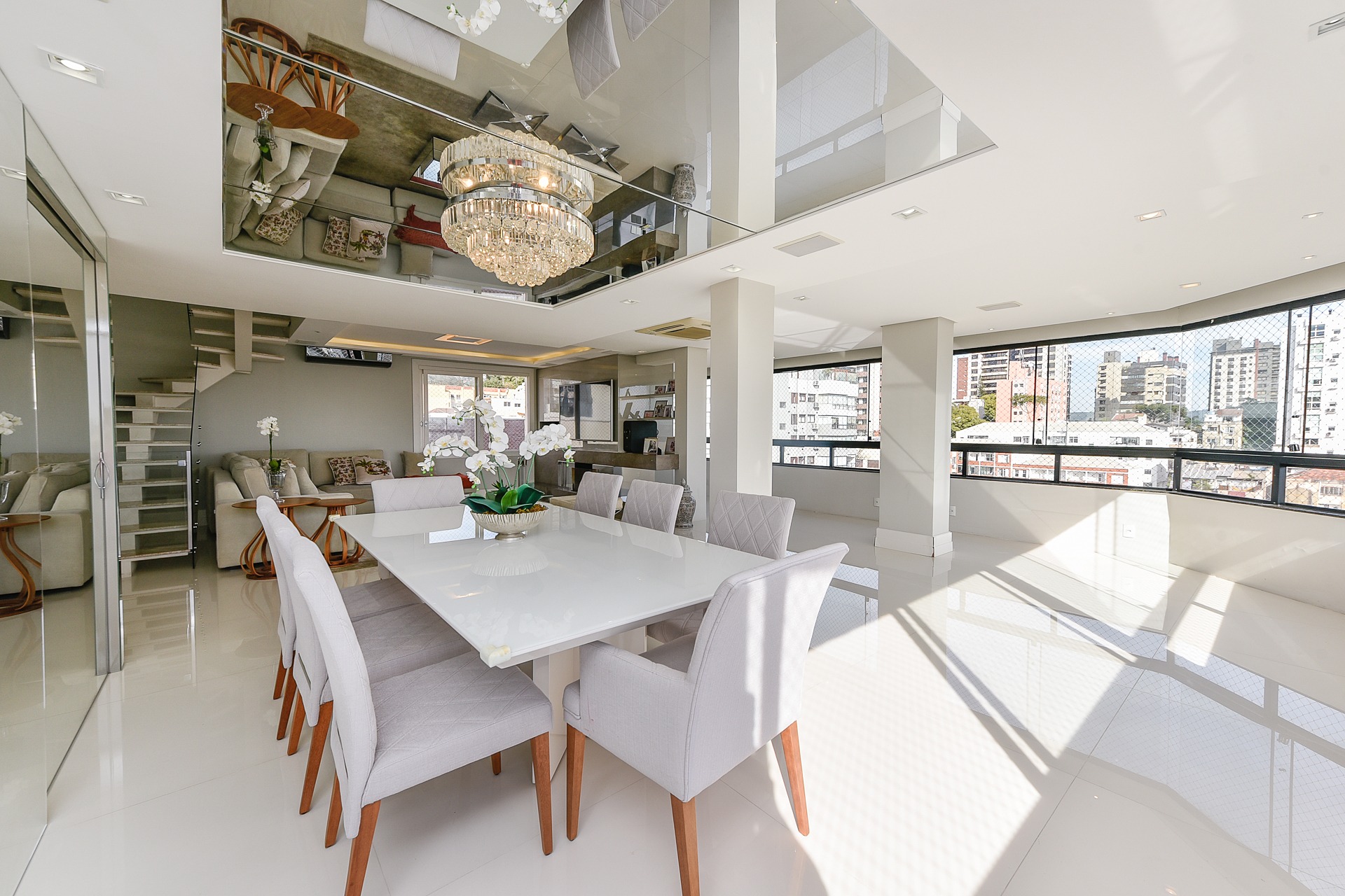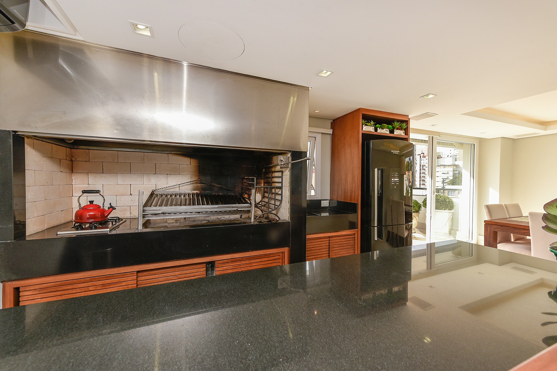 Apartamento mobiliado de 237 m², 3 dormitórios, 3 suítes, 1 suíte máster com closet e hidro, living 3 ambientes com sacada, gabinete, lareira, lavabo, cozinha com churrasqueira, dependência, área de serviço com entrada independente, depósito e 3 vagas de garagens.
