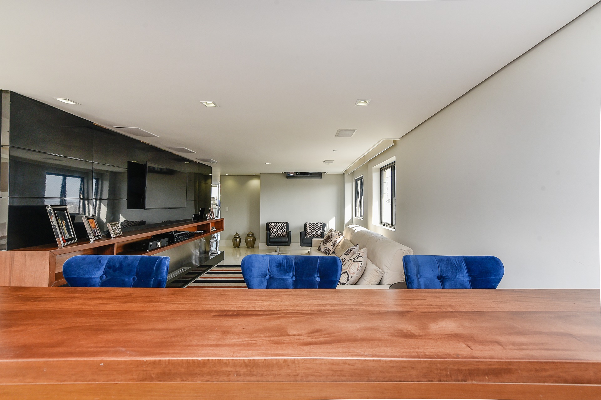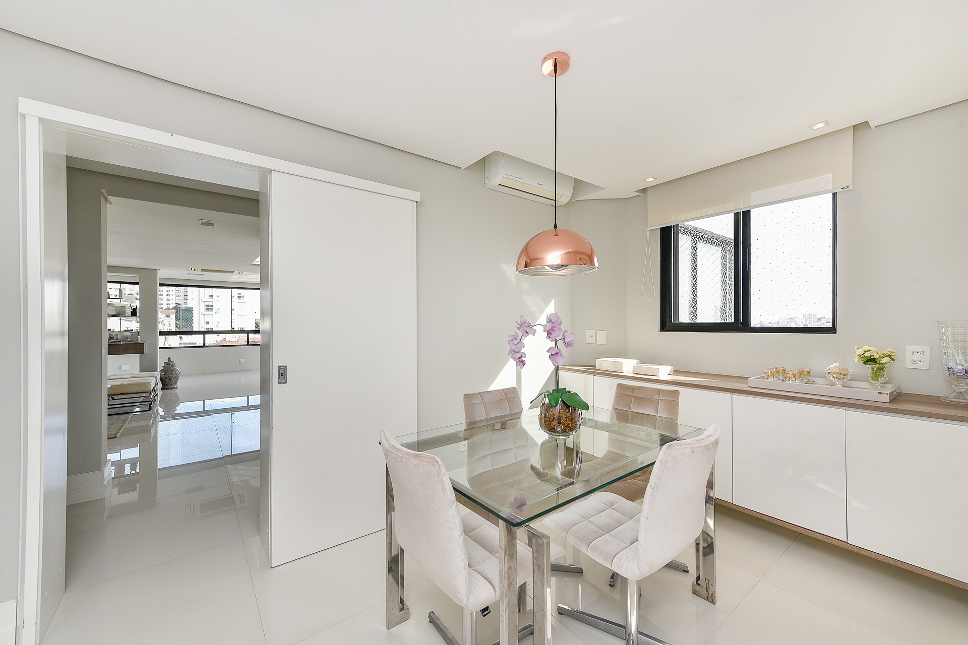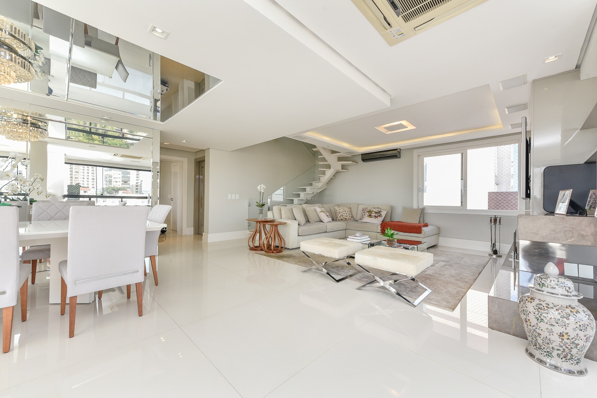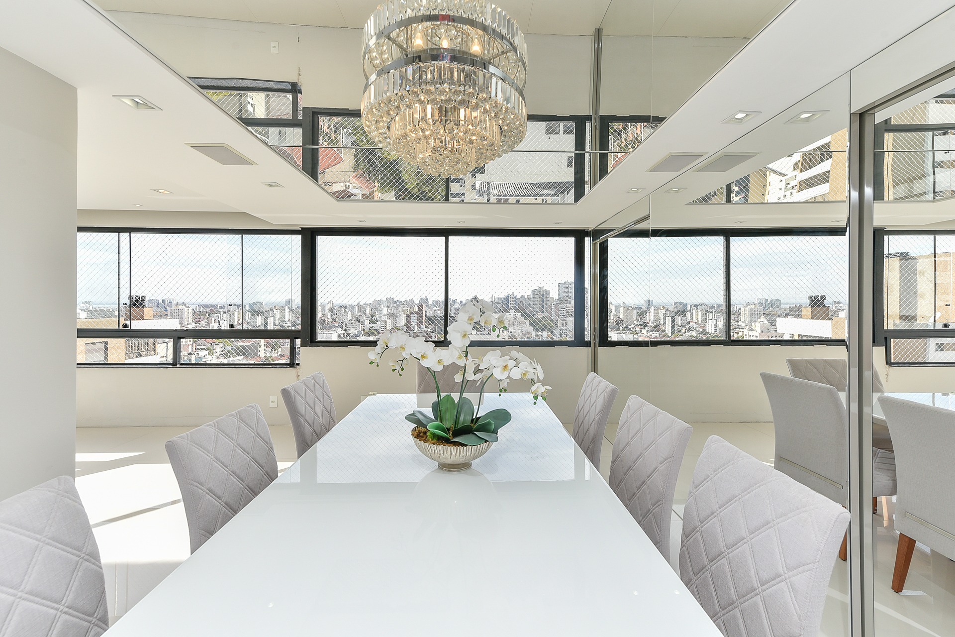 Apartamento mobiliado de 237 m², 3 dormitórios, 3 suítes, 1 suíte máster com closet e hidro, living 3 ambientes com sacada, gabinete, lareira, lavabo, cozinha com churrasqueira, dependência, área de serviço com entrada independente, depósito e 3 vagas de garagens.