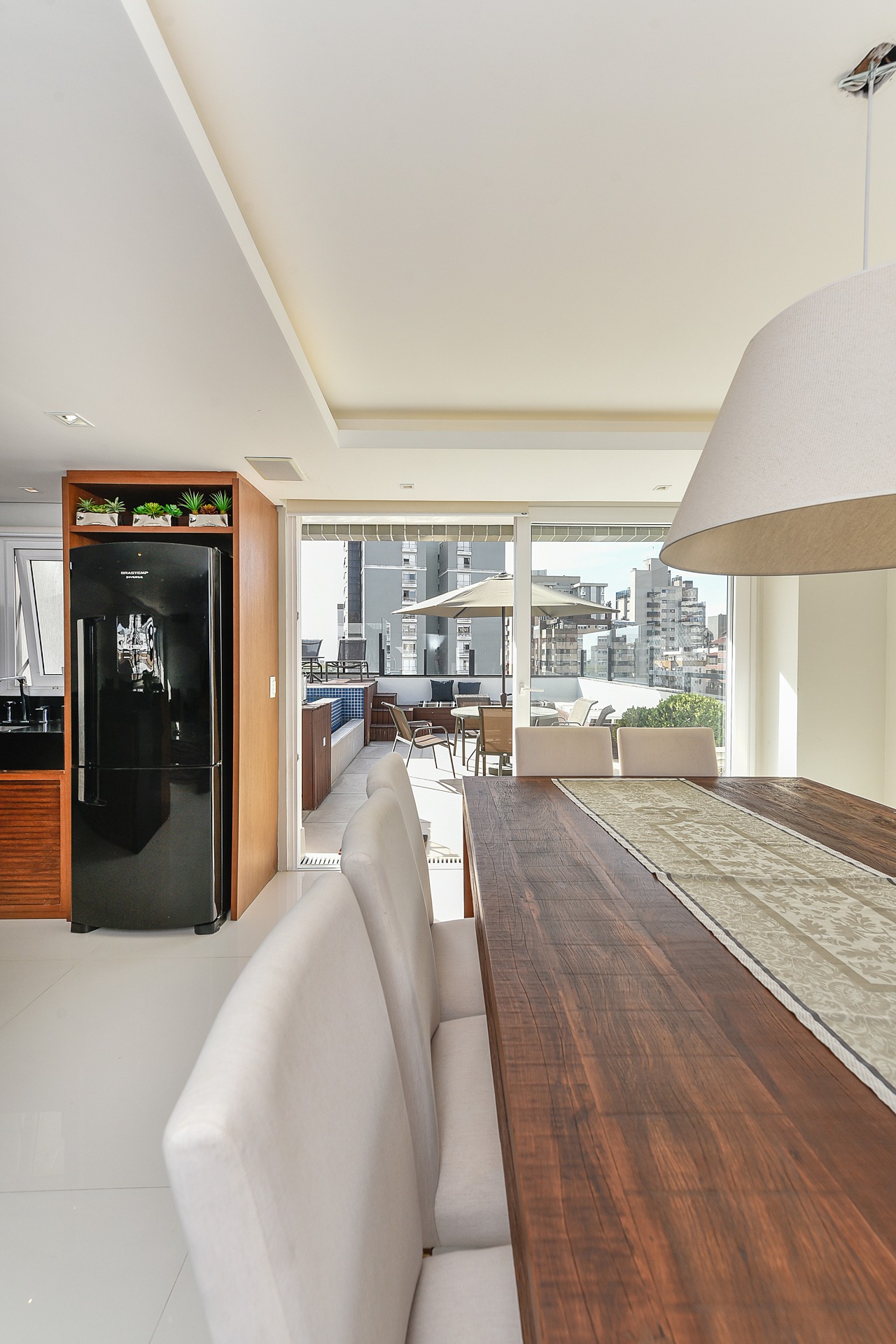 Este imóvel destaca-se pelo seu living em L, com sacada aberta e vista para a Praça da Encol, proporcionando um ambiente espaçoso e arejado. A sala é equipada com lareira e churrasqueira, com acesso direto ...