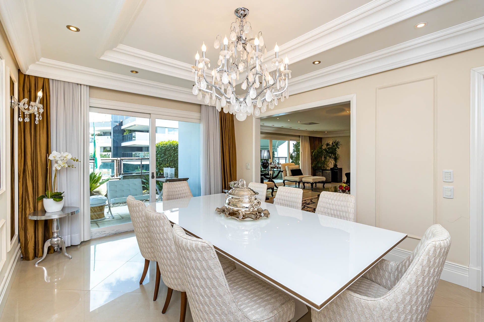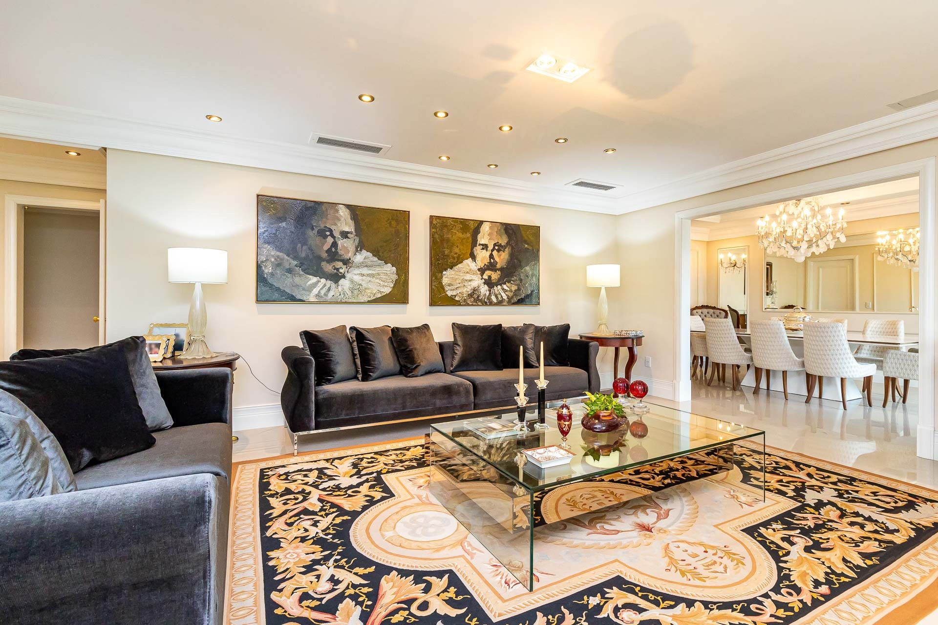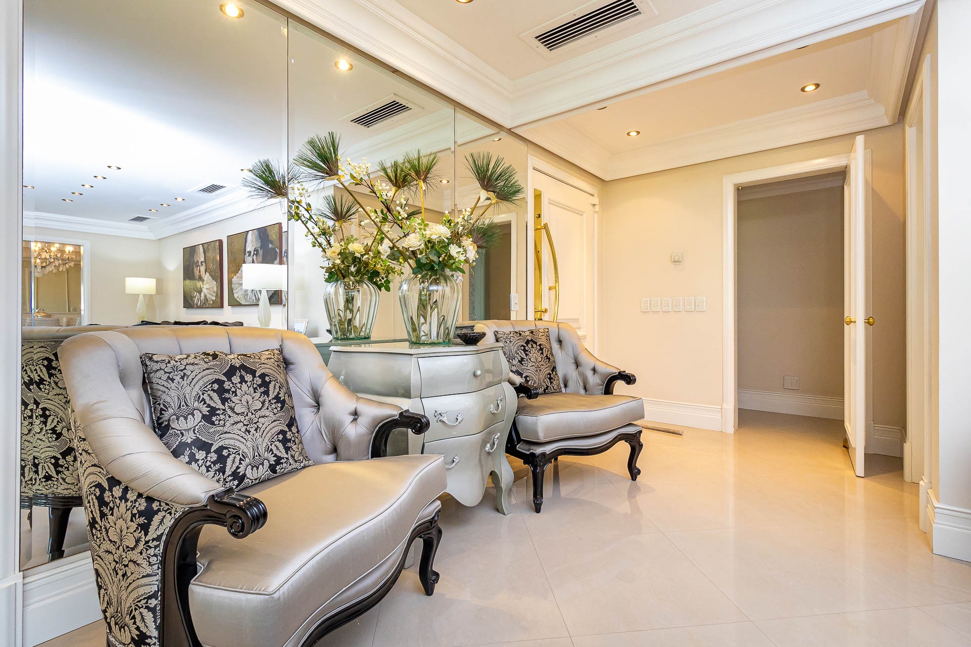 Ao entrar, você será recebido por um hall de entrada imponente, adornado com um elegante gabinete e um lavabo sofisticado. A luz natural inunda os espaços de estar, co...