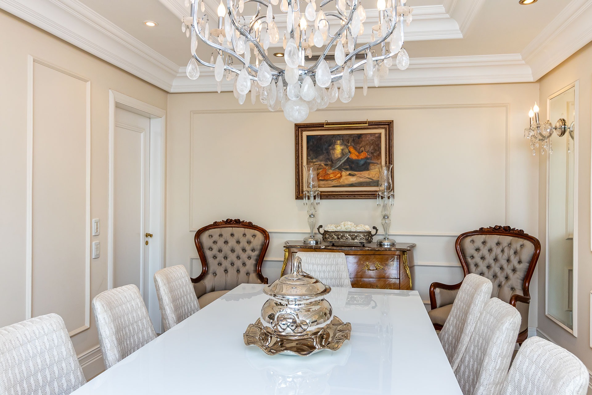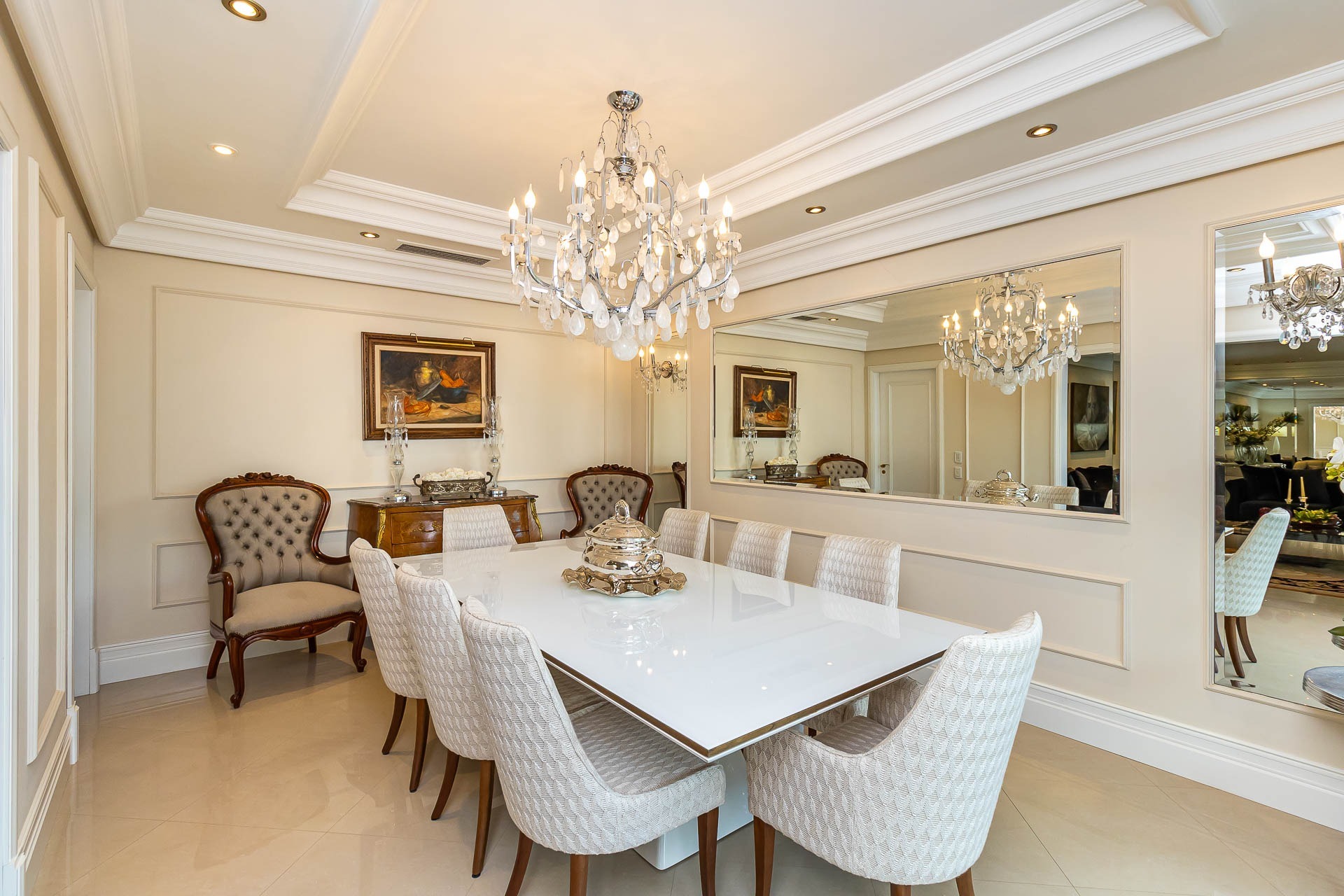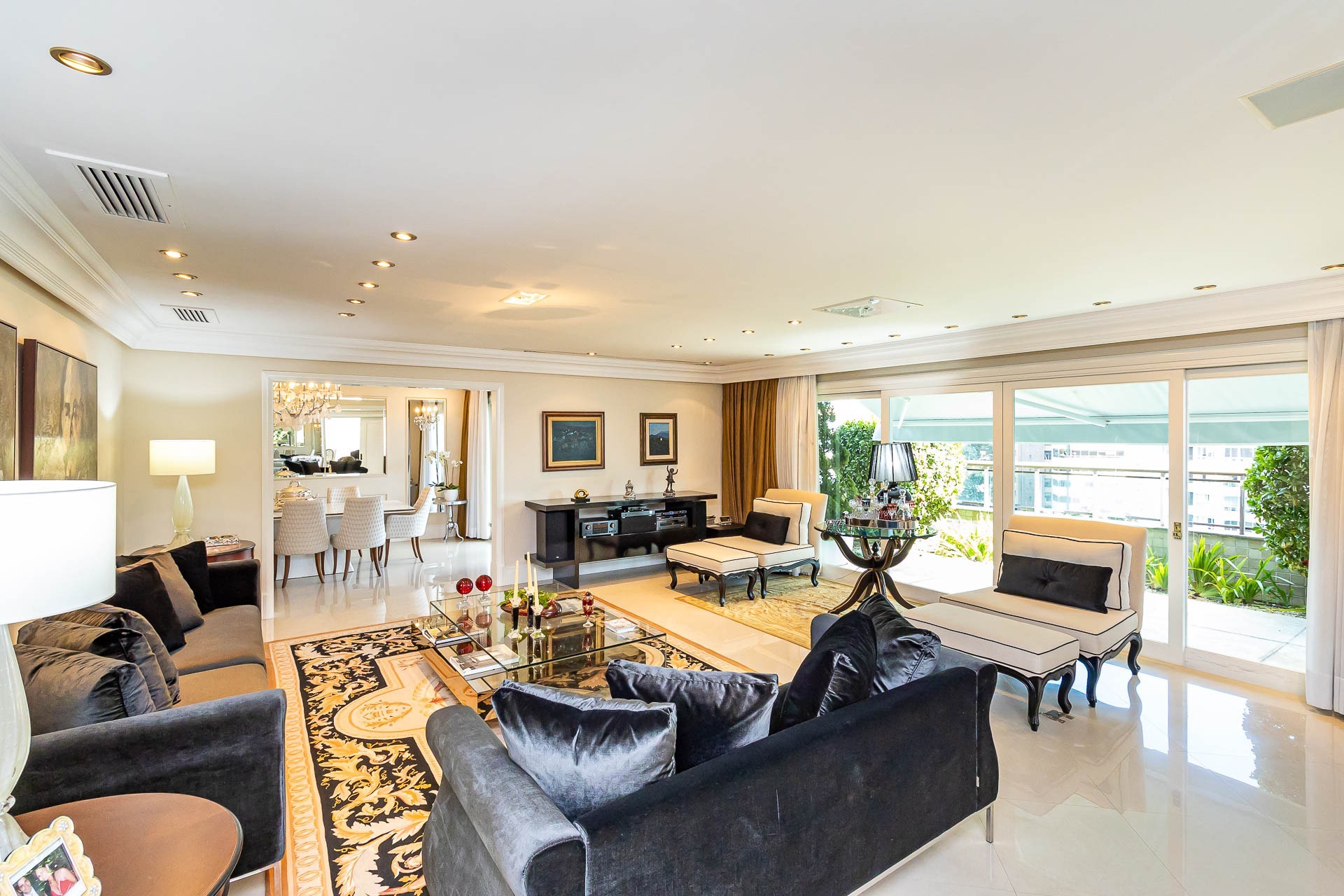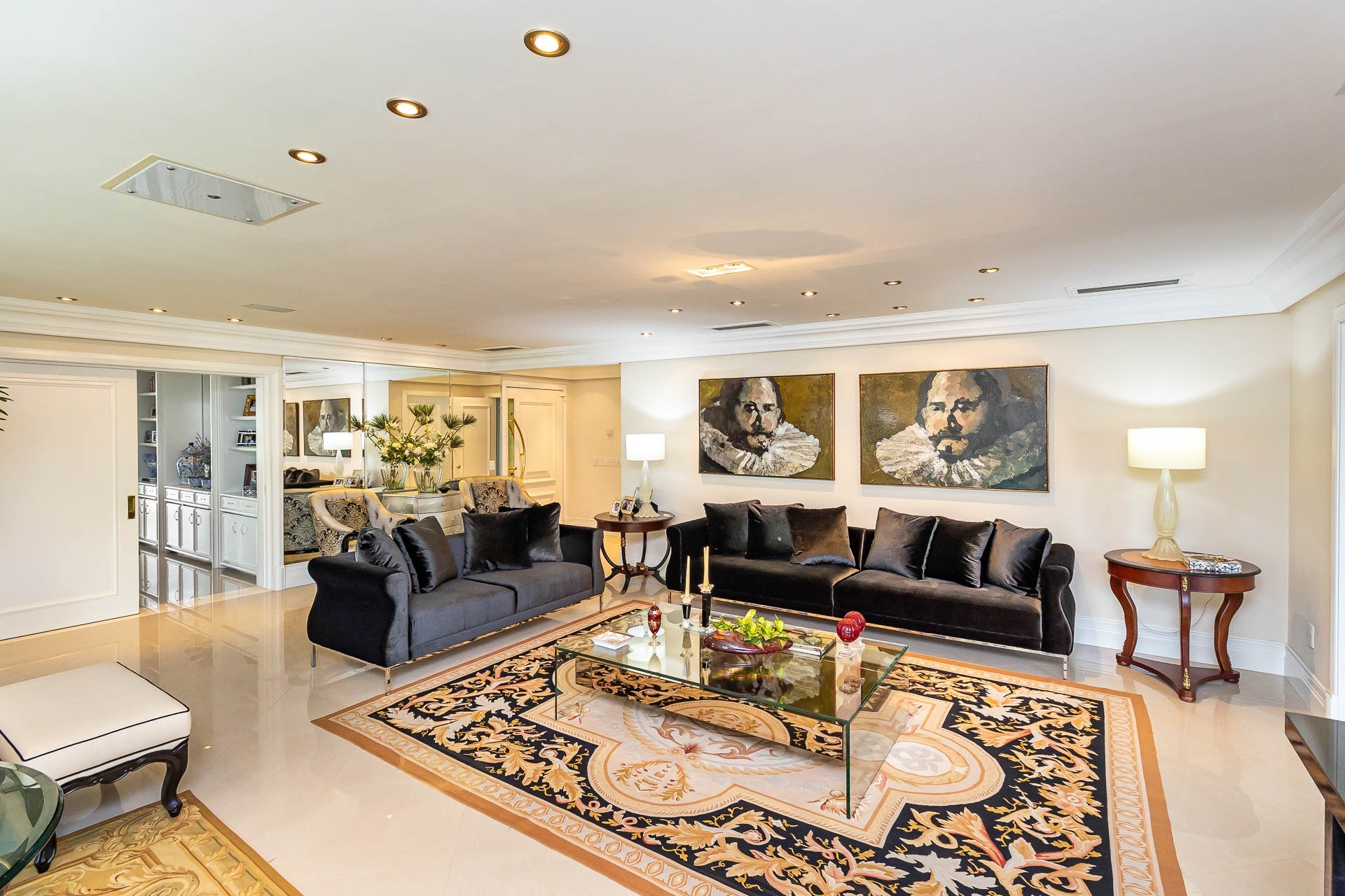 Ao entrar, você será recebido por um hall de entrada imponente, adornado com um elegante gabinete e um lavabo sofisticado. A luz natural inunda os espaços de estar, co...