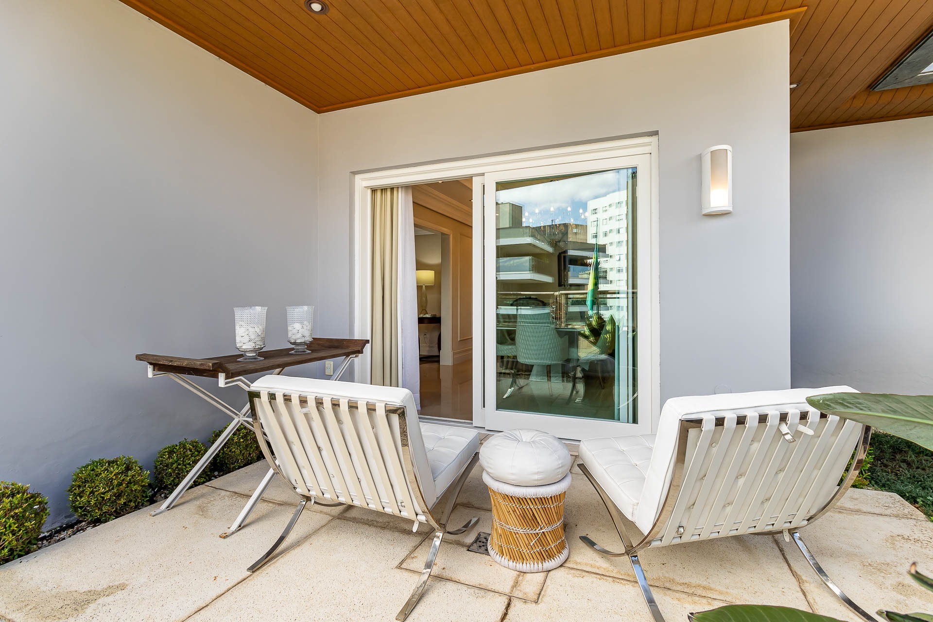 Pé-direito de 3m e esquadrias piso-teto que permitem ambientes abertos, arejados e com muita iluminação natural. Além disso, as esquadrias fazem com que o interior se integre com o espaço externo, tornando o living em uma grande varanda. A ideia é descomplicar a vida e favorecer o convívio.