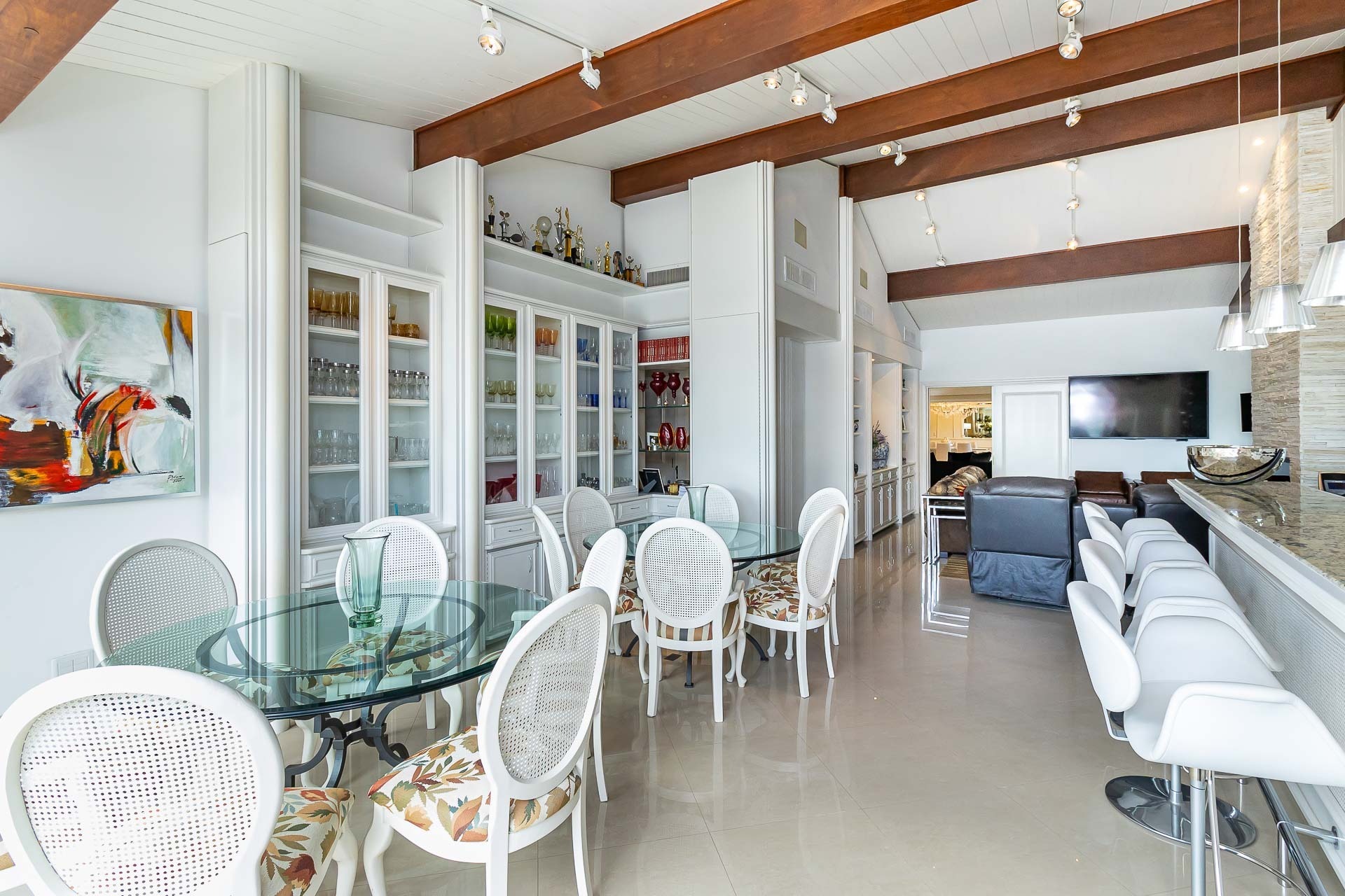 São 4 suítes, living 3 ambientes com lareira, ampla sacada com churrasqueira, lavabo, copa-coz...