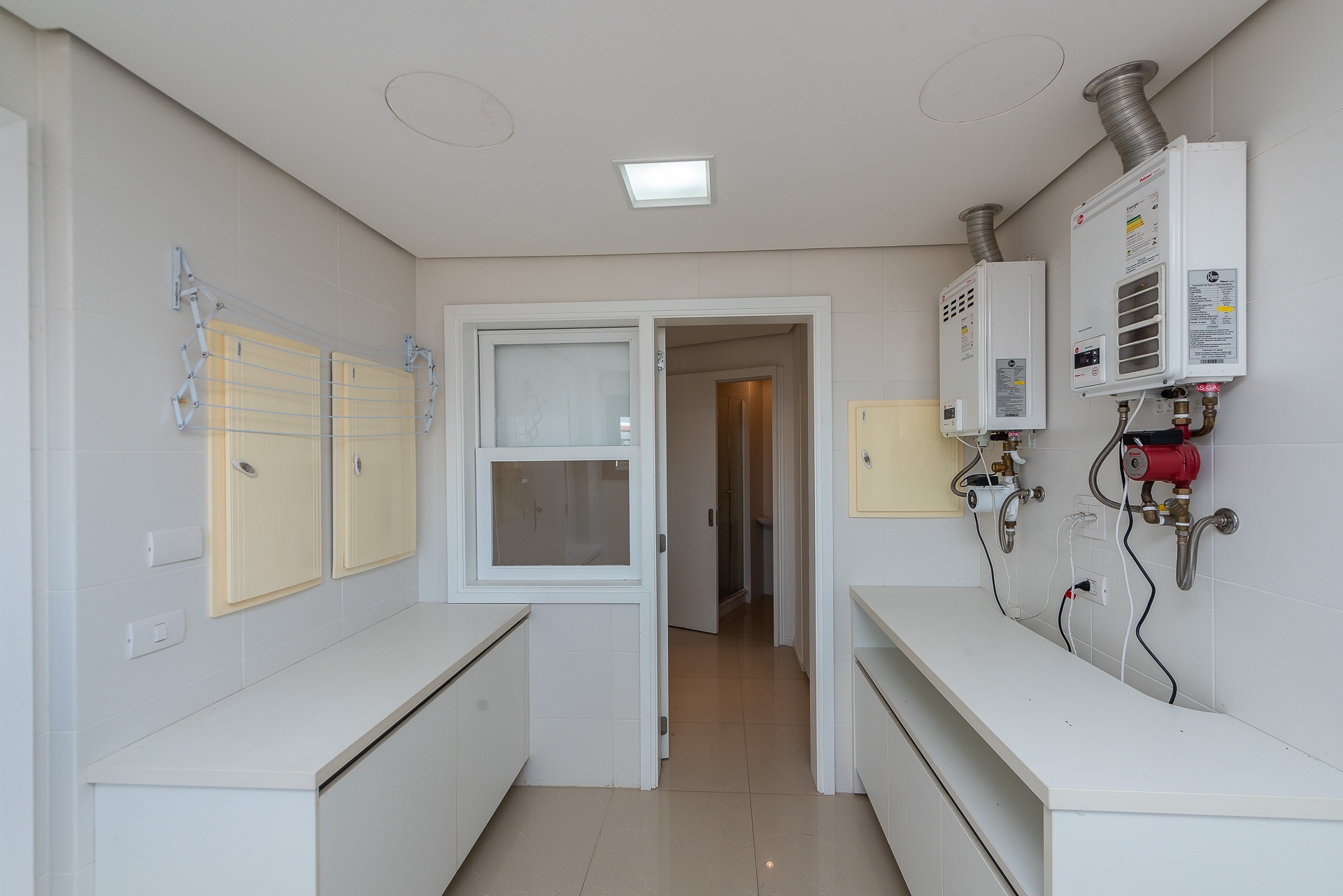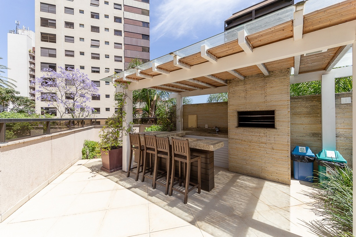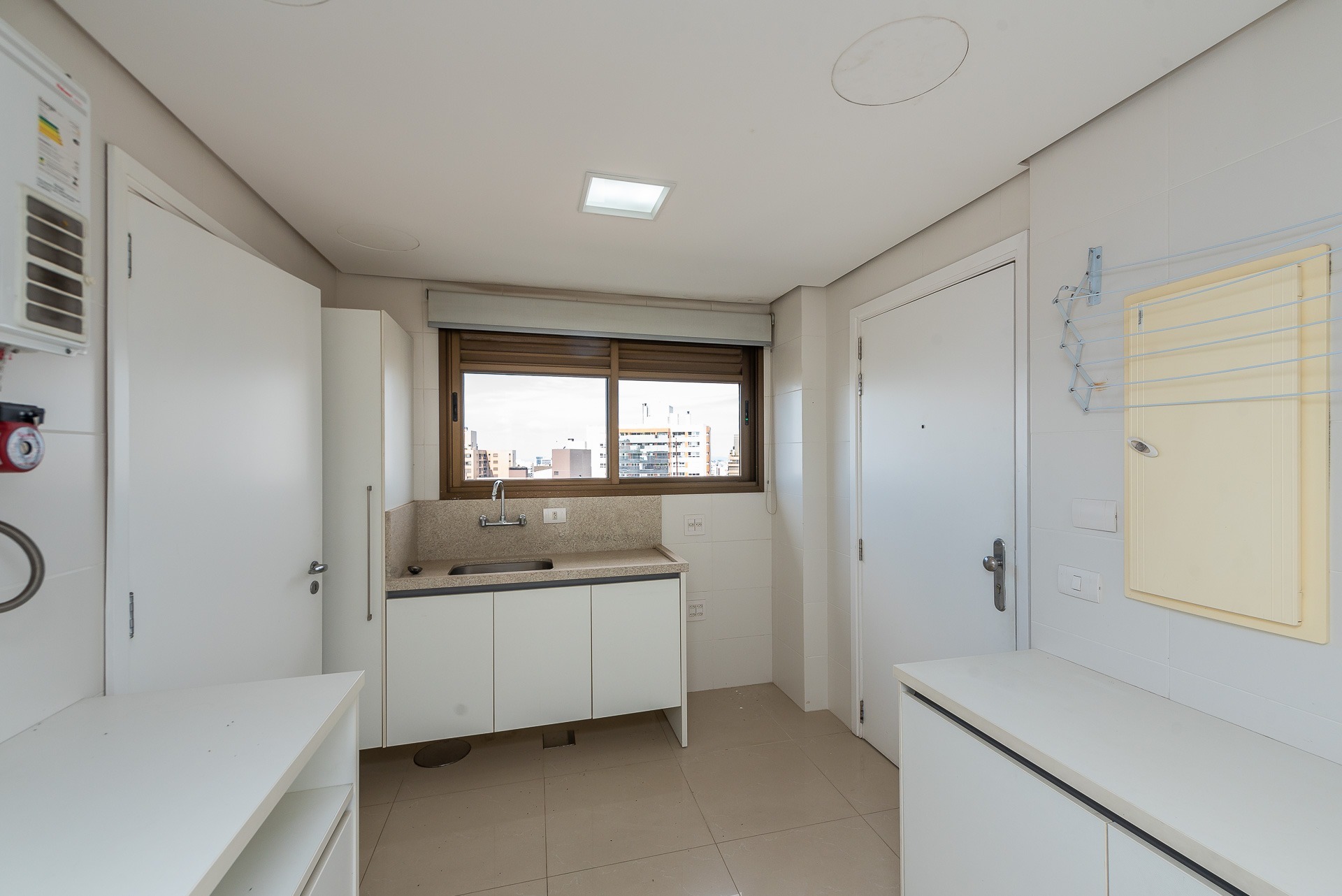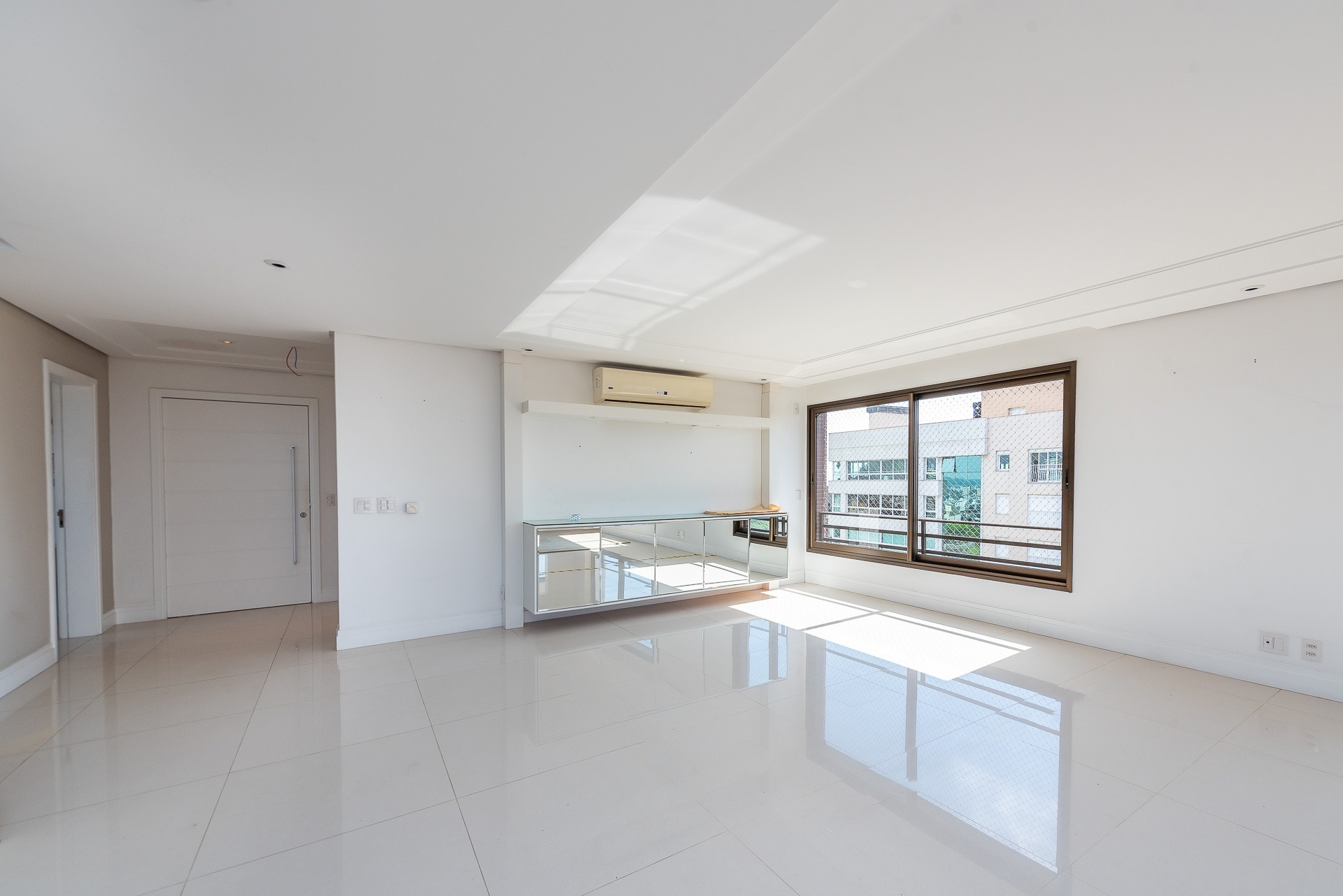 Possui área privativa de 113,96m², sendo que o imóvel conta ainda com banheiro social, amplo living 2 ambientes com churrasqueira, cozinha, área de serviço e dependência de empregada completa.