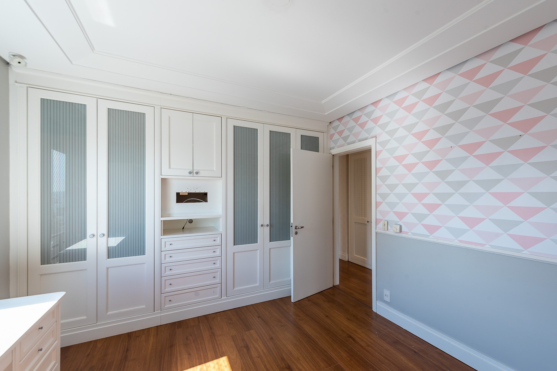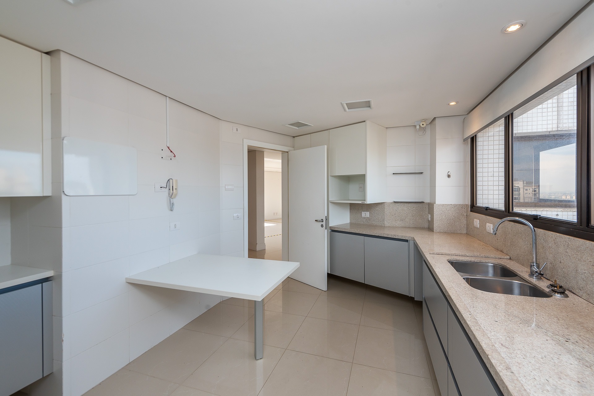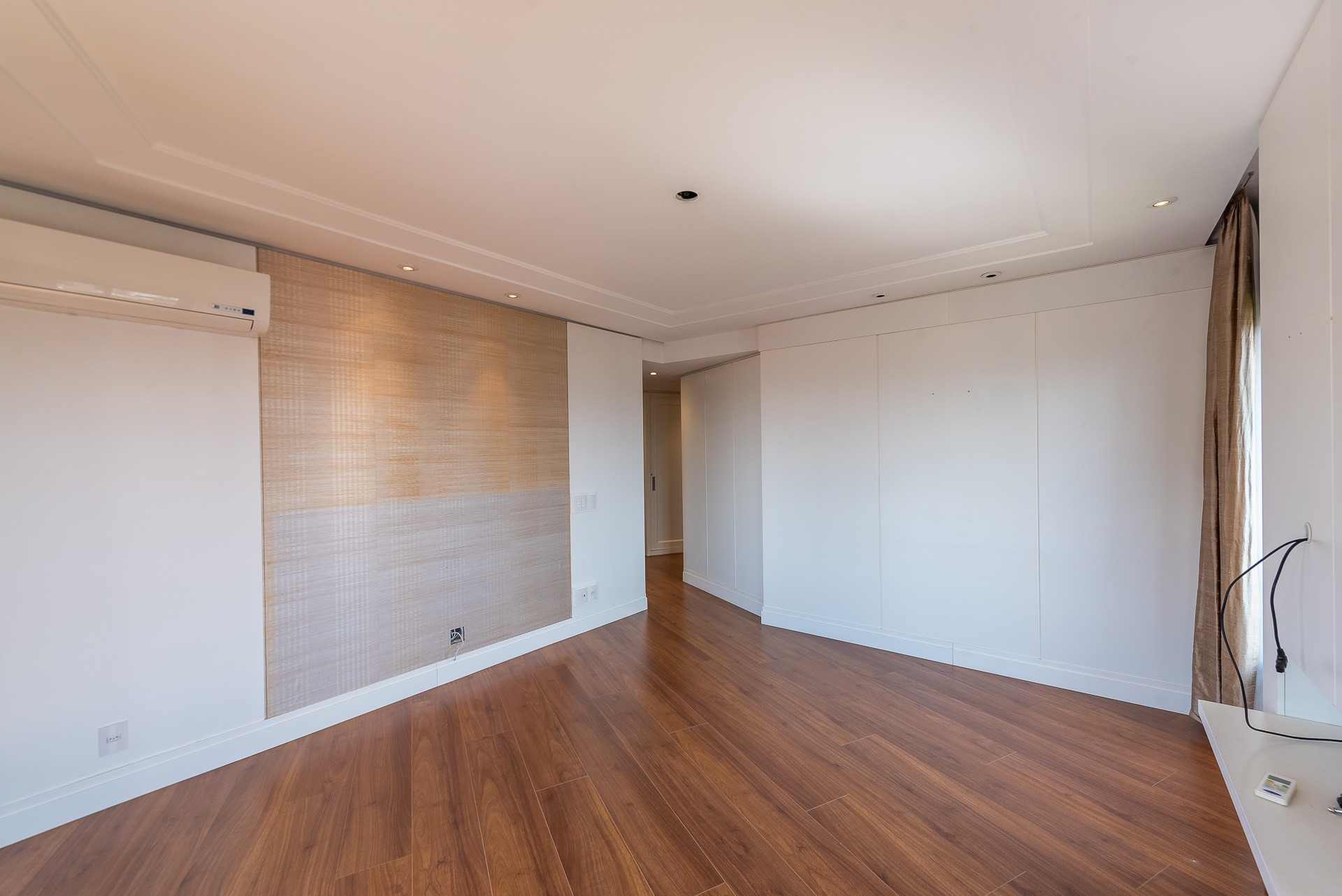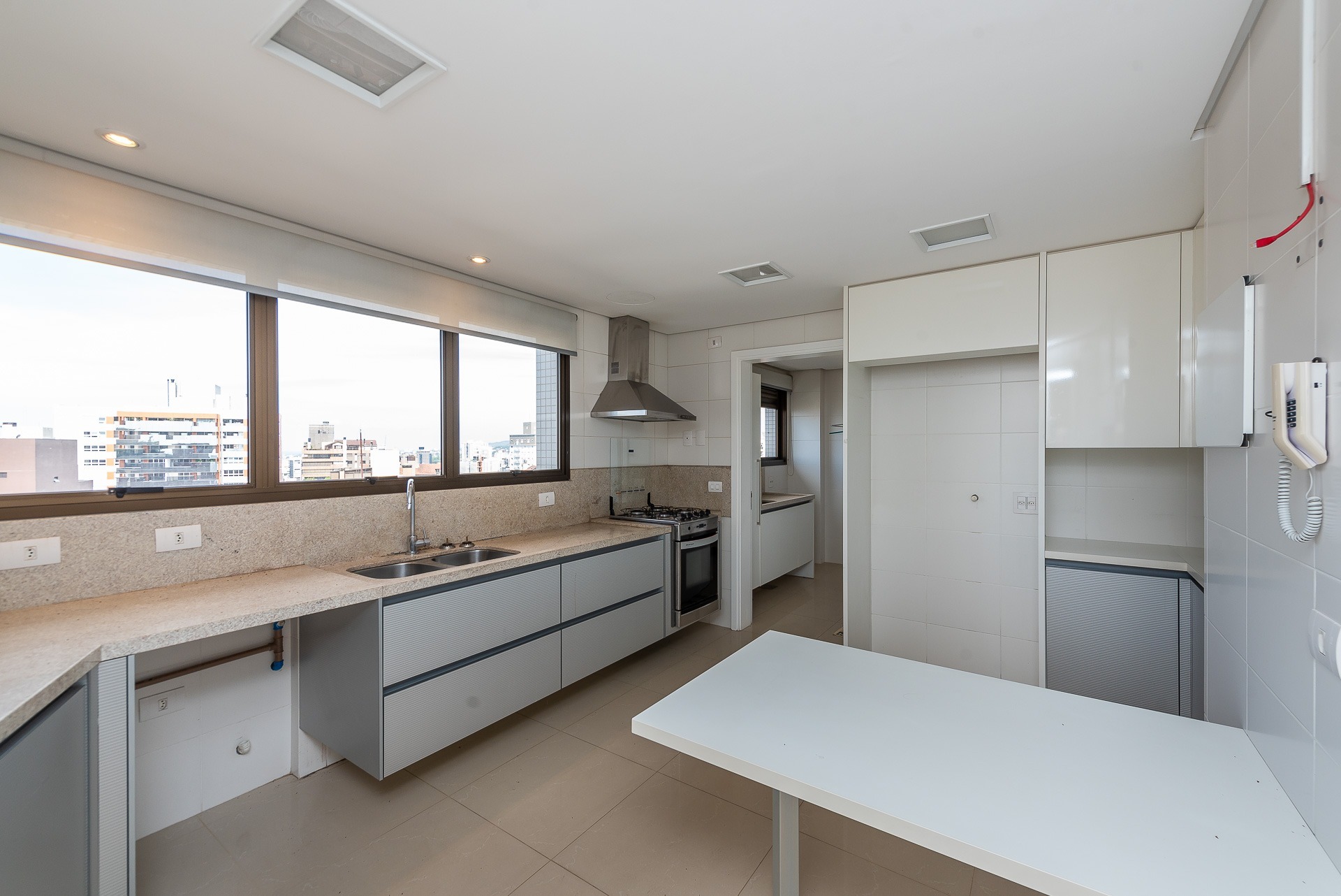 Apartamento para alugar mobiliado com 4 dormitórios, sendo 2 suítes, 179m de área privativa, living com ar condicionado, sacada fechada e ampla com churrasqueira, escrivaninha, cômodas, ventiladores de teto e cortinas, banheiro social com armários, cozinha completa com armários, fogão, geladeira, micro-ondas e coifa e área de serviço.