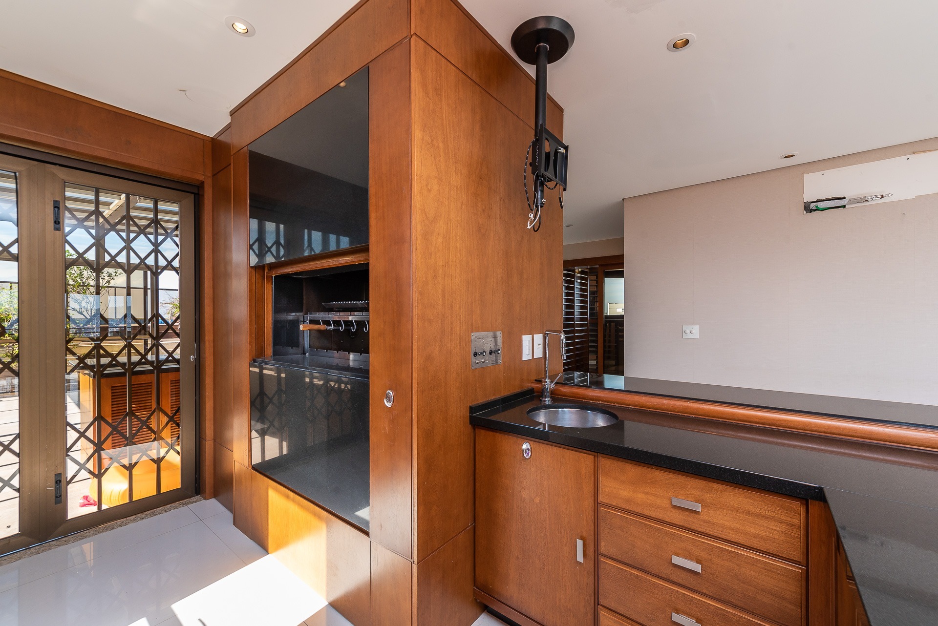 Living 3 ambientes, lareira, espaço gourmet com churrasqueira, lavabo, copa cozinha, dependência completa de empregada e 4 vagas de garagem.