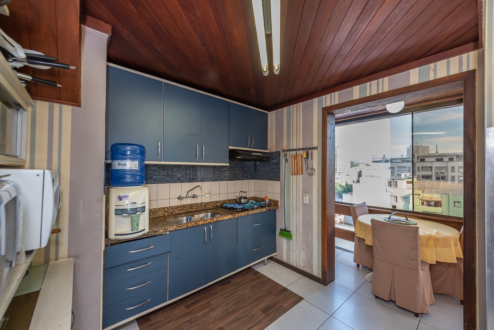 Apartamento para alugar mobiliado com 4 dormitórios, sendo 2 suítes, 179m de área privativa, living com ar condicionado, sacada fechada e ampla com churrasqueira, escrivaninha, cômodas, ventiladores de teto e cortinas, banheiro social com armários, cozinha completa com armários, fogão, geladeira, micro-ondas e coifa e área de serviço.