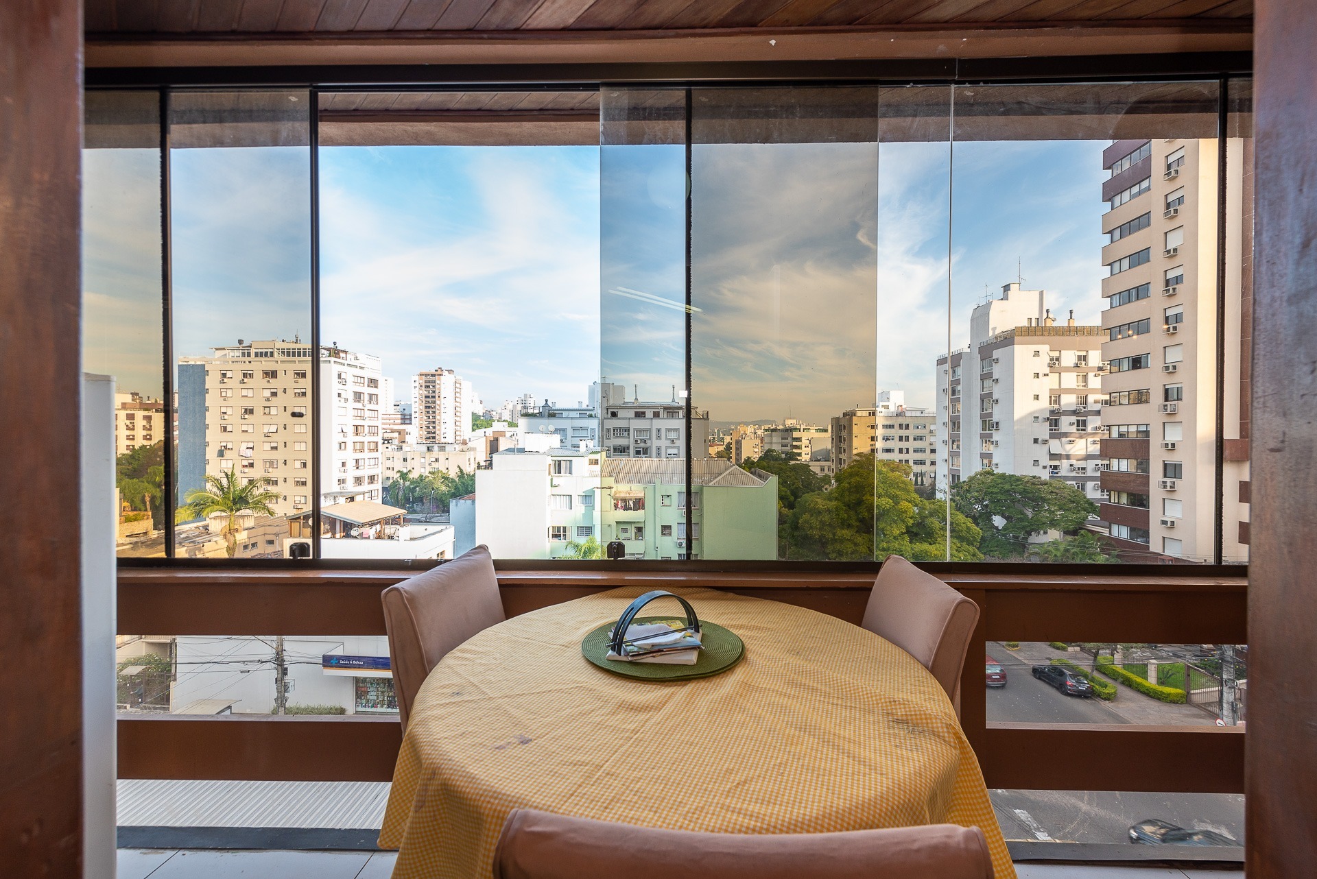 Cobertura MOBILIADA com 656m², vista deslumbrante de 360.º, 6 suítes, 7 vagas de garagem individuais, depósito, infraestrutura completa no ponto alto do bairro Rio Branco. No primeiro pavimento: hall privativo, elevador codificado, 1 por andar, living4 ambientes, um com lareira e sacada, 1 lavabo, 4 suítes, a máster com closet e banheiro com hidromassagem, copa-cozinha, despensa, dependência emp...