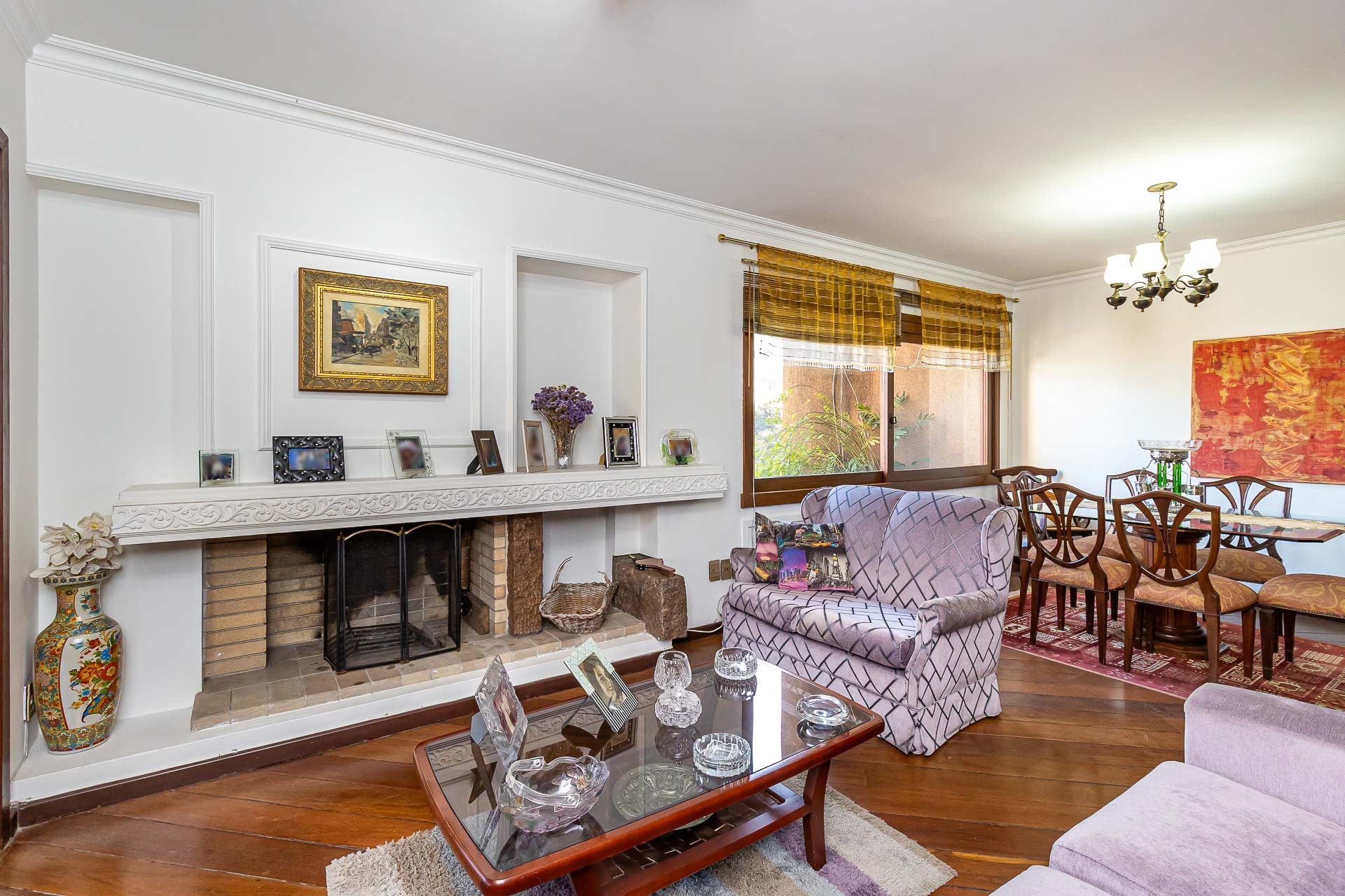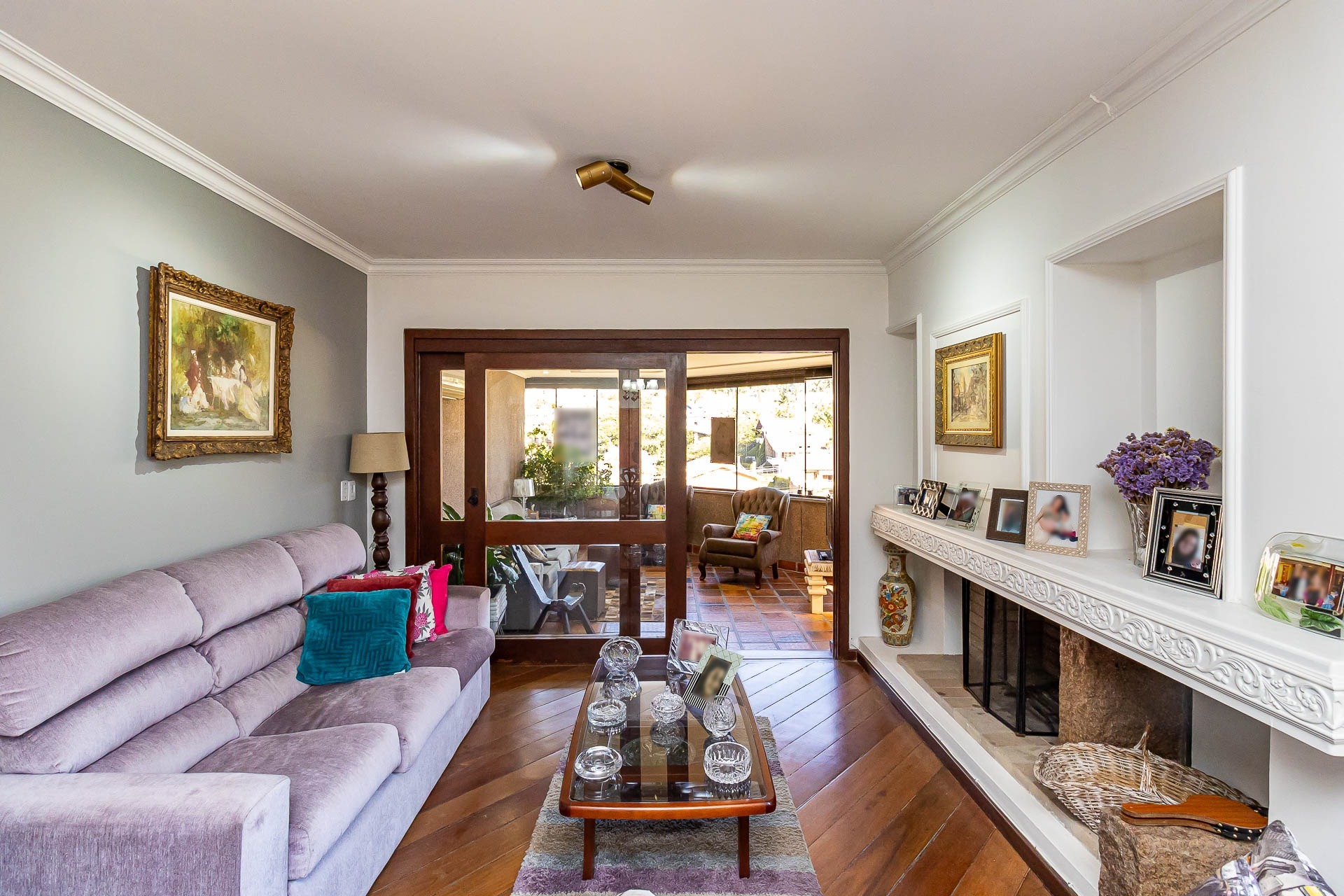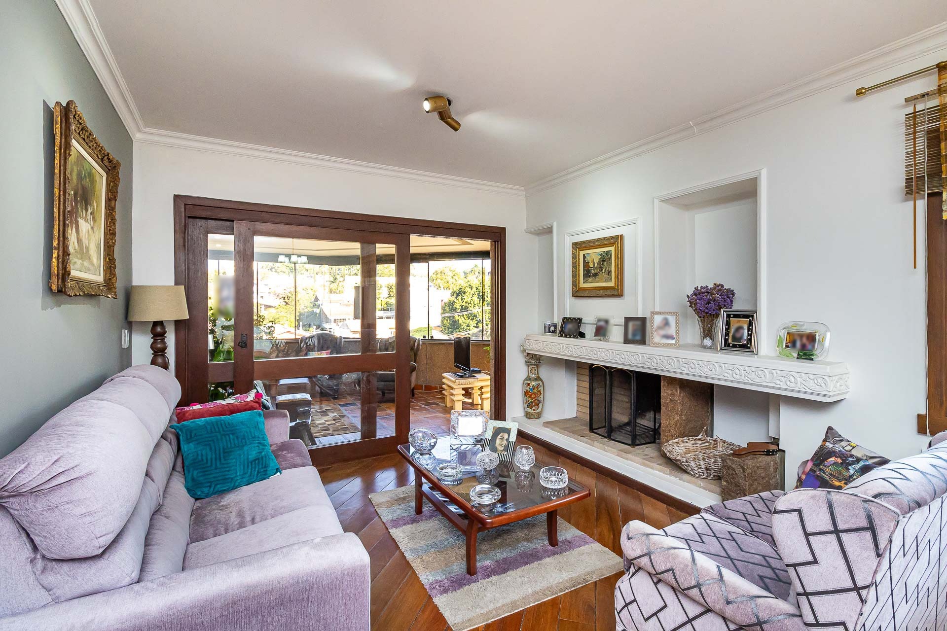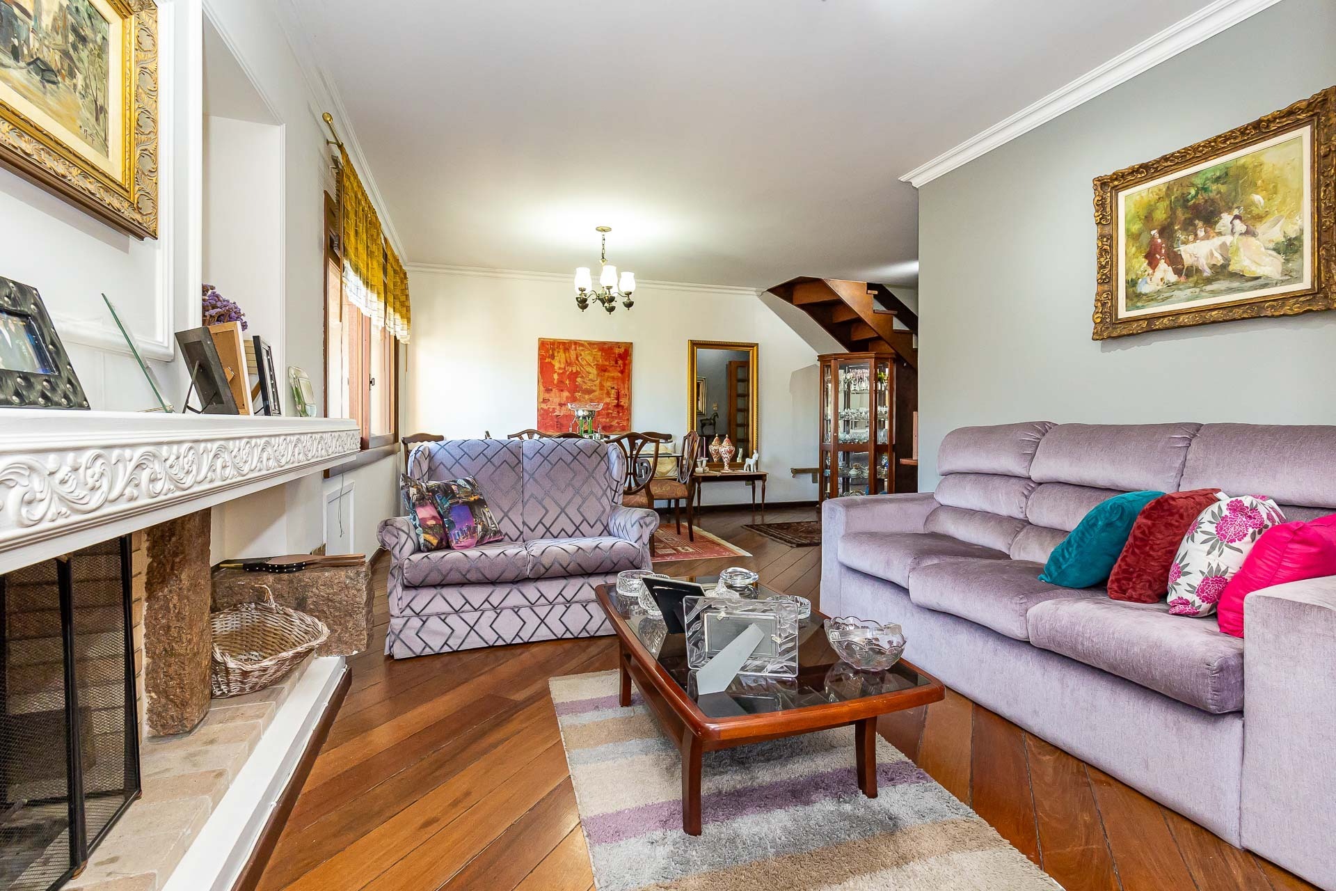 Amplo living equipado com lareira, detalhe que proporciona aconchego nos dias mais frios.