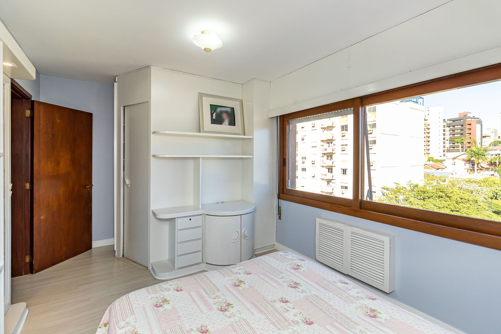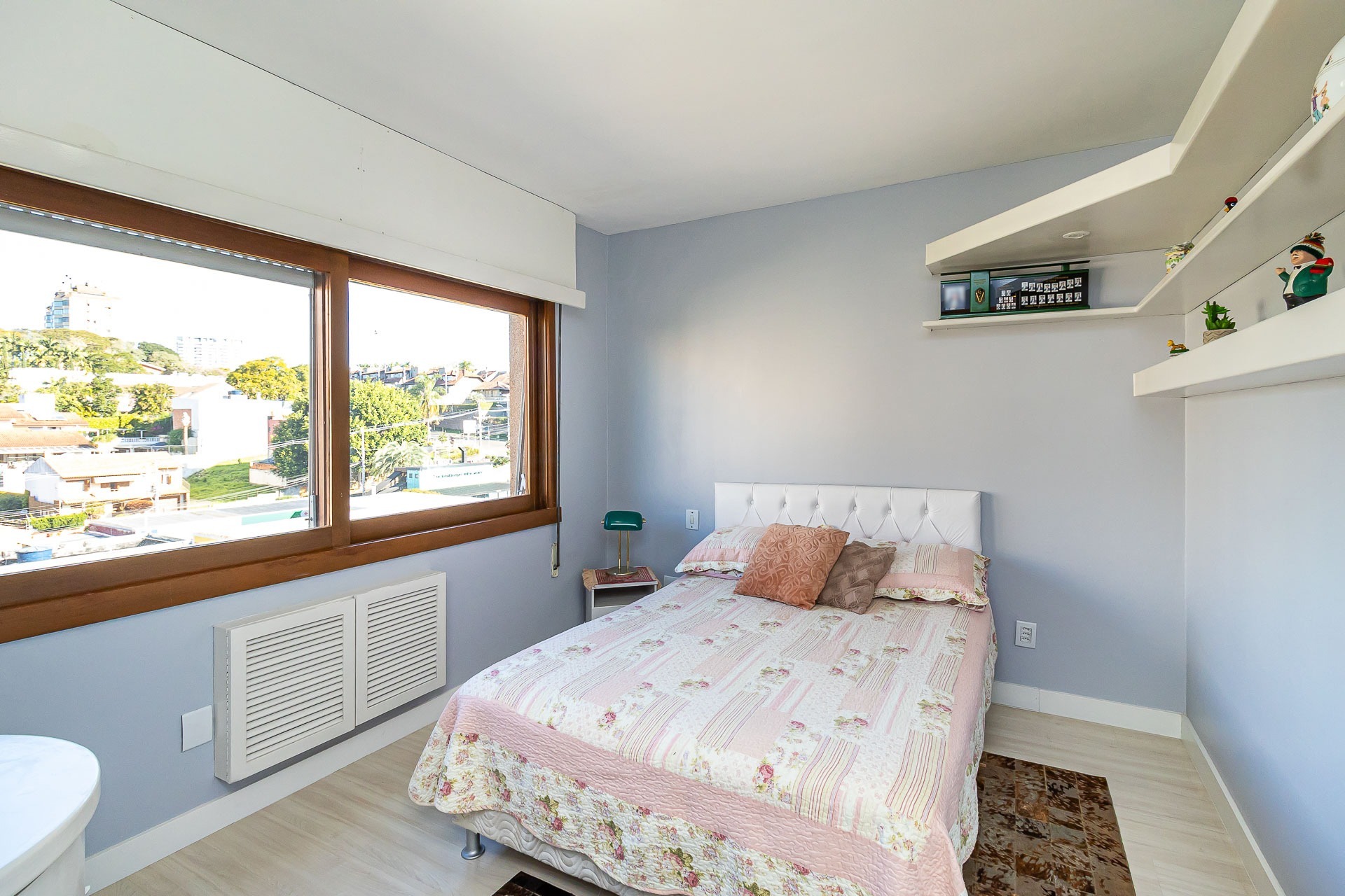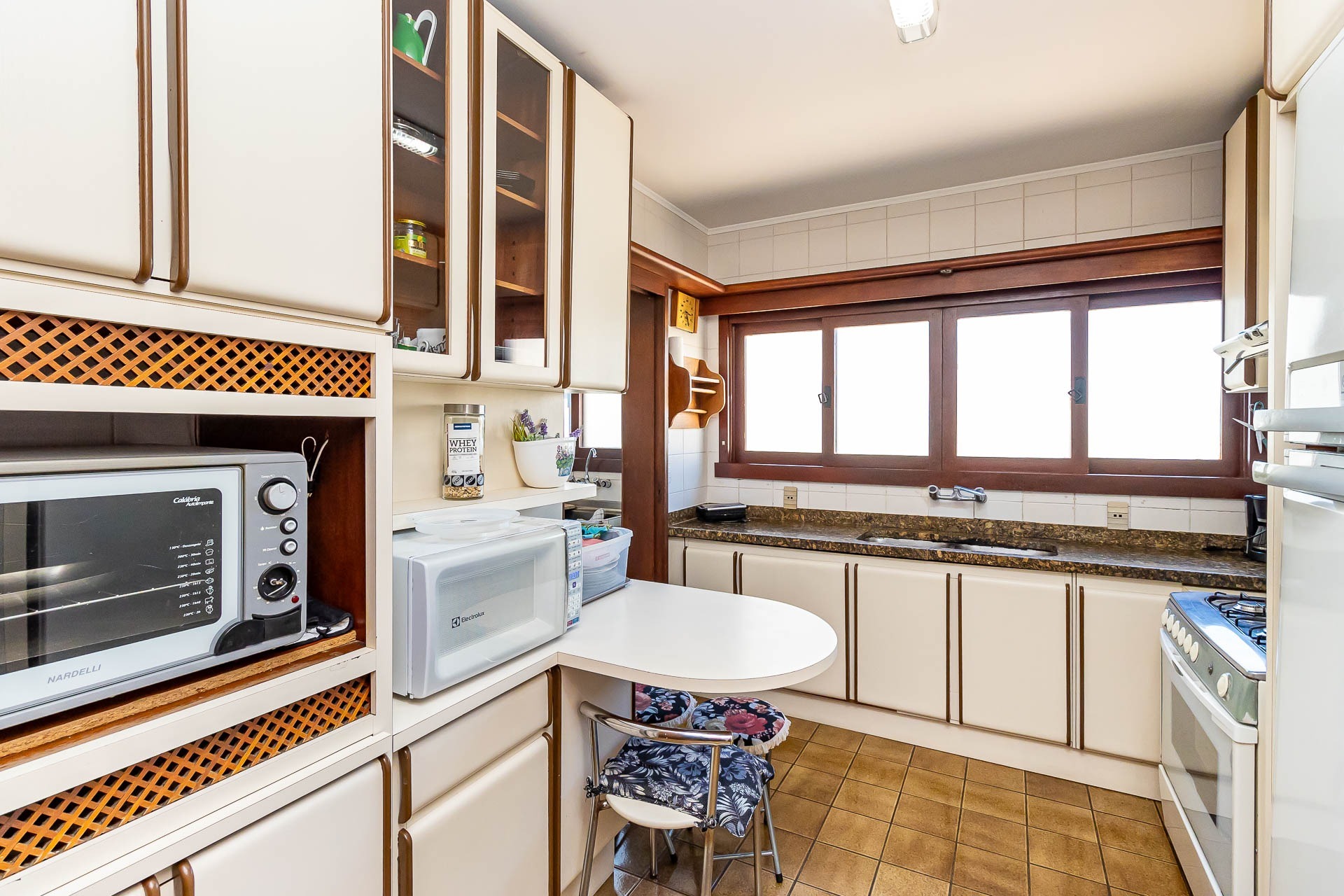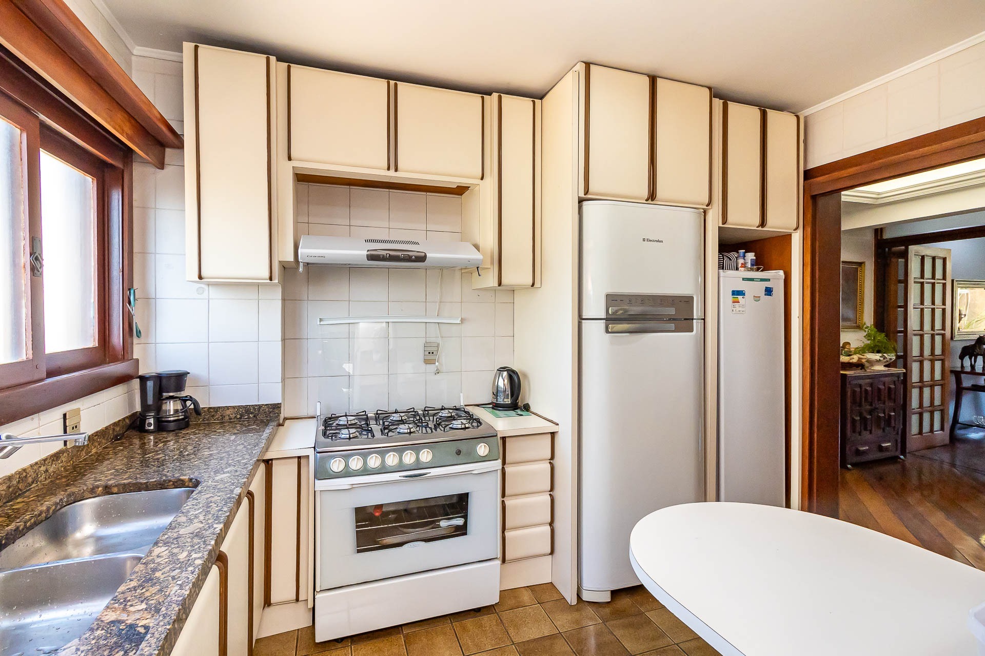 Esta cobertura no bairro Petrópolis, próxima à Praça da Encol, oferece três dormitórios, incluindo uma suíte, e um living espaçoso para até três ambientes. A área é bem ventilada e ensolarada, com uma lareira que adiciona charme ao ambiente. A cozinha funcional é acompanhada por uma área de serviço prática, que inclui um banheiro auxiliar.