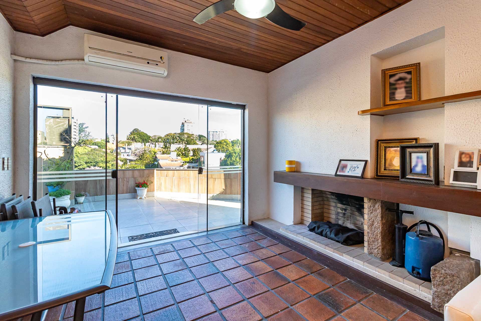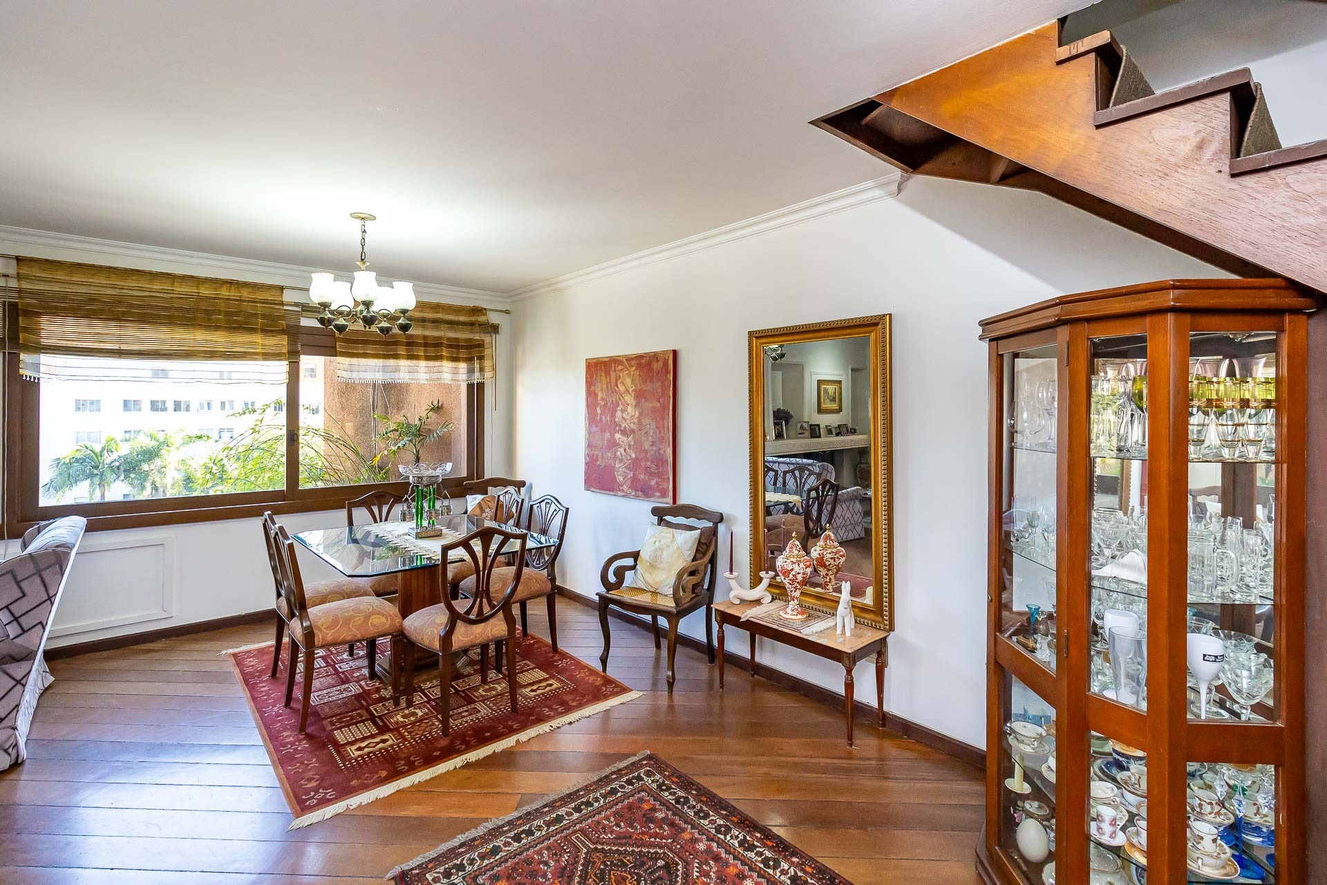 Cobertura com 3 quartos, 1 suíte, no bairro Higienópolis, com 297 m² privativos, lavabo, amplo living conjugado com área fechada, lareira, sala de jantar, gabinete, cozinha e dependência completa. No piso superior temos espaço gourmet com churrasqueira, sala de estar com lareira, terraço com piscina e linda vista para a cidade e para o Guaíba. Imóvel possui 3 vagas de garagem individuais e escritu...
