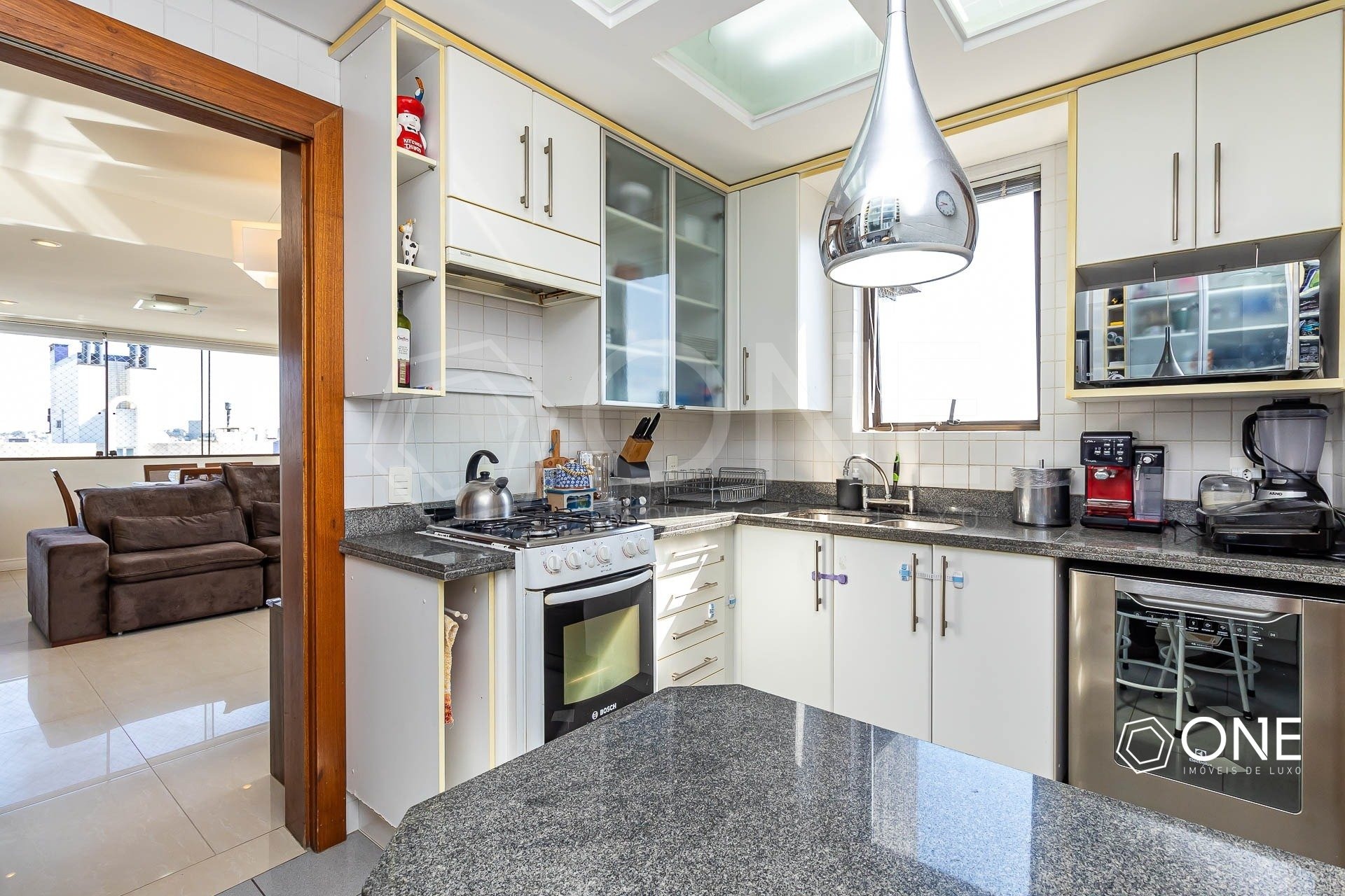 Apartamento semimobiliado de 222 m² privativos com vista deslumbrante em andar alto. Pronto para morar, conta com 3 suítes, incluindo uma master com banheiros ele e ela. O amplo living para 3 ambientes, com lareira e espaço gourmet com churrasqueira, é ideal para receber amigos e familiares. O imóvel oferece ainda 2 gabinetes independentes, copa-cozinha espaçosa, área de serviço, dependência compl...
