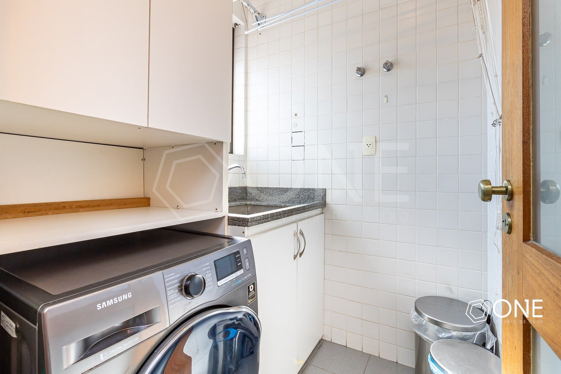 Apartamento para alugar mobiliado com 4 dormitórios, sendo 2 suítes, 179m de área privativa, living com ar condicionado, sacada fechada e ampla com churrasqueira, escrivaninha, cômodas, ventiladores de teto e cortinas, banheiro social com armários, cozinha completa com armários, fogão, geladeira, micro-ondas e coifa e área de serviço.