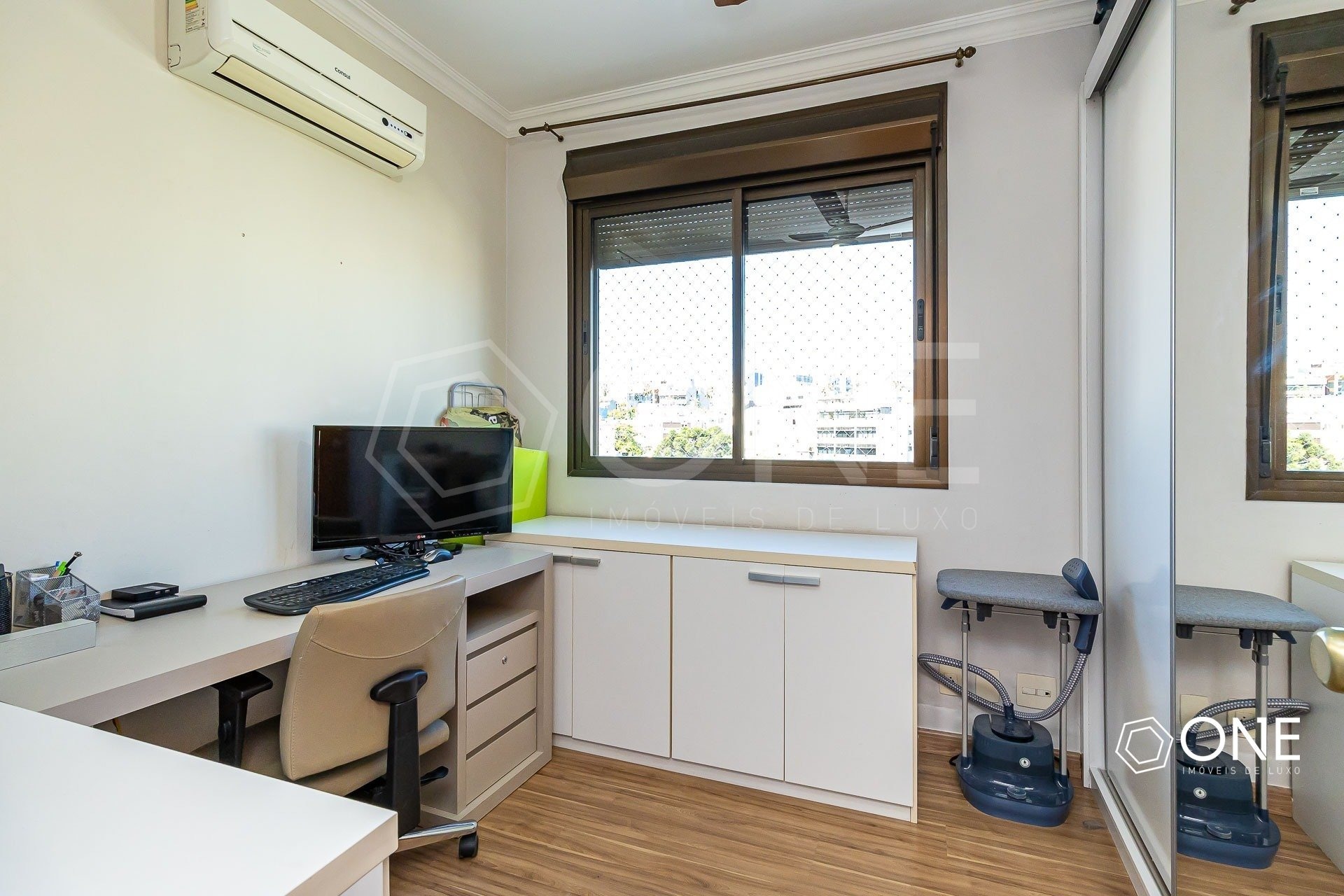 Apresentamos um sofisticado apartamento no bairro Petrópolis, com 266 m² de área privativa, oferecendo três suítes, incluindo uma suíte master com closet, banho ele/ela e lareira. Existe ainda a opção de uma quarta suíte ou escritório. O imóvel inclui três vagas de garagem, garantindo conveniência e exclusividade.