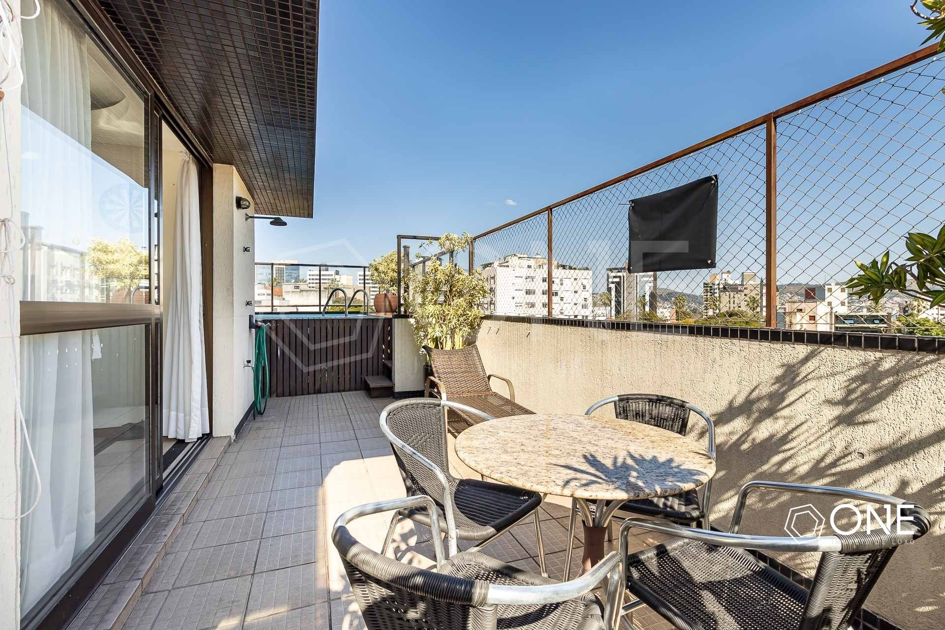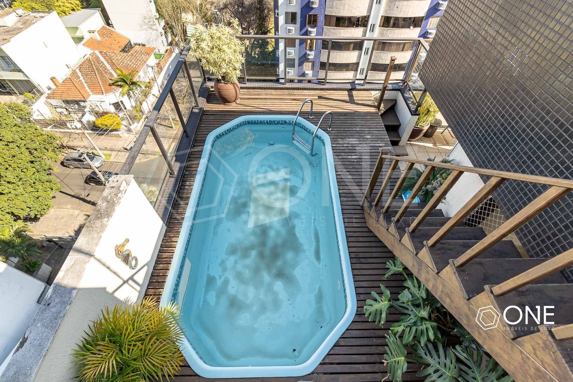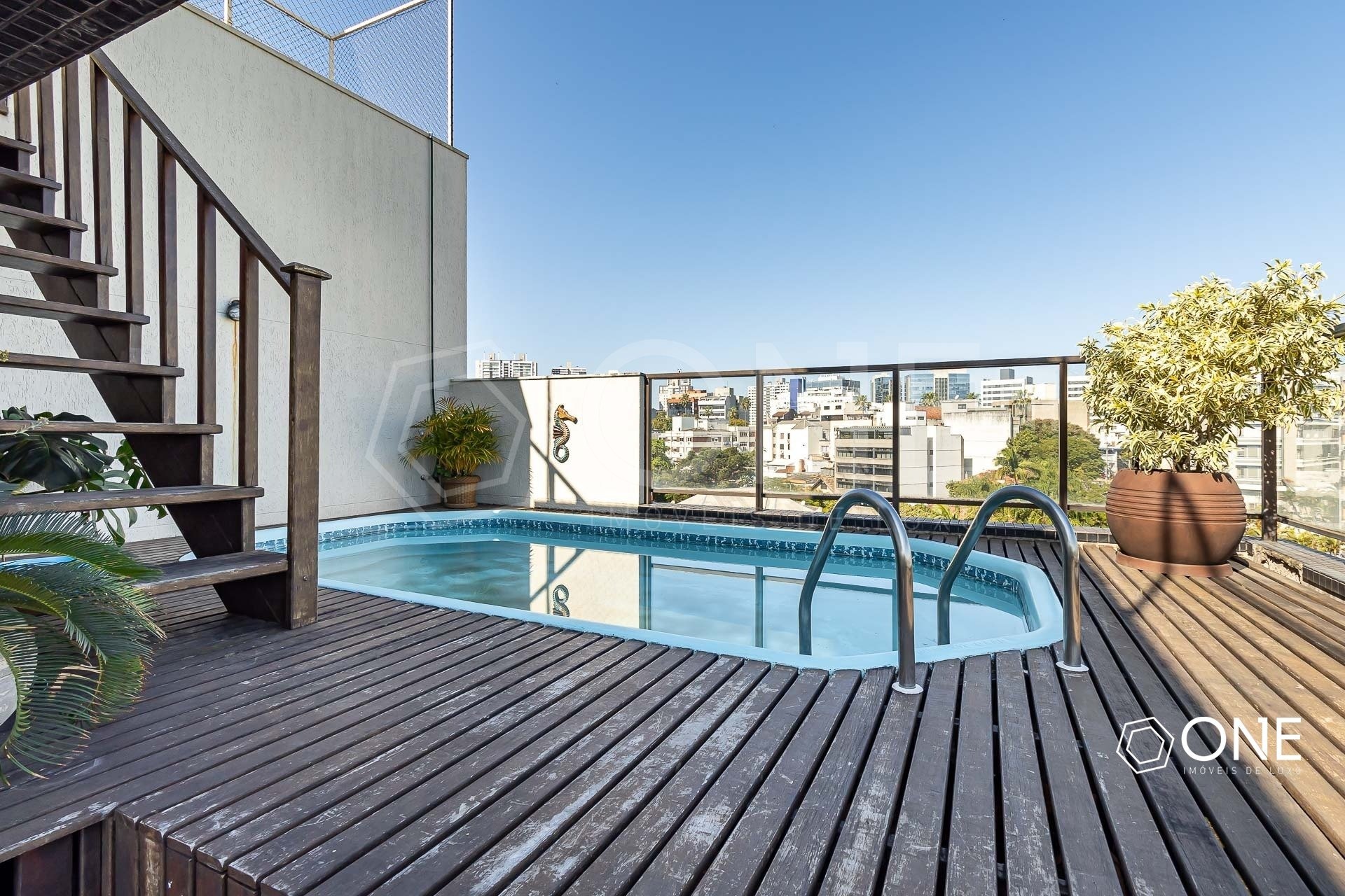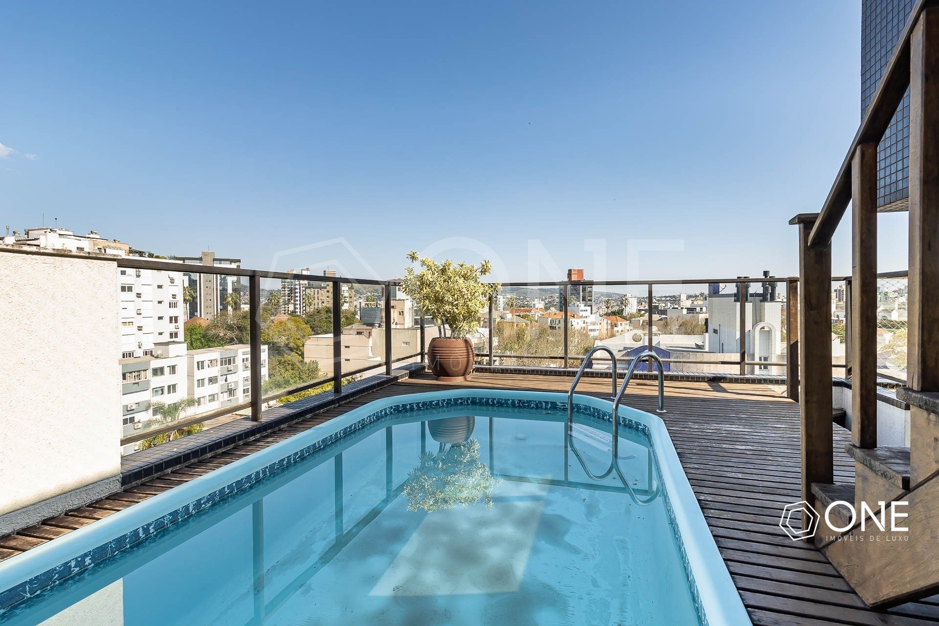 Cobertura MOBILIADA com 656m², vista deslumbrante de 360.º, 6 suítes, 7 vagas de garagem individuais, depósito, infraestrutura completa no ponto alto do bairro Rio Branco. No primeiro pavimento: hall privativo, elevador codificado, 1 por andar, living4 ambientes, um com lareira e sacada, 1 lavabo, 4 suítes, a máster com closet e banheiro com hidromassagem, copa-cozinha, despensa, dependência emp...