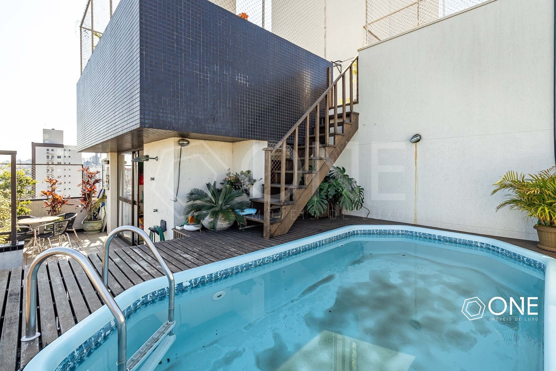 Cobertura com 6 quartos, Hidromassagem e Lareira com uma linda piscina azul da cor do mar
