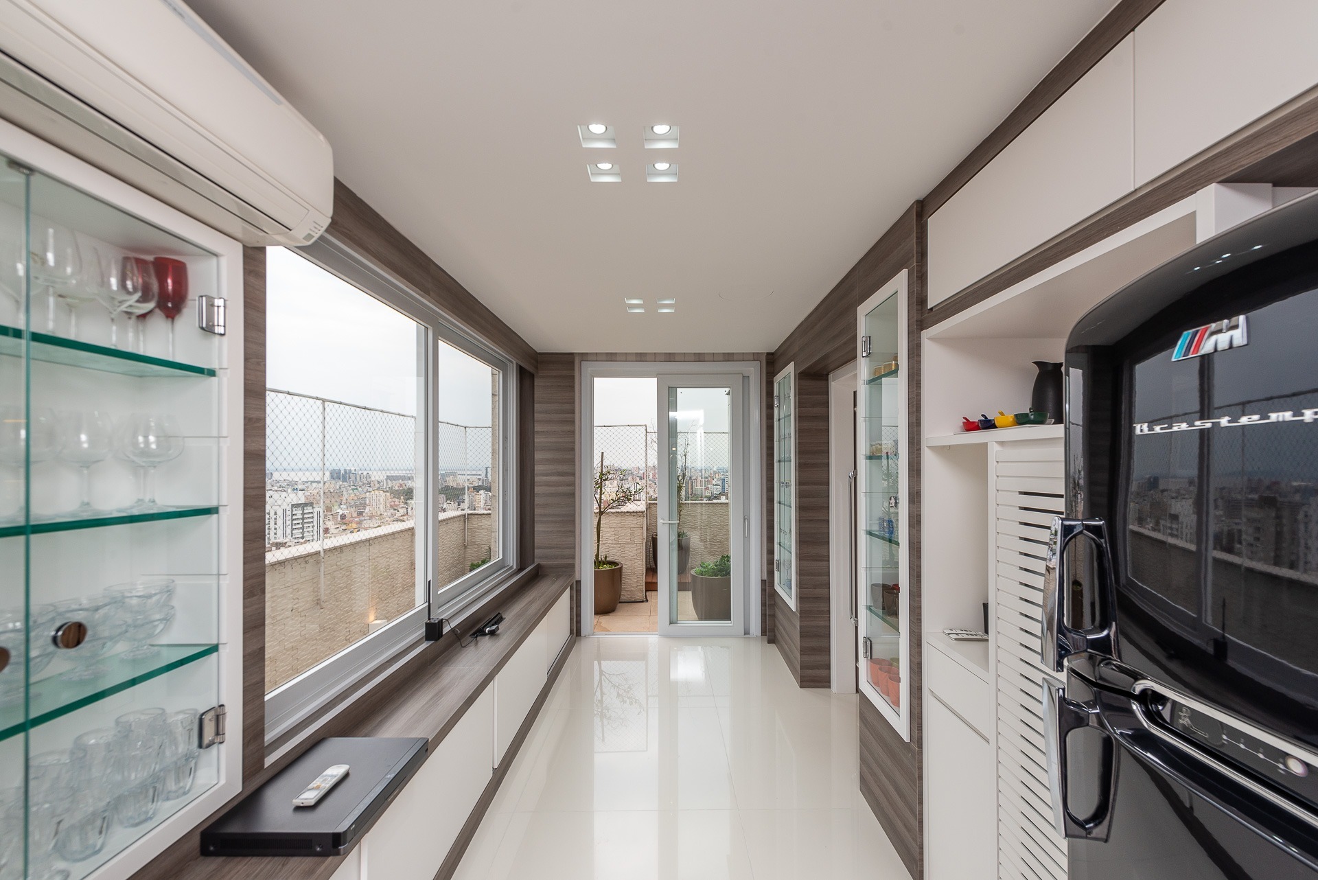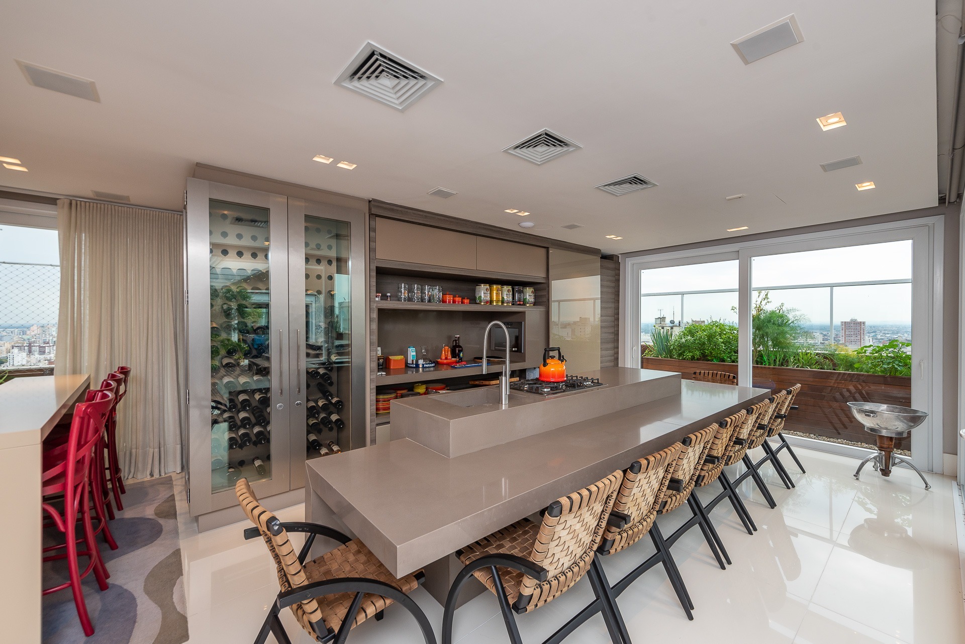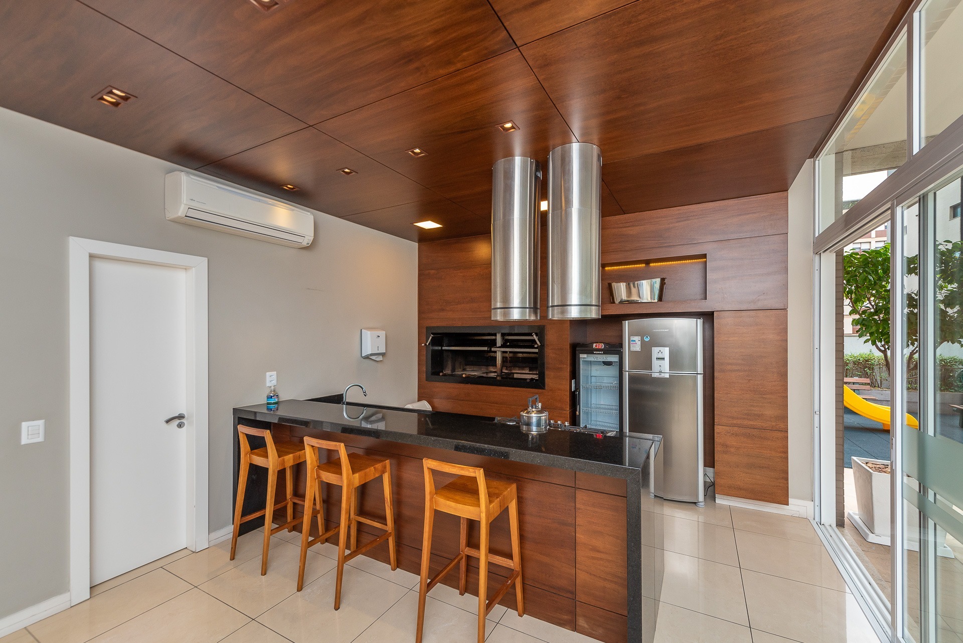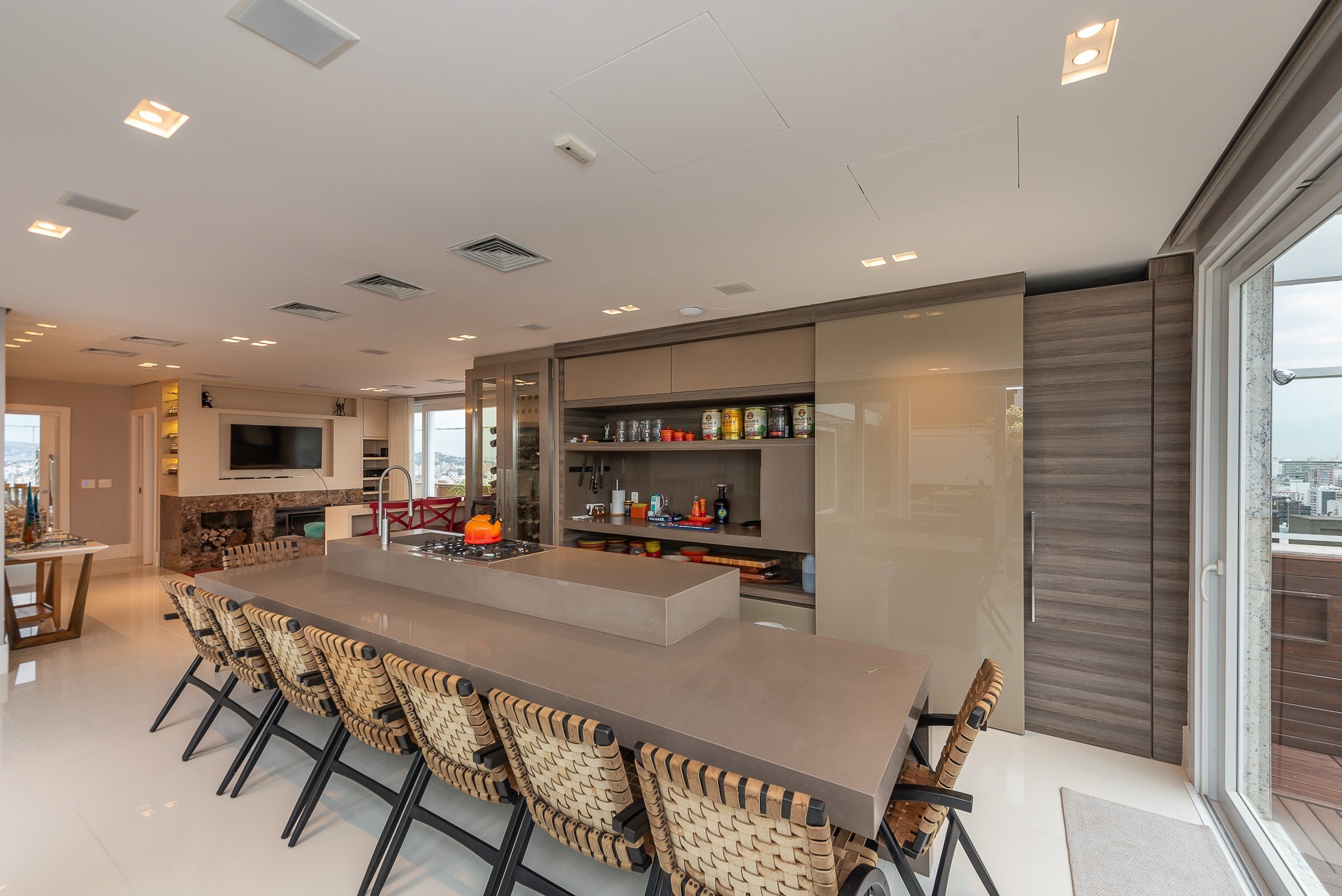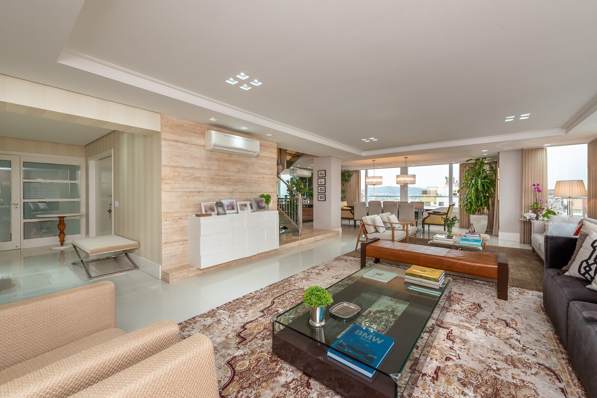 Apartamento possui um enorme living para 3 ambientes super iluminado e arejado, possui uma linda vista, lavabo, lareira, espaço gourmet com churrasqueira que da acesso ao terraço que conta com uma piscina aquecida.