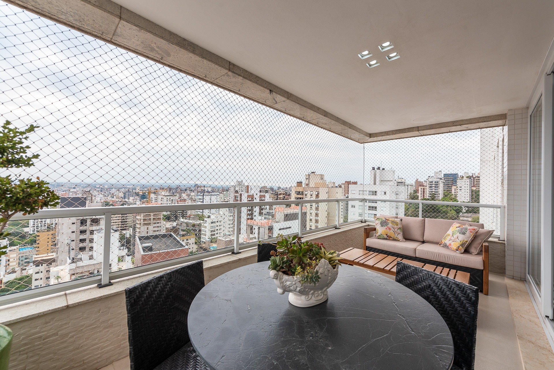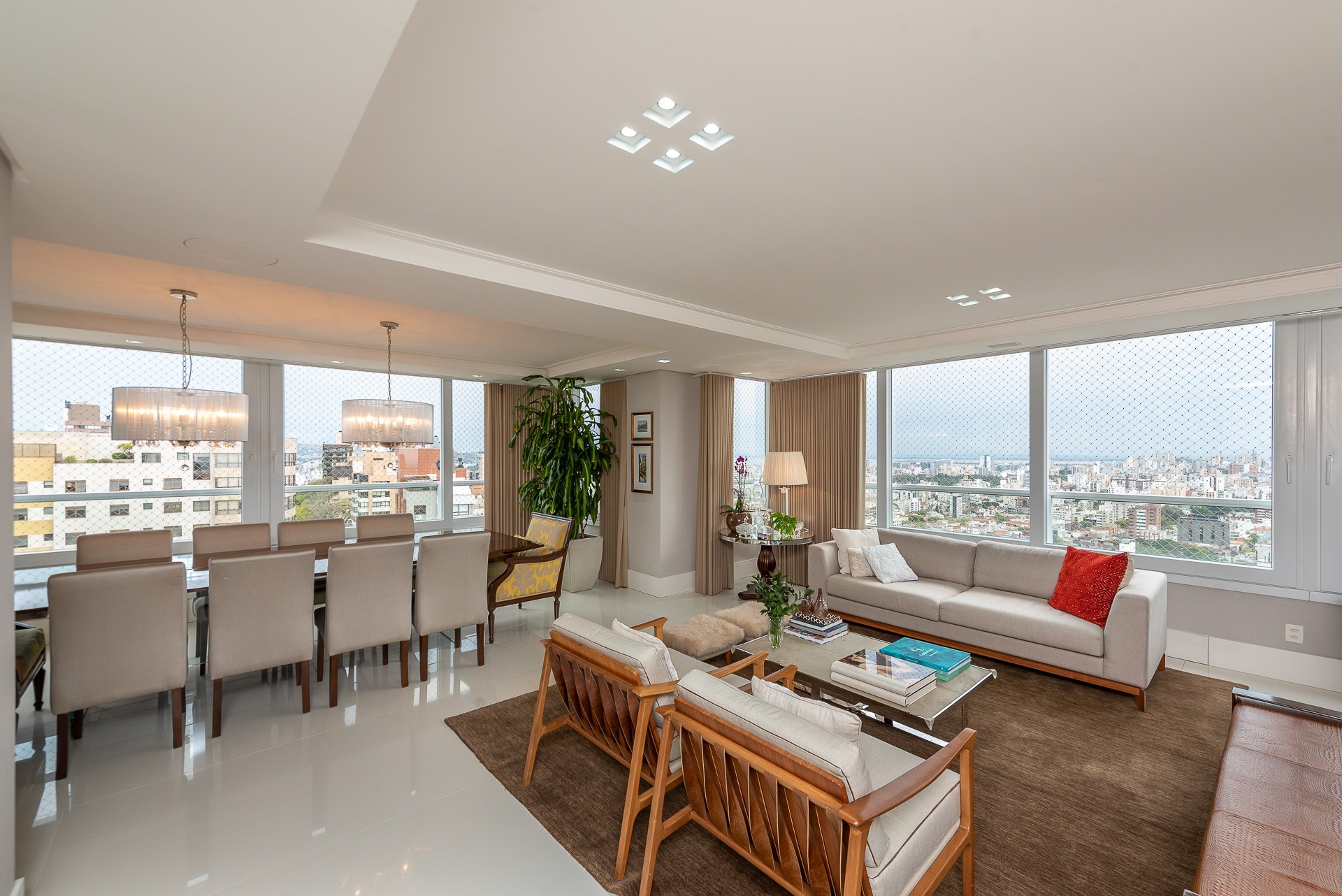Este luxuoso apartamento de 4 suítes localizado no Bairro Moinhos de Vento, em Porto Alegre, oferece uma moradia de alto padrão. A suíte master se destaca com closet e banheiro duplo, incluindo hidromassagem. O living é espaçoso, dividido em quatro ambientes com sacada, e inclui um espaço gourmet com churrasqueira, lareira e adega, ideal para entretenimento e momentos em família.