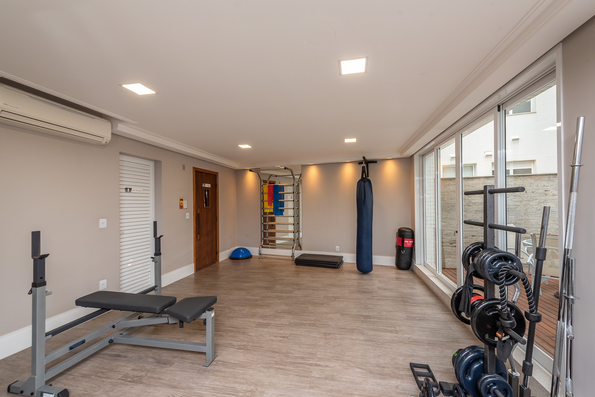 Apartamento para alugar mobiliado com 4 dormitórios, sendo 2 suítes, 179m de área privativa, living com ar condicionado, sacada fechada e ampla com churrasqueira, escrivaninha, cômodas, ventiladores de teto e cortinas, banheiro social com armários, cozinha completa com armários, fogão, geladeira, micro-ondas e coifa e área de serviço.
