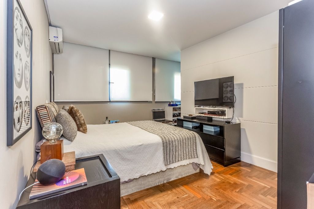 Casa PRONTA PARA MORAR!! Diferenciada, em altíssimo padrão, projetada pelos renomados arquitetos Israel Rewin e João Armentano. Em um terreno de 709 m², a casa de 1209 m² construídos, divide-se em 4 pavimentos. Superior: 4 suítes (1 suíte master com banho sr. e sra.) com closets, sala íntima com mini-copa e central de áudio e vídeo, acesso para as suítes com portas blindadas. Térreo: sala de est...