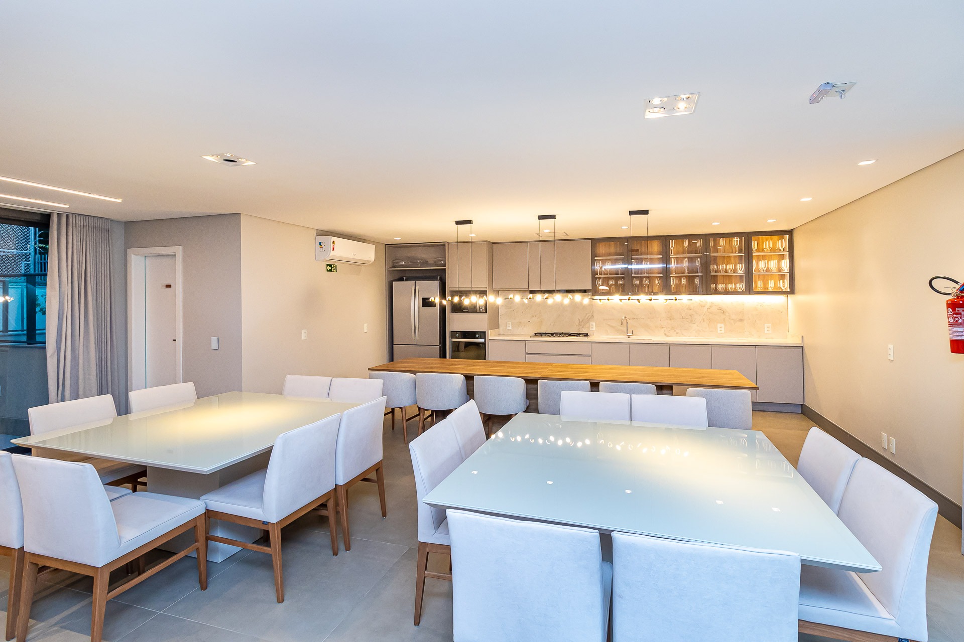 Apartamento, com 145m² privativos, 3 suítes, living 2 ambientes, lavabo, lareira, cozinha americana, area de serviço separada, com entrada de serviço. Terraço gourmet com churrasqueira.