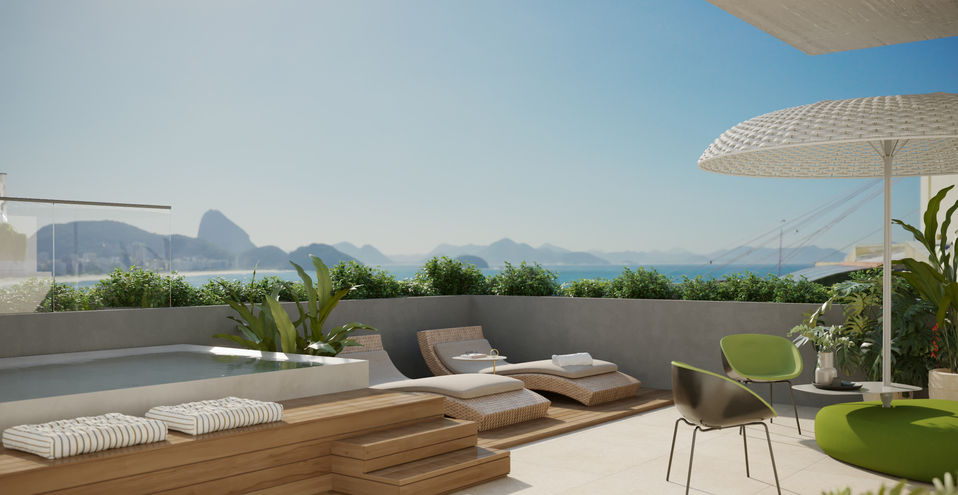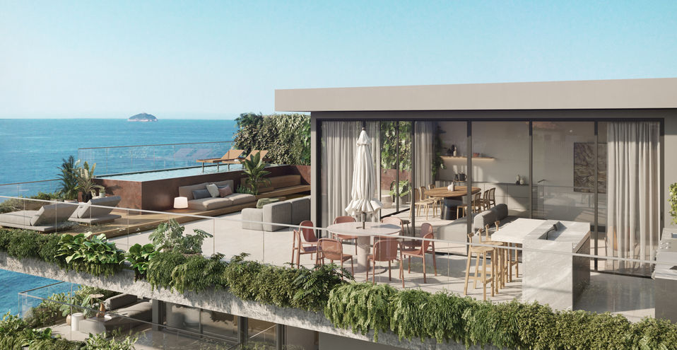 Viver de frente para o mar da Barra da Tijuca: uma exclusividade que ganha ares de raridade. Cyano Exclusive Residences: apenas três edifícios com cinco andares e mais coberturas lineares, distribuídos em um terreno de 10.807,80 m2.