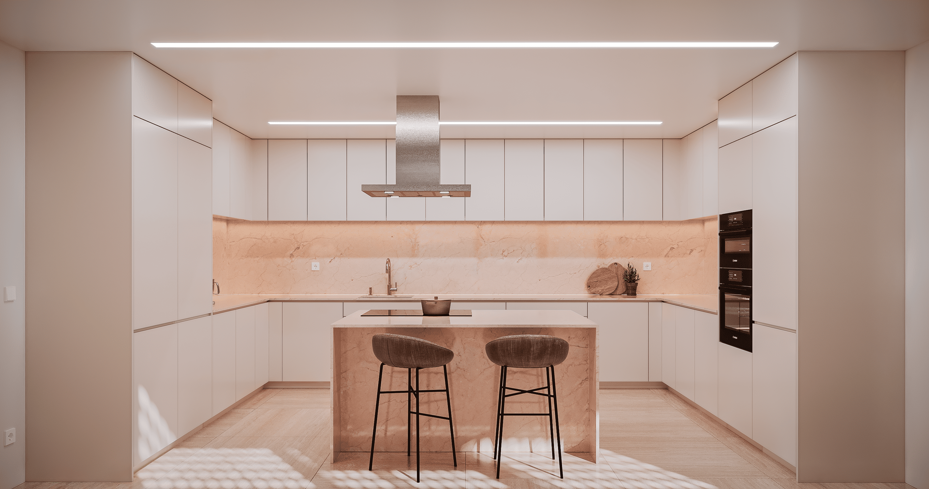 Sustentabilidade e tecnologia acompanham cada escolha: classificação energética A, painéis solares fotovoltaicos, climatização VRV e domótica integral para gestão de iluminação, AVAC, estores e cortinas.