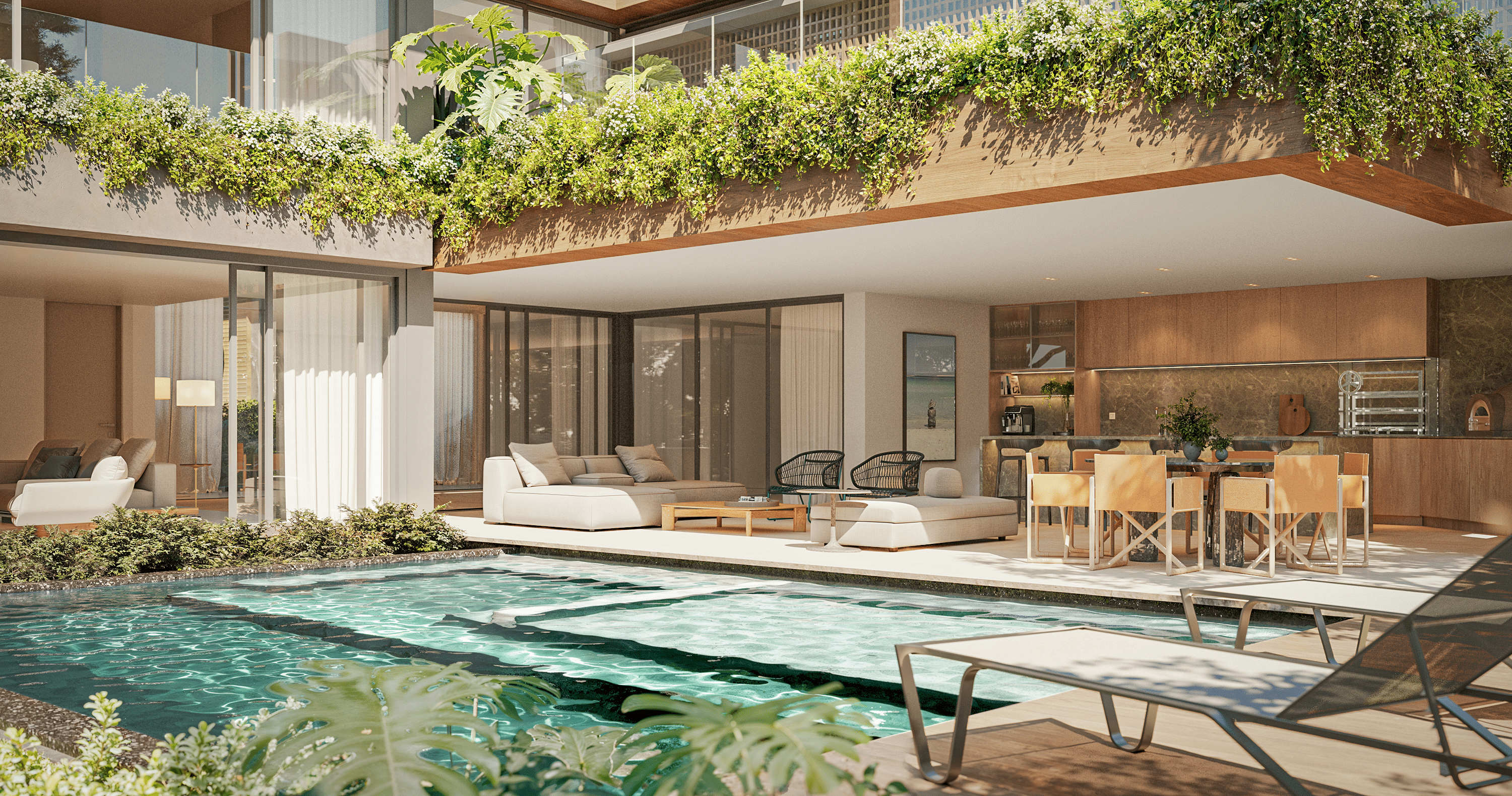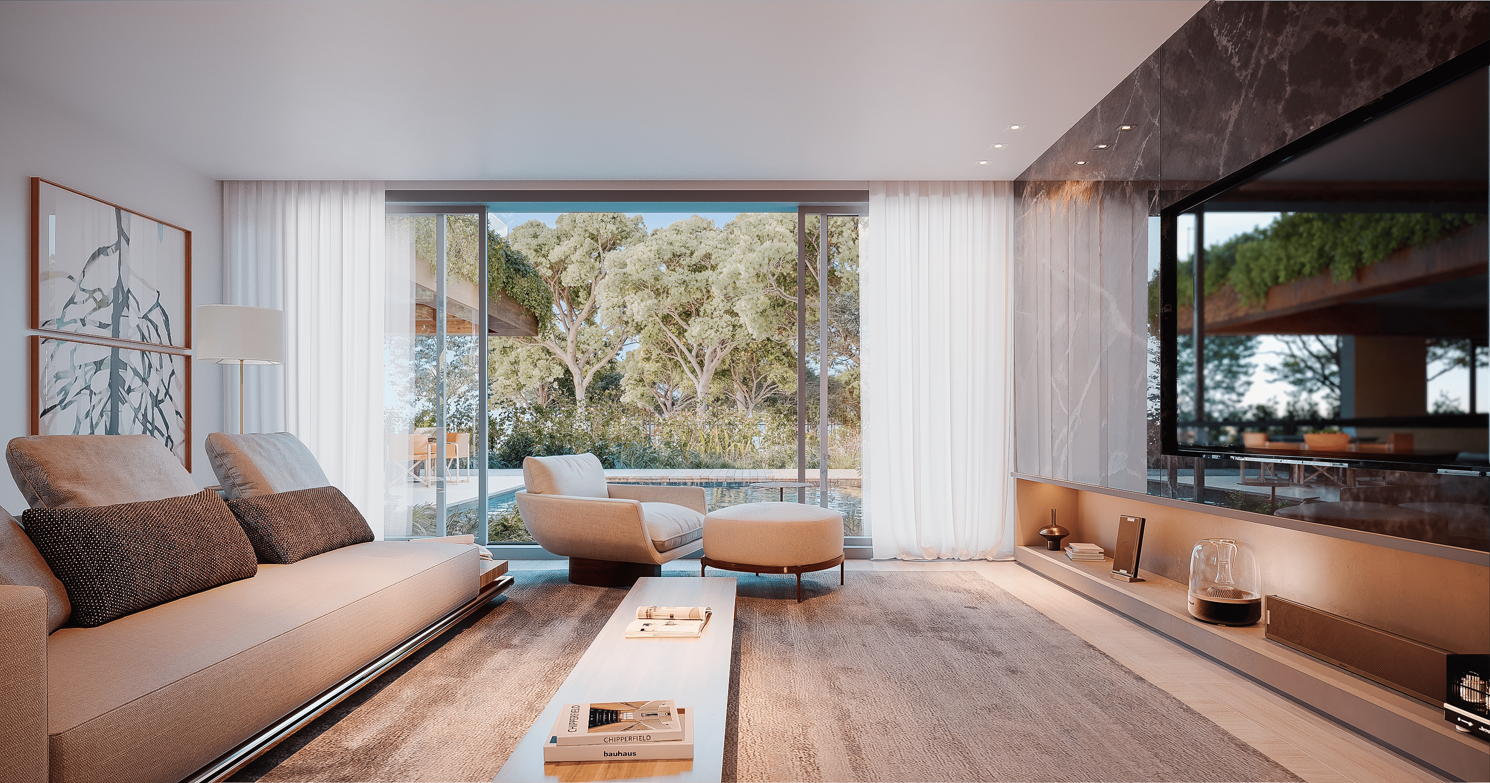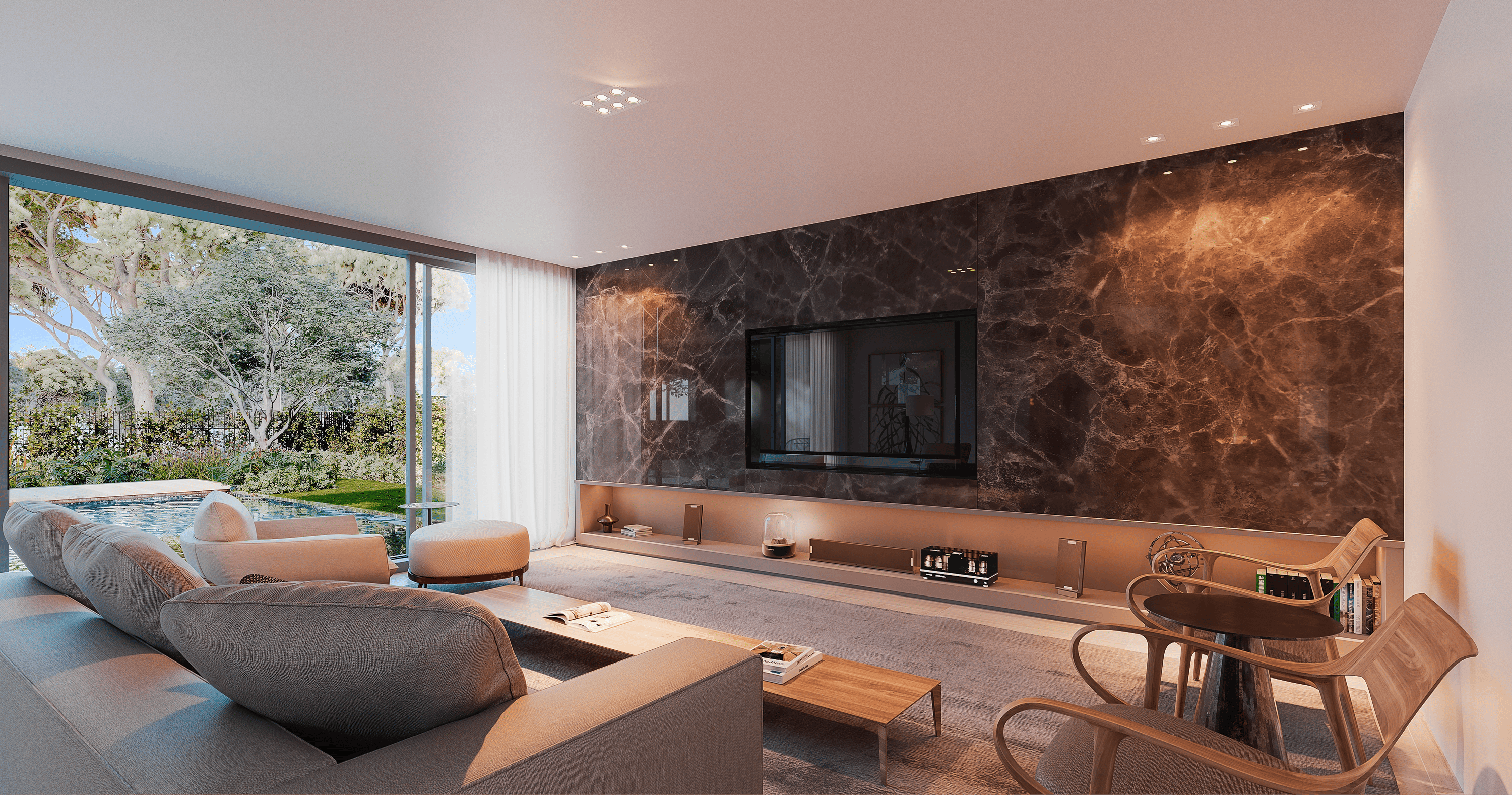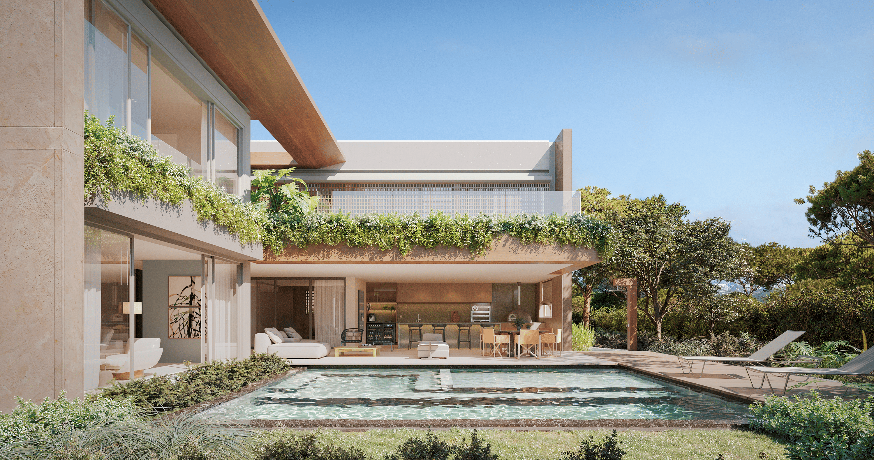 Com mais de 700 m² de área bruta privativa e jardins generosos acima dos 400 m², cada moradia é um refúgio contemporâneo onde a integração entre interior e exterior definem o espaço. As áreas sociais de pé-direito duplo, elevador privativo, spa, ginásio, escritório ou home lounge e garagem para quatro viaturas com carregamento elétrico, refletem conforto e funcionalidade e sofisticação.