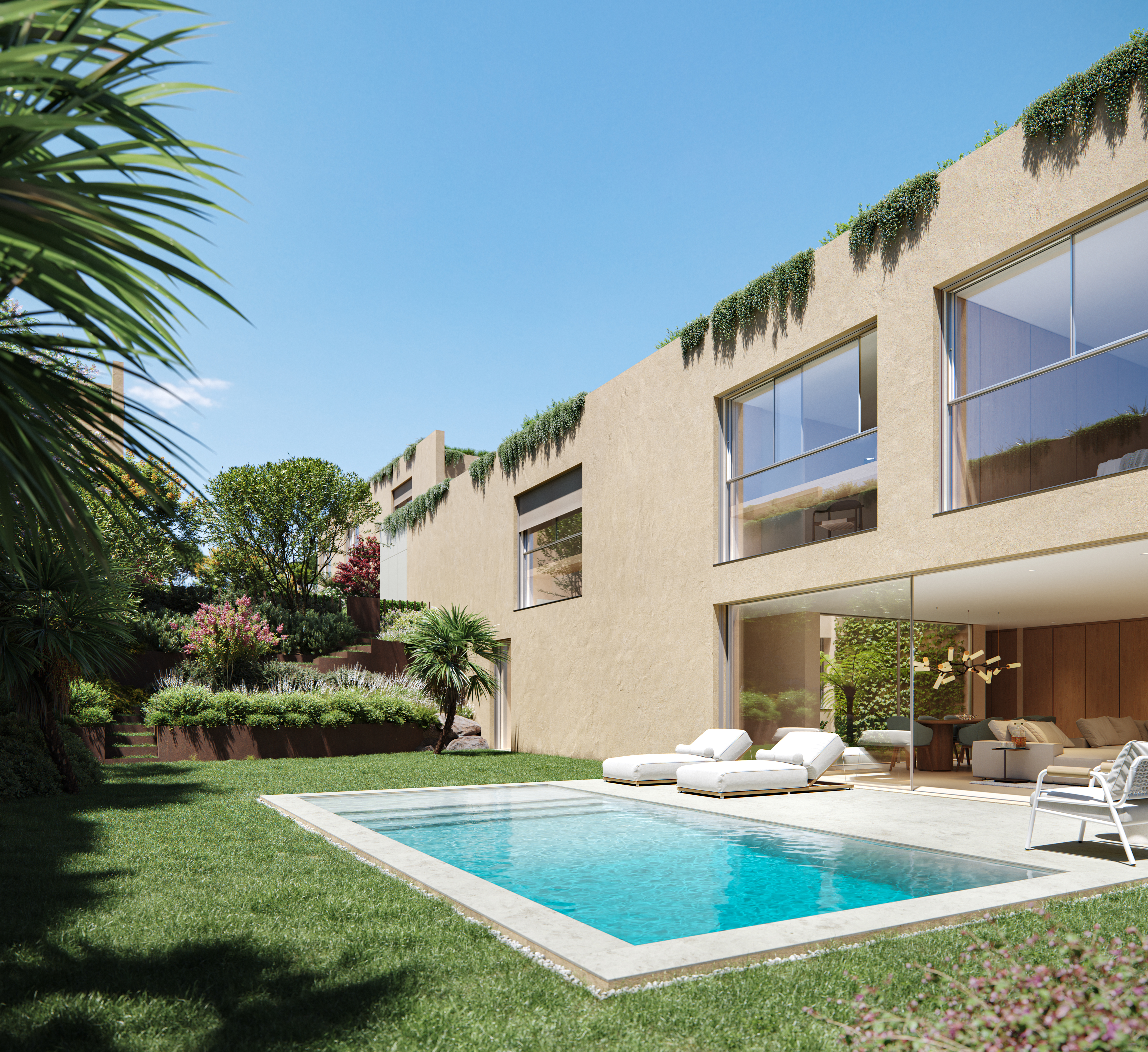 Este condomínio fechado situa-se num terreno suavemente inclinado a sudeste e é composto por 13 moradias isoladas, todas com jardim privado, piscina e garagem. Os telhados das moradias são ajardinados. Existem três tipos de moradias (A, B e C), todas de tipologia T4, com áreas que variam entre os 326m² e os 420m².