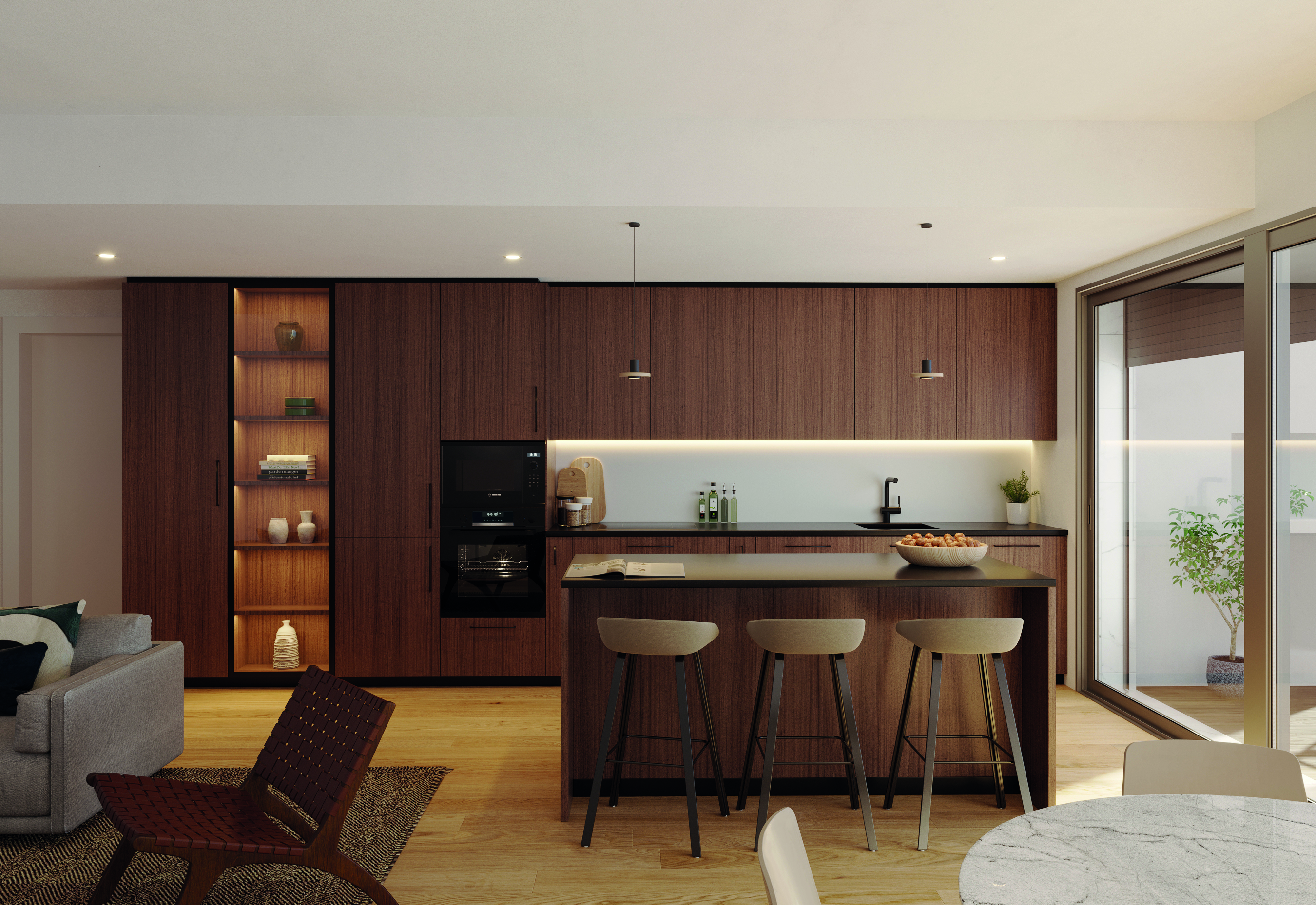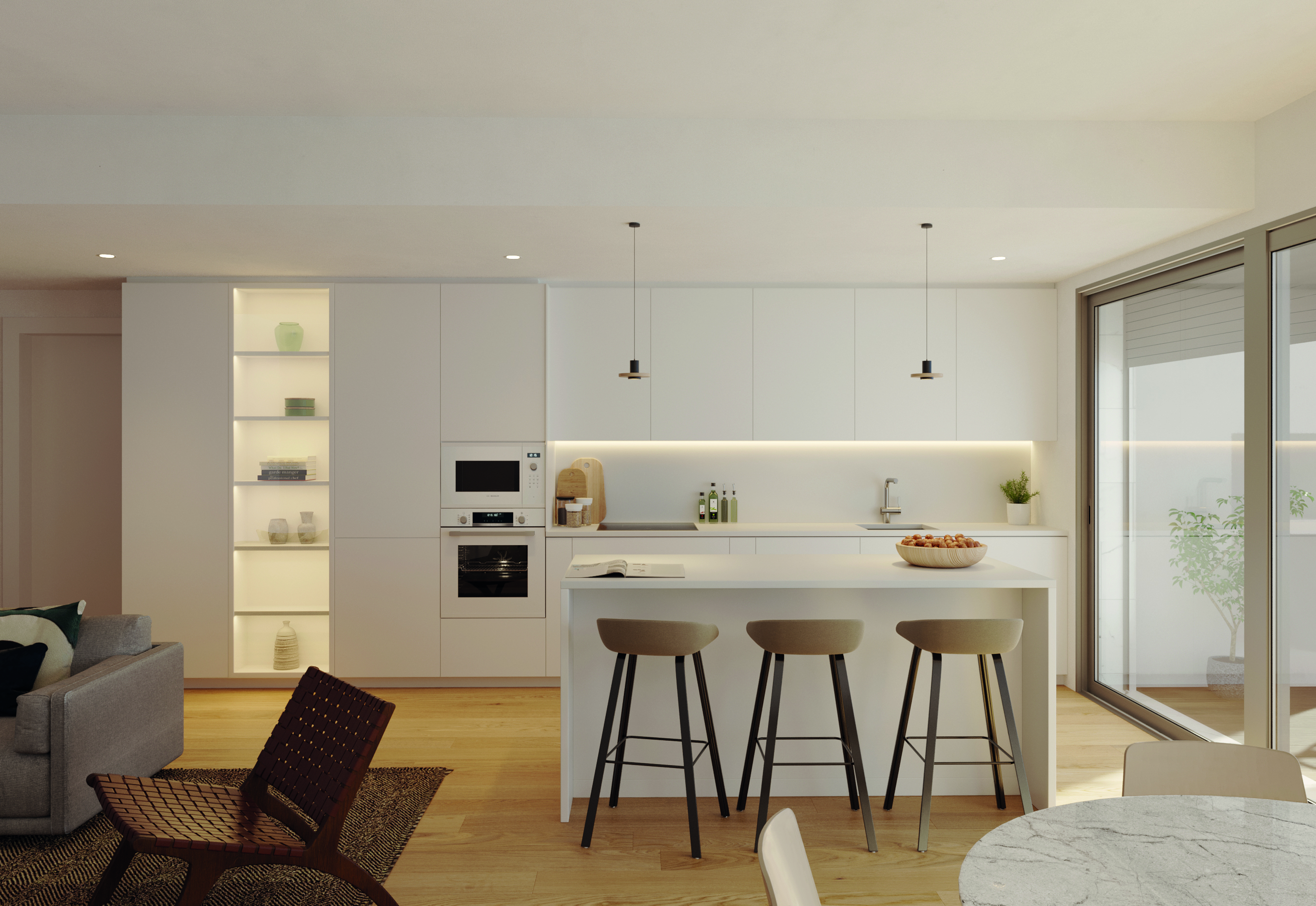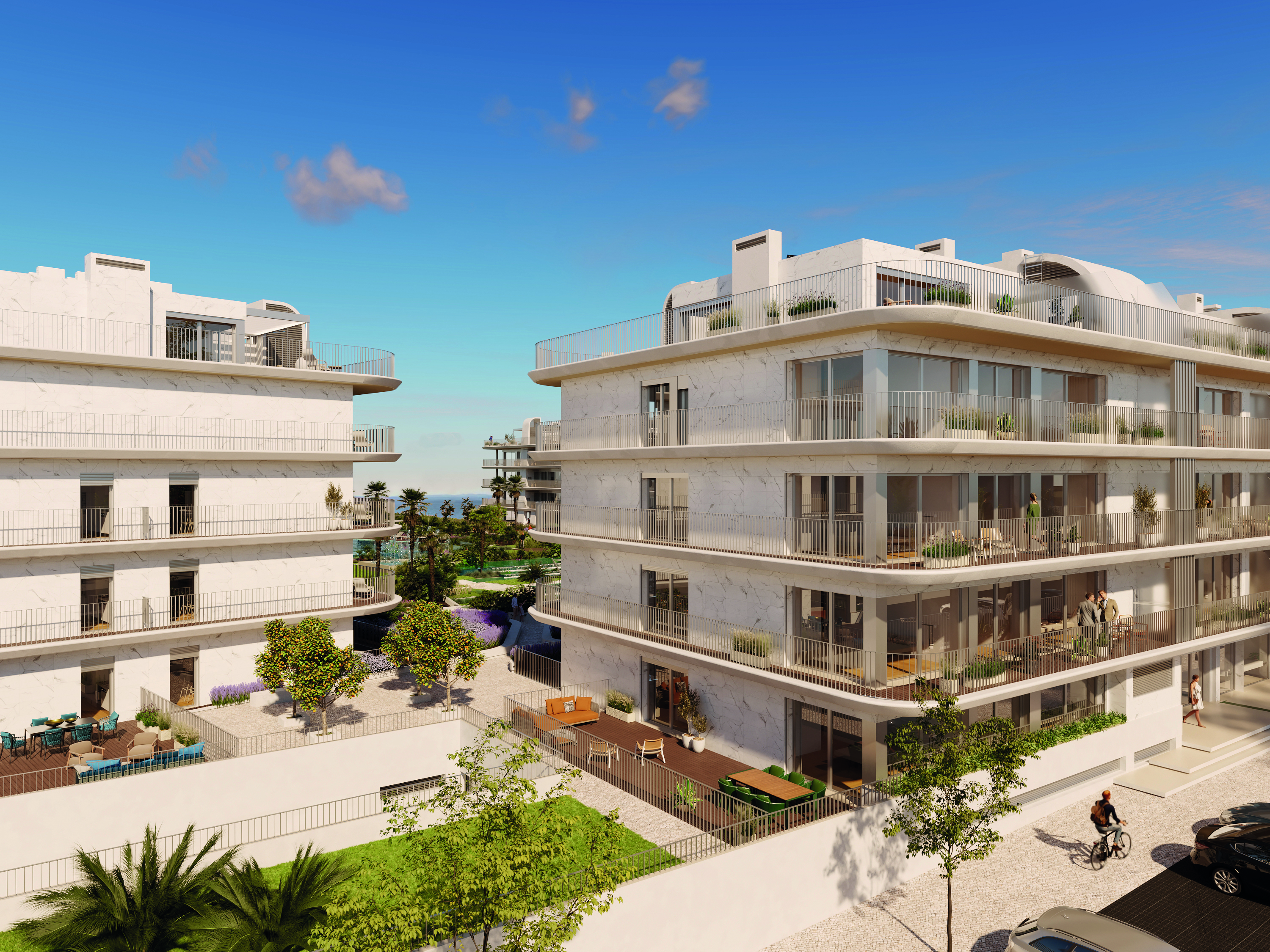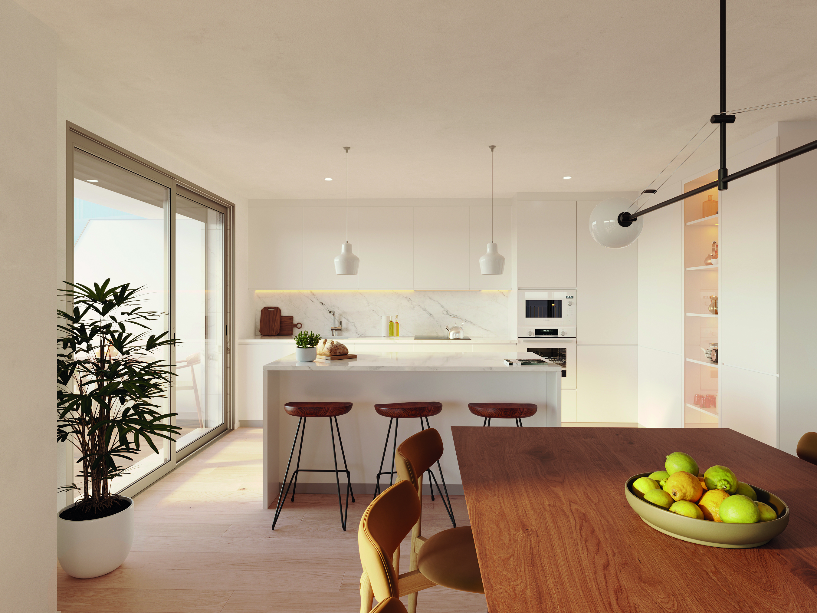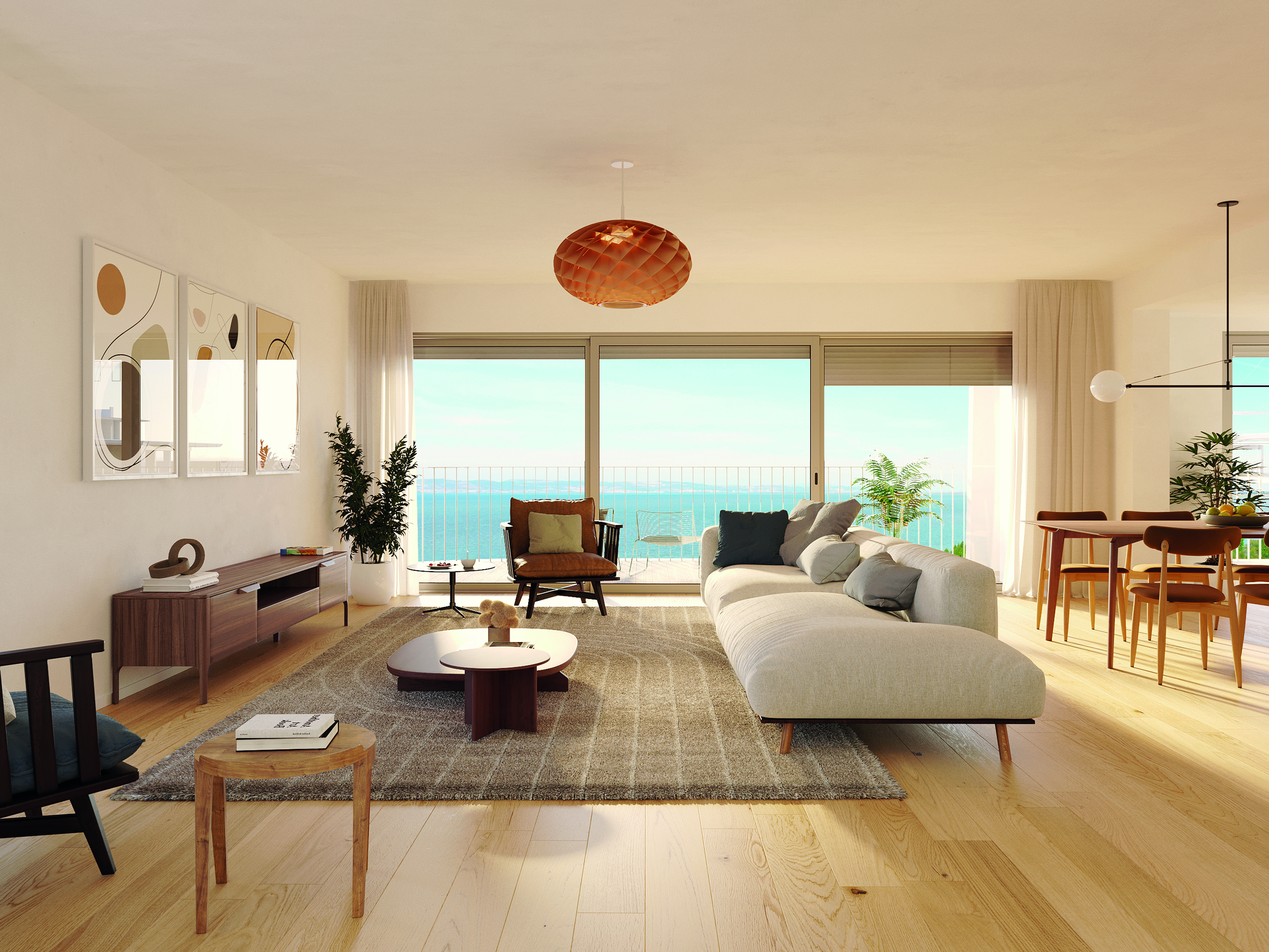 Com tipologias de T1 a T4 e áreas entre 60m² e 265m², os apartamentos foram projetados para maximizar o conforto e luminosidade. Linhas contemporâneas, grandes vãos envidraçados e varandas generosas proporcionam uma ligação fluida entre interior e exterior. As coberturas dispõem de terraços privativos com jacuzzi ou piscina, redefinindo o conceito de luxo residencial.