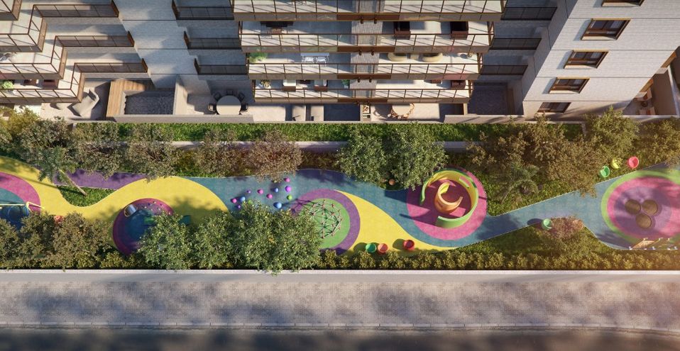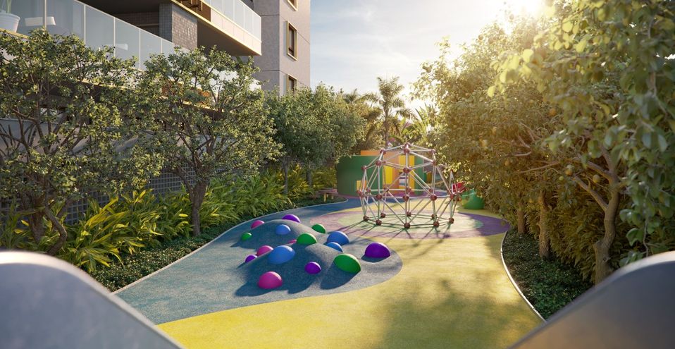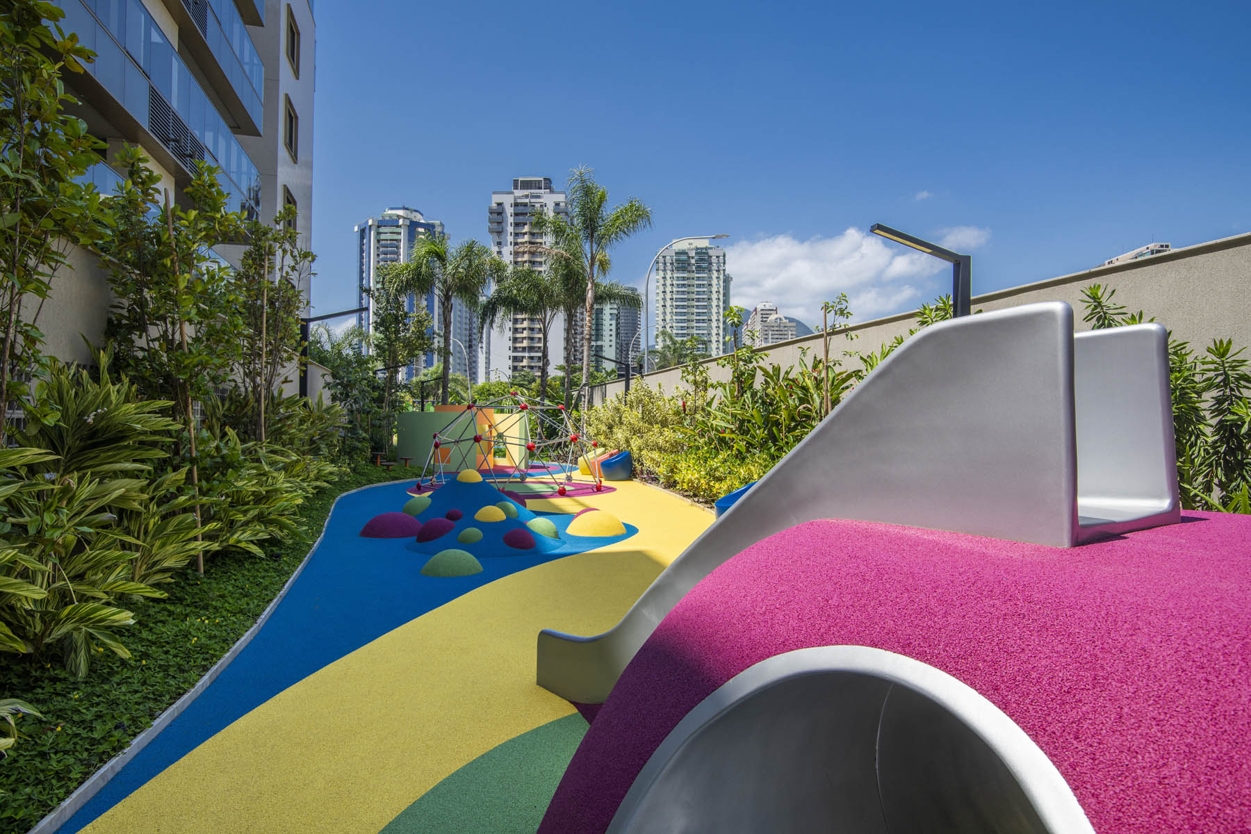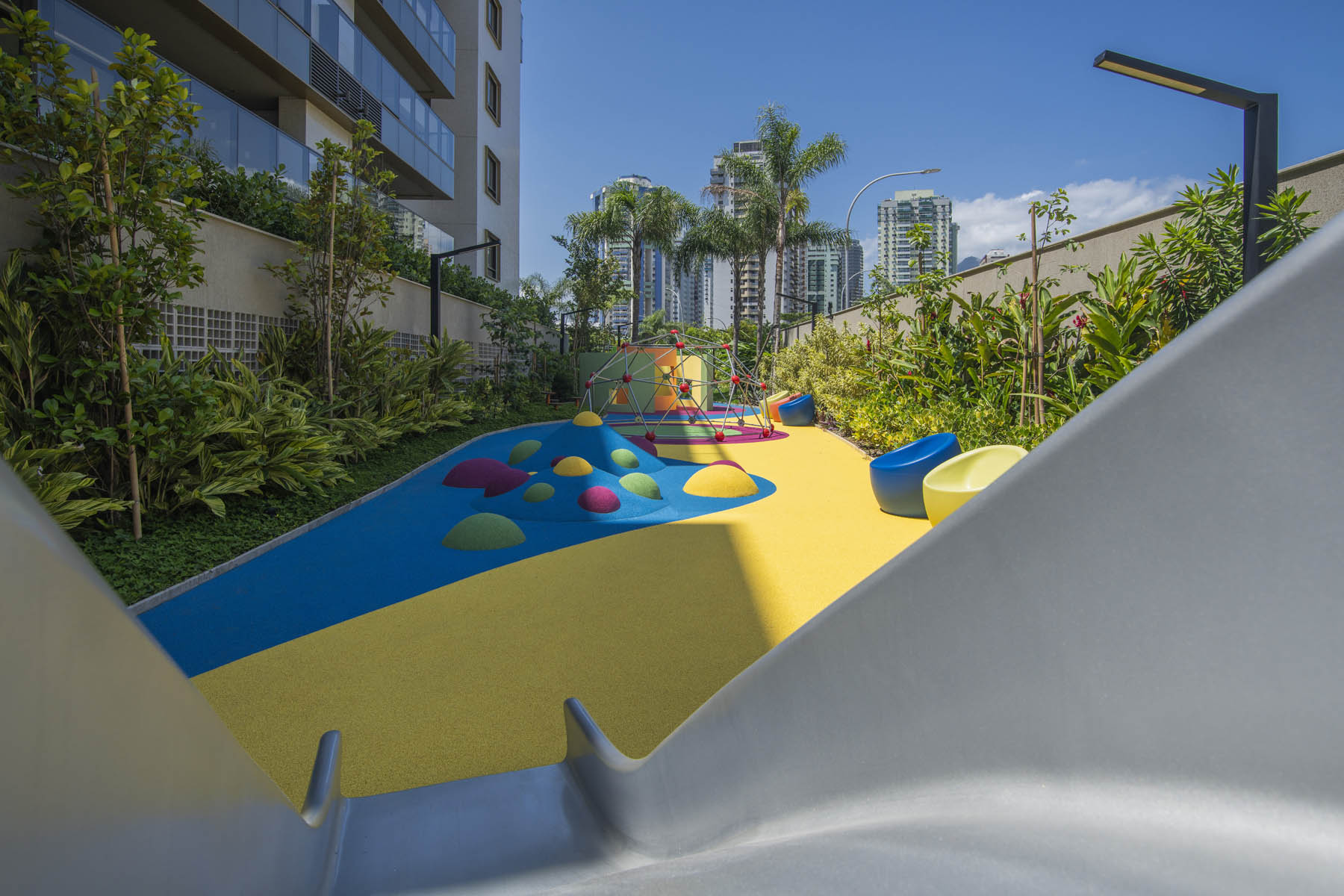 Áreas de lazer ao ar livre, como quadras esportivas ou pistas de caminhada