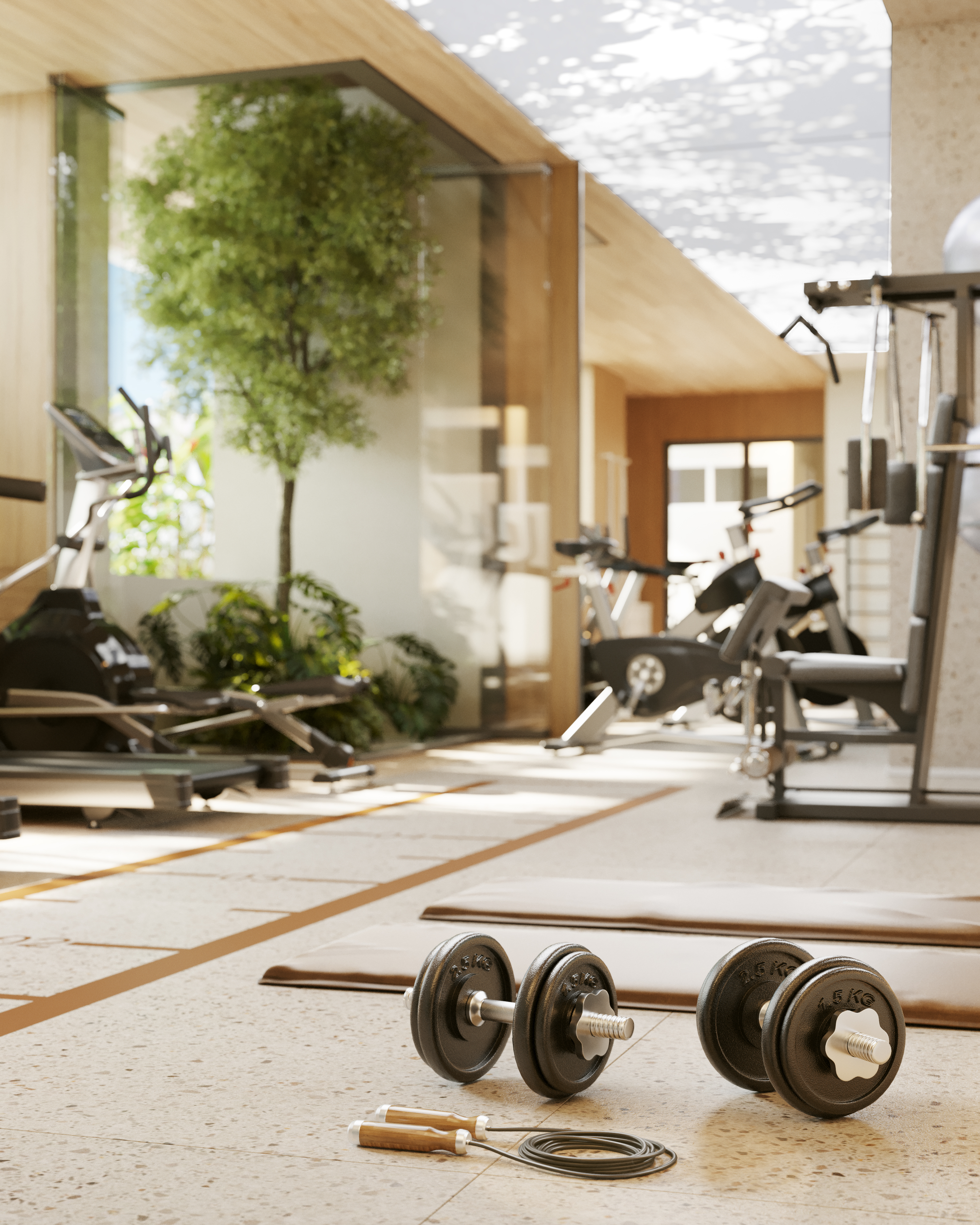 Áreas de lazer ao ar livre, como quadras esportivas ou pistas de caminhada