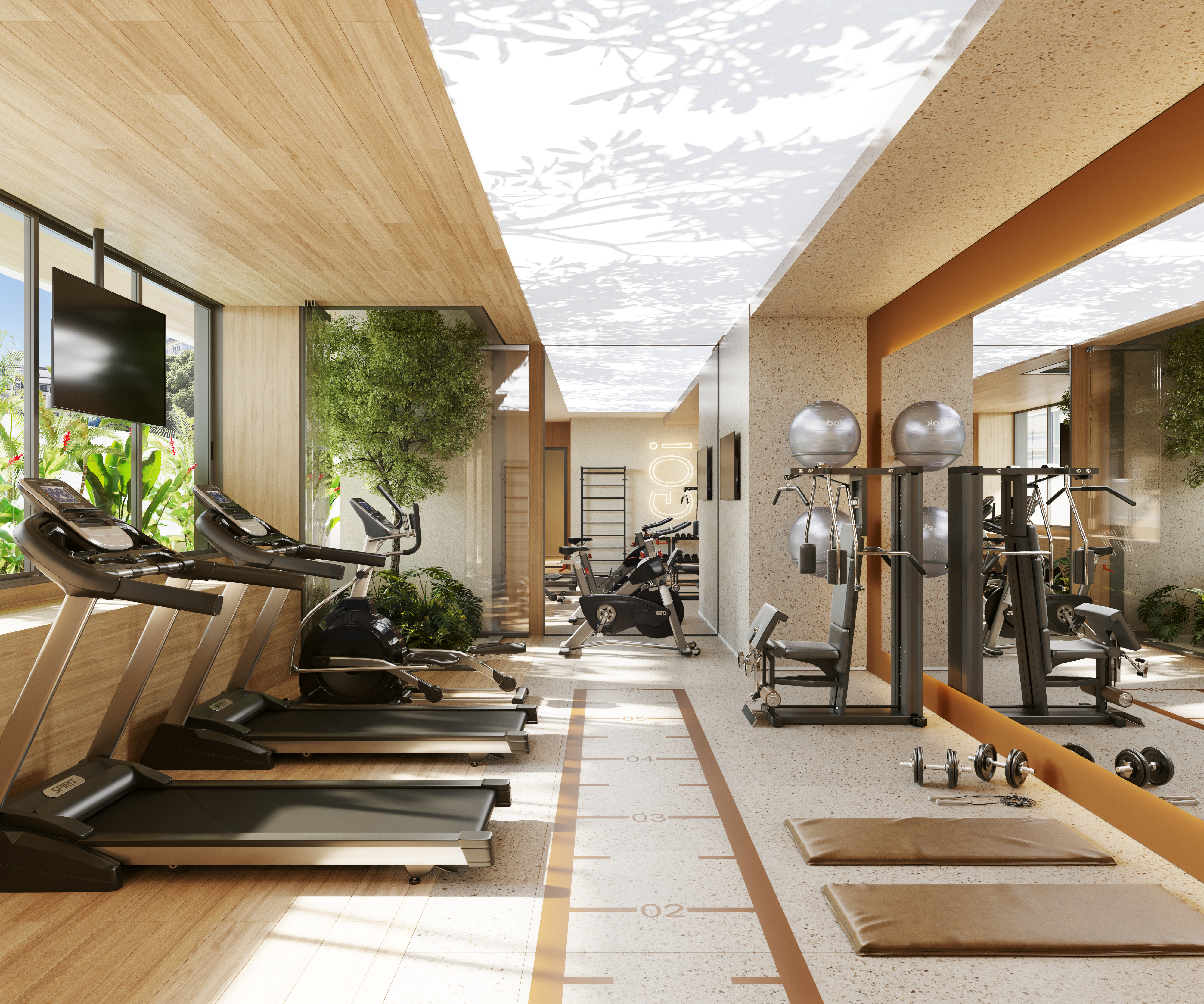 A área de lazer é completa e exclusiva, incluindo piscinas climatizadas com deck molhado, fitness, salão gourmet, brinquedoteca, miniquadra e espaços dedicados aos pets, como Pet Place e Pet Care. O condomínio conta ainda com tecnologia de ponta em segurança, fechaduras inteligentes, espaço delivery refrigerado e iniciativas sustentáveis, como o reuso de águas pluviais