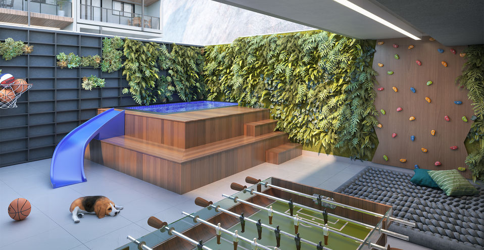 Áreas de lazer ao ar livre, como quadras esportivas ou pistas de caminhada