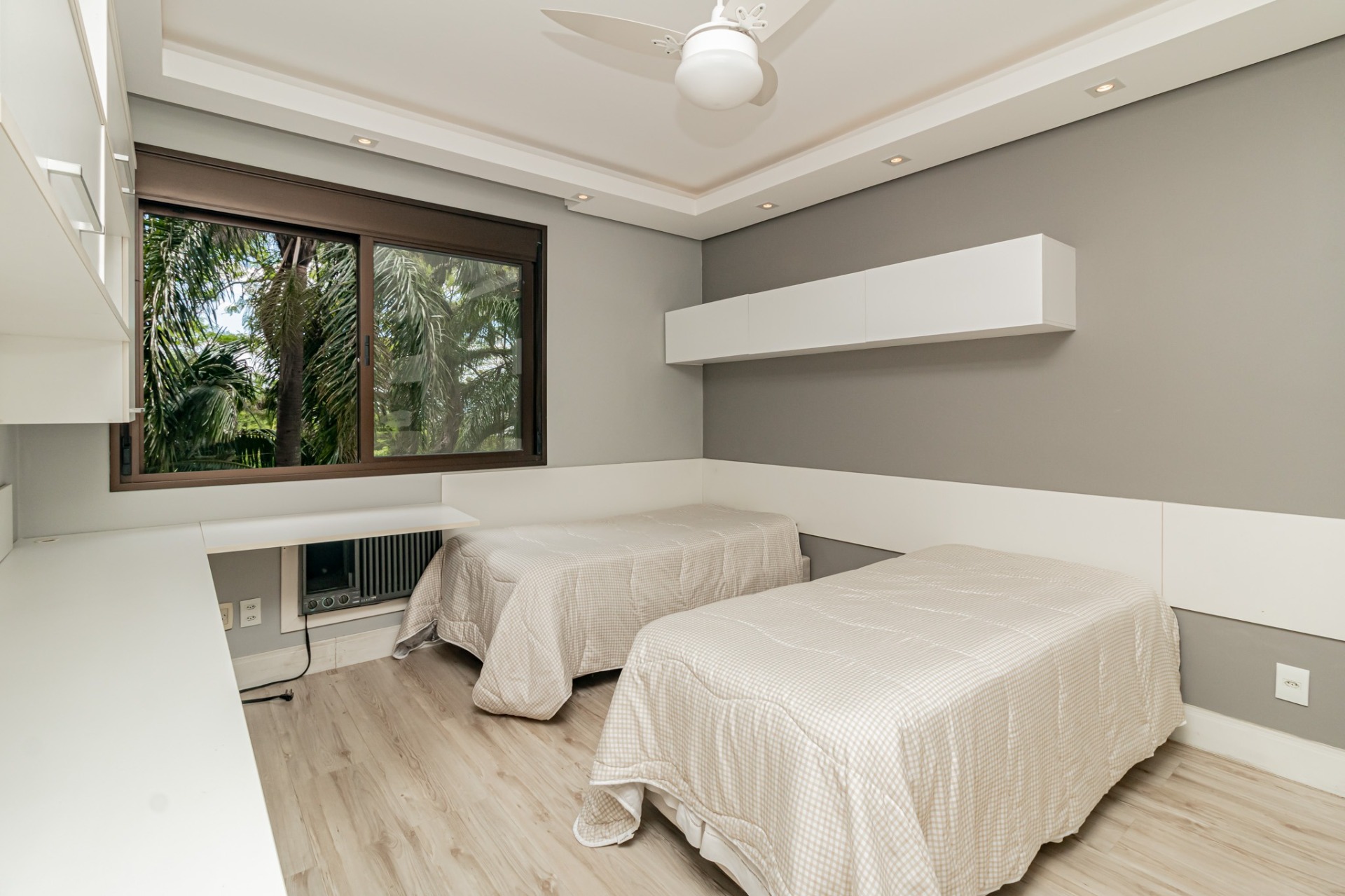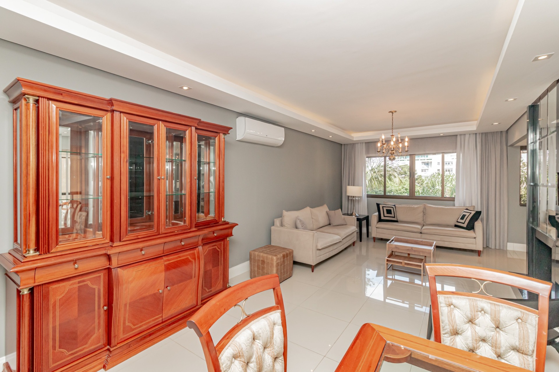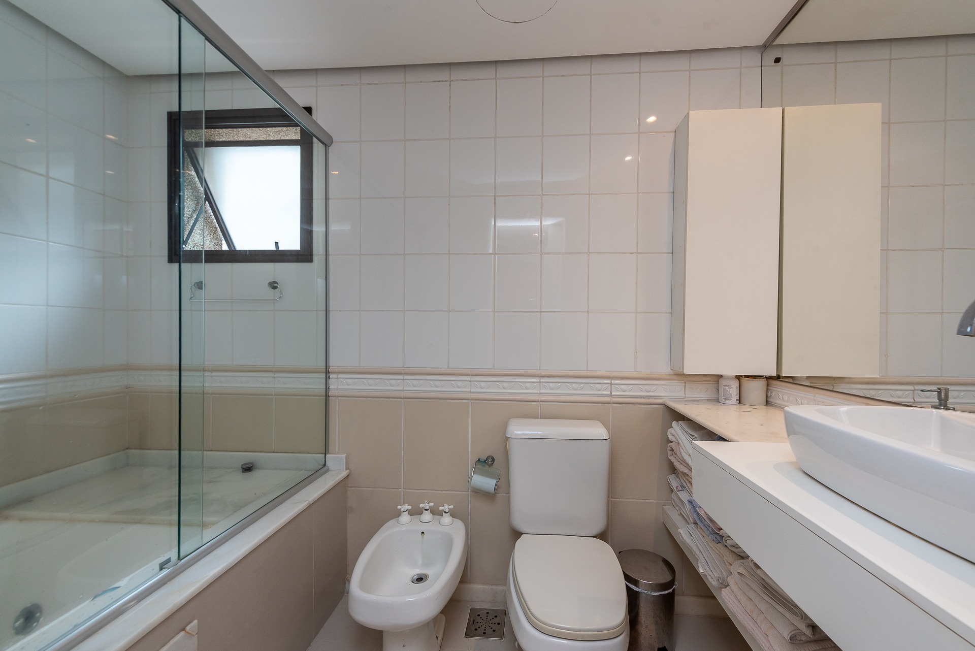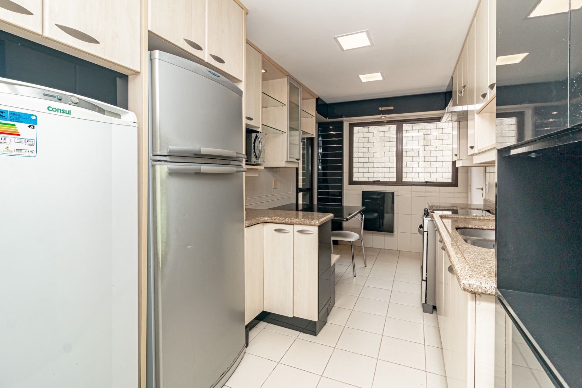 Apartamento para alugar mobiliado com 4 dormitórios, sendo 2 suítes, 179m de área privativa, living com ar condicionado, sacada fechada e ampla com churrasqueira, escrivaninha, cômodas, ventiladores de teto e cortinas, banheiro social com armários, cozinha completa com armários, fogão, geladeira, micro-ondas e coifa e área de serviço.