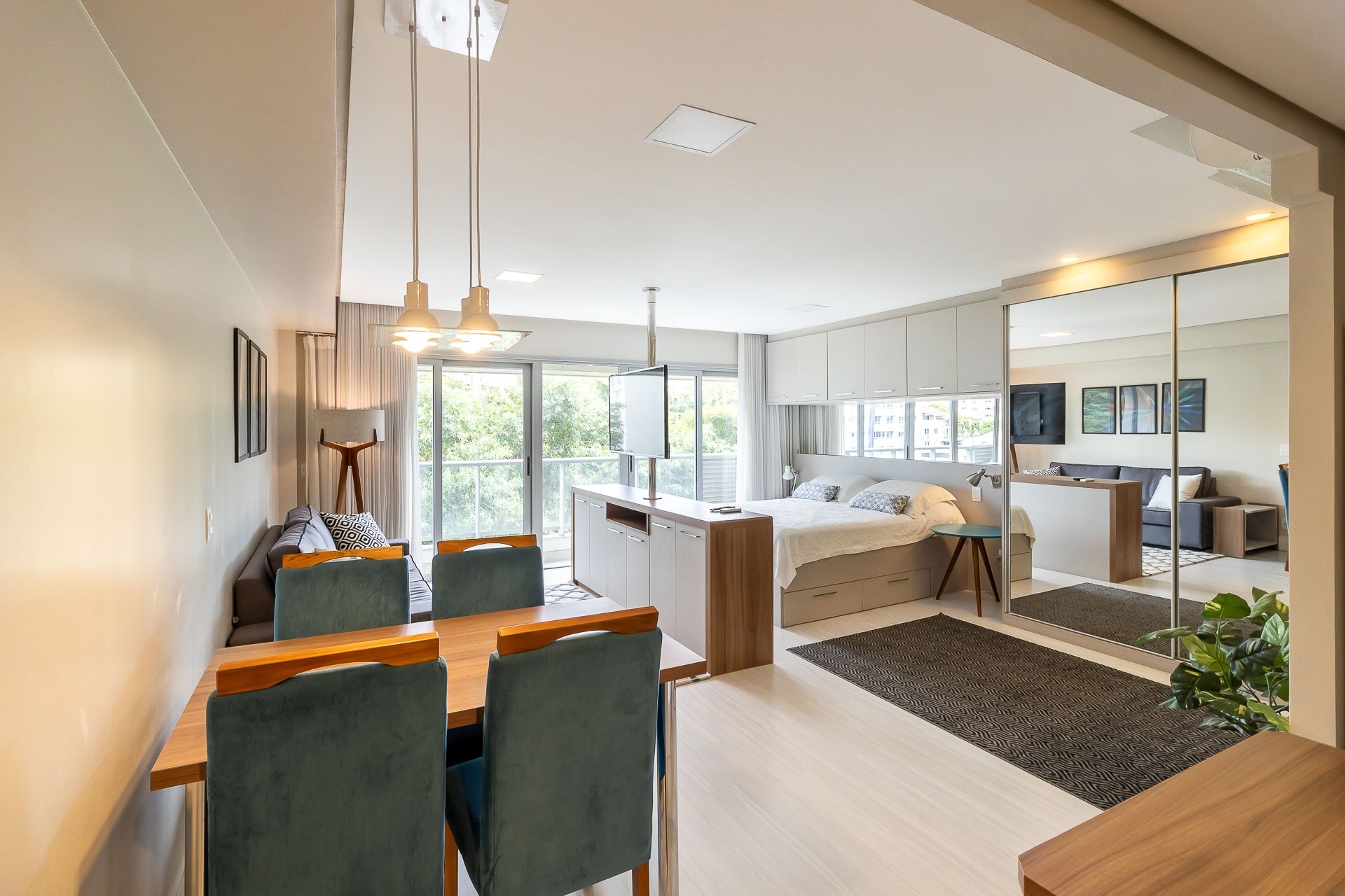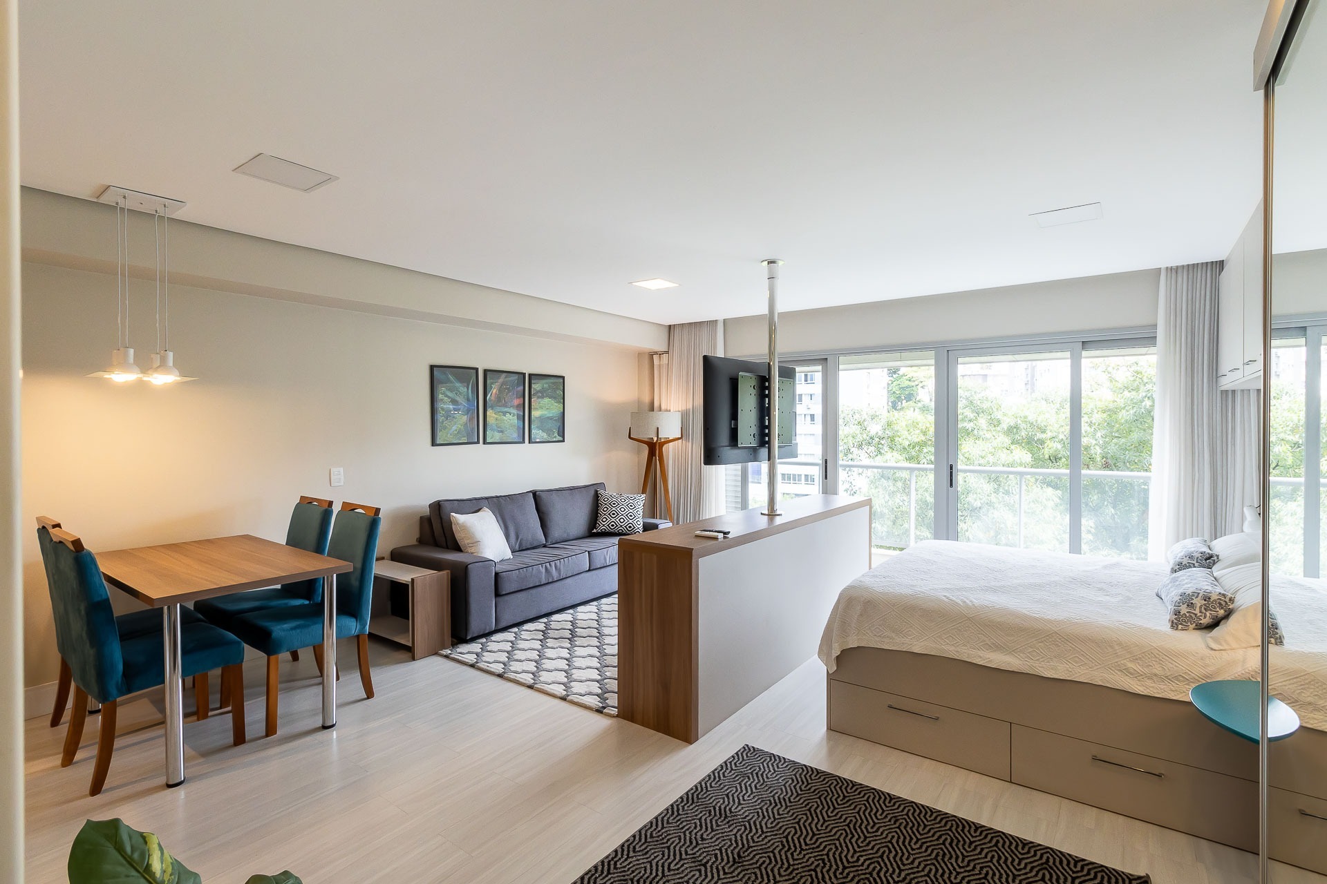 Apartamento novo com 32 m², mobiliado e decorado, 1 dormitório com uma vaga de garagem, em frente ao Parcão, condomínio conta com serviço de hotelaria, no coração do bairro Moinhos de Vento.