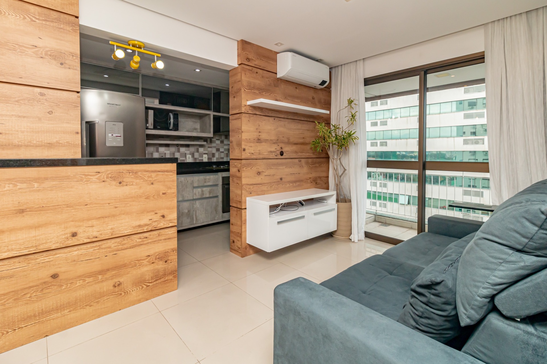 Apartamento finamente mobiliado de 1 dormitório com 44m² de área privativa,1vaga de garagem. Dispõem de uma suíte, living integrado a sala e cozinha que dispõem de churrasqueira e lavanderia, amplas aberturas proporcionando amplitude com uma linda vista, ambientes com ótima iluminação e ventilação natural. Prédio com infra como piscina, espaço fitness salão de festas e brinquedoteca. Localização p...