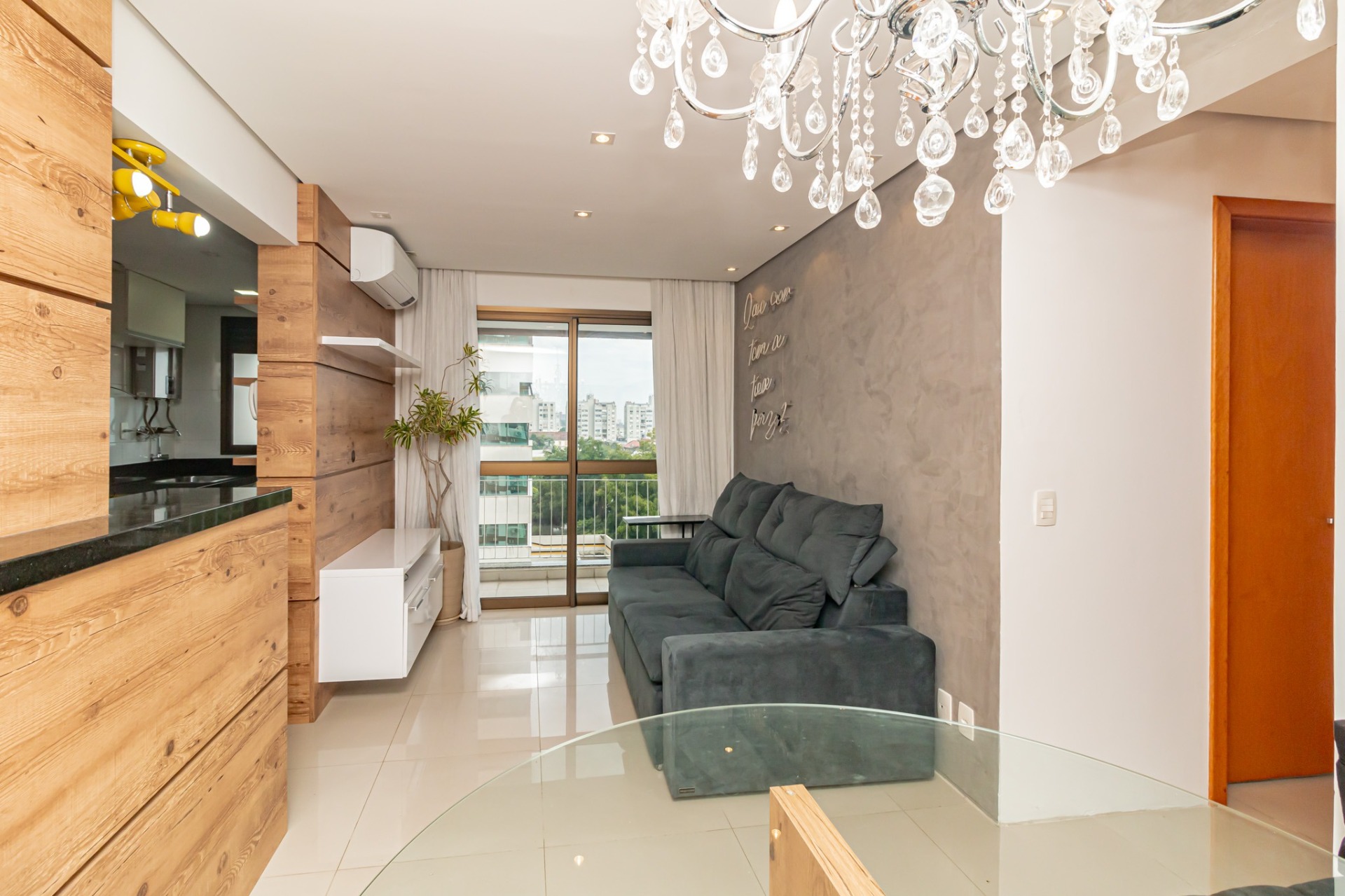 Apartamento mobiliado com 2 dormitórios, sendo 1 suíte, com 88m² de área privativa e 2 vagas de garagem. Amplo living com cozinha americana, churrasqueira e área de serviço. Prédio com salão de festas, fitness, portaria 24 h. Excelente localização!